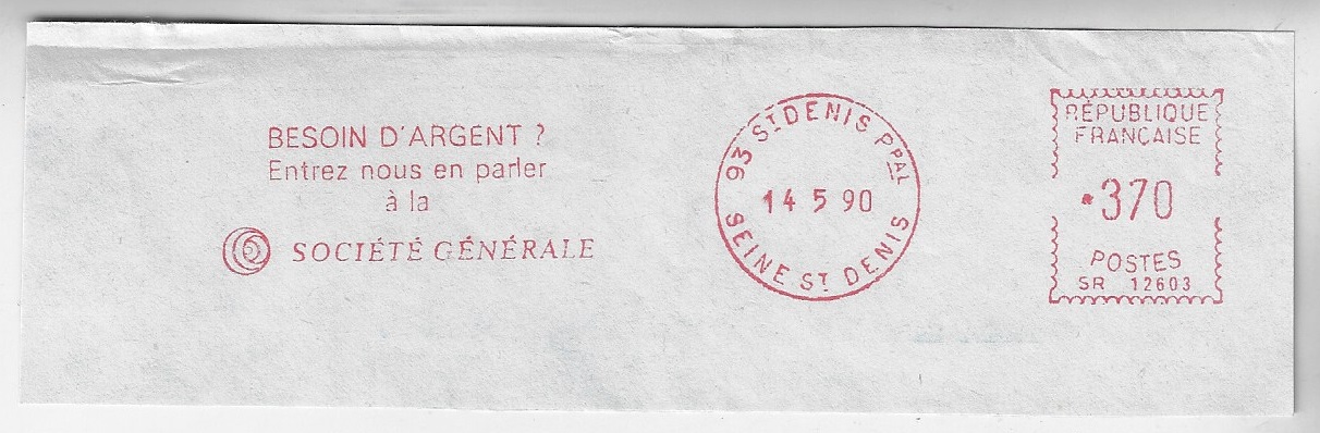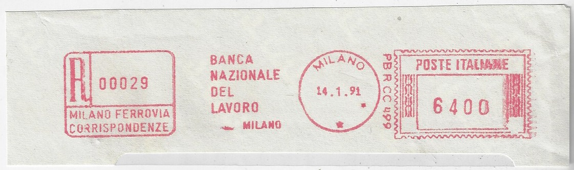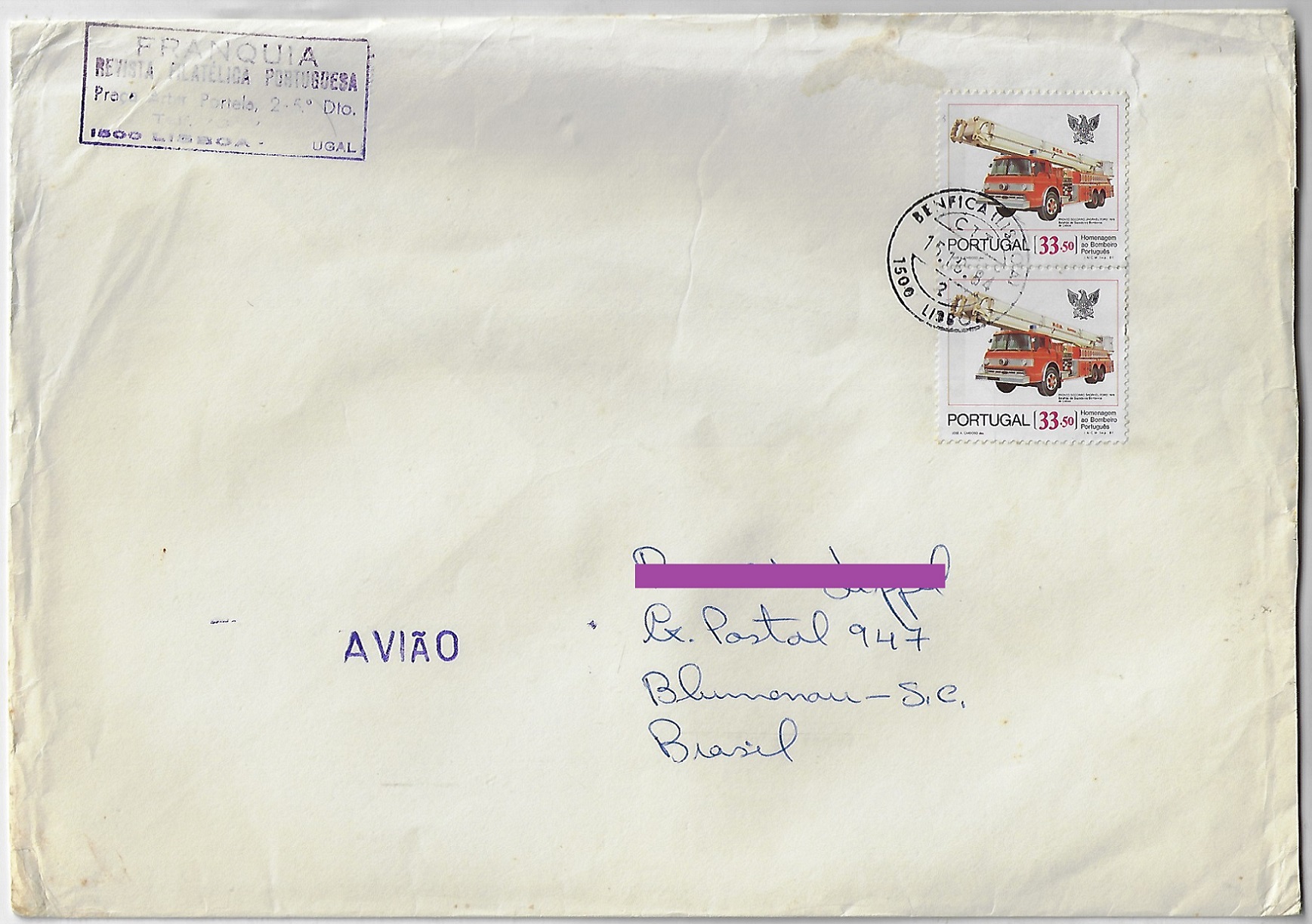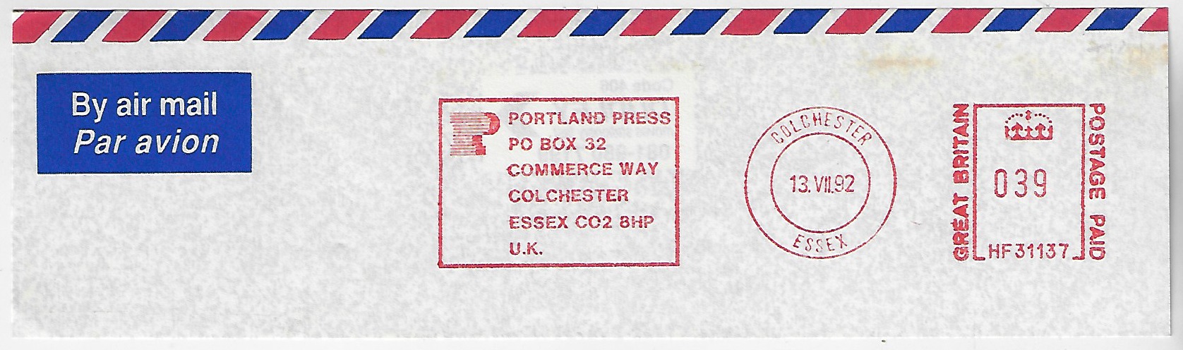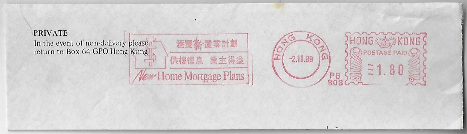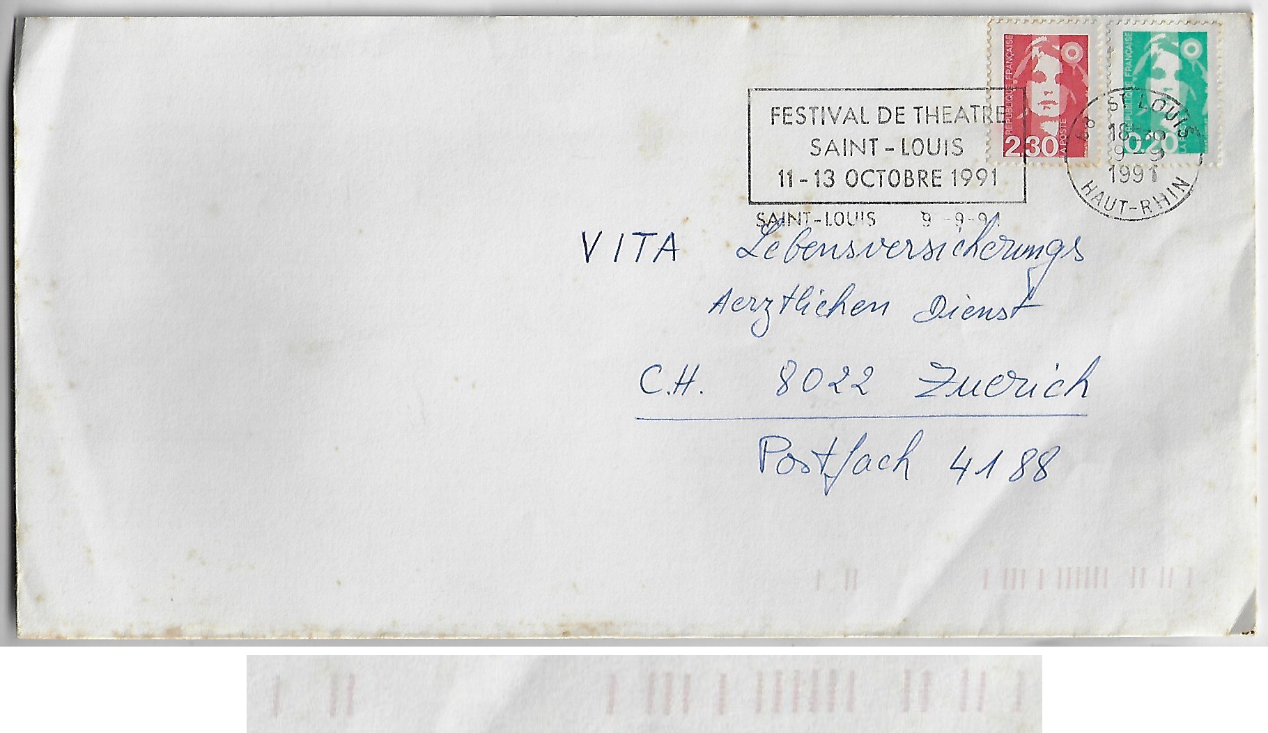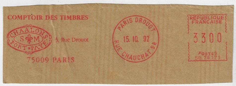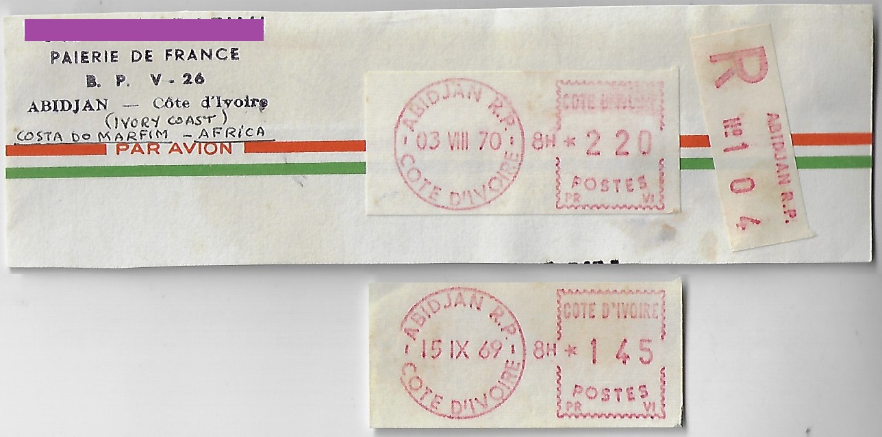 | 59200 | África do Sul, 1991, fragmento de envelope aéreo porteado com franquia mecânica Hasler "Mailmaster" com slogan "Volkskas Bank ( Banco Popular)", de Johannesburg |