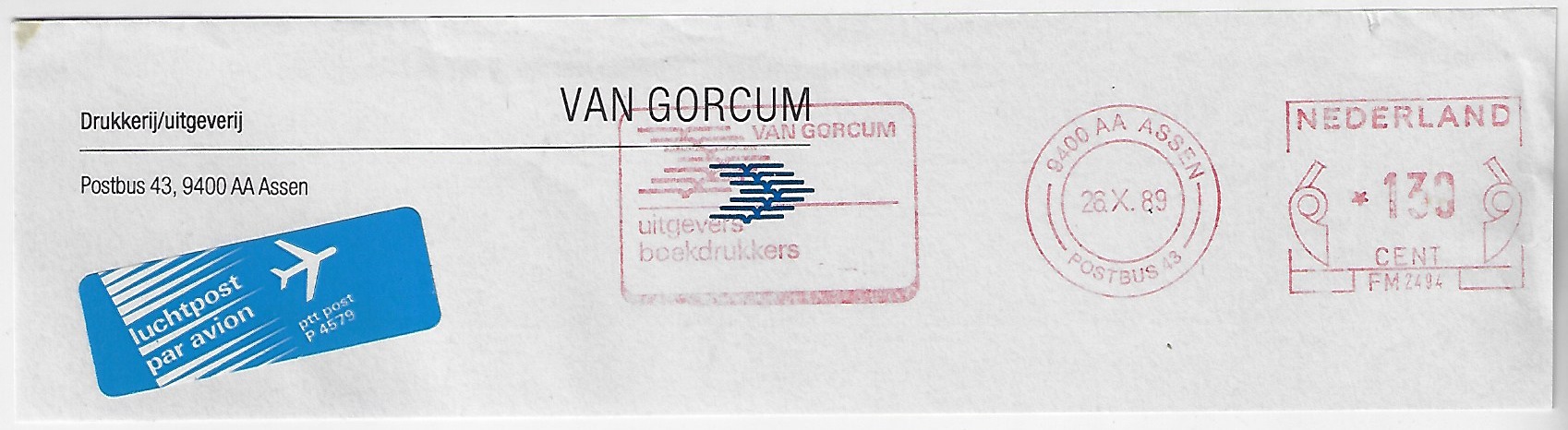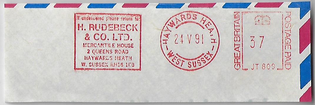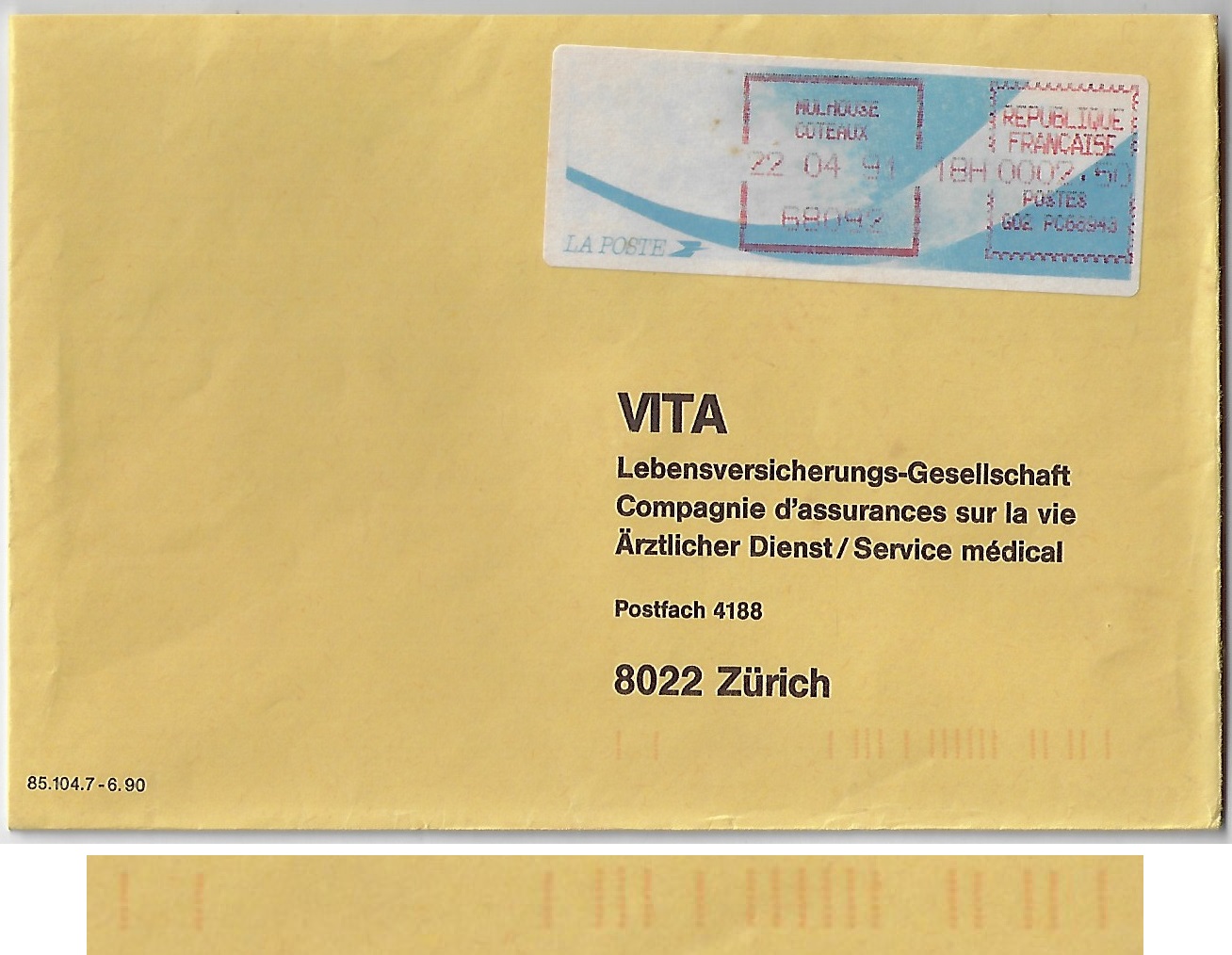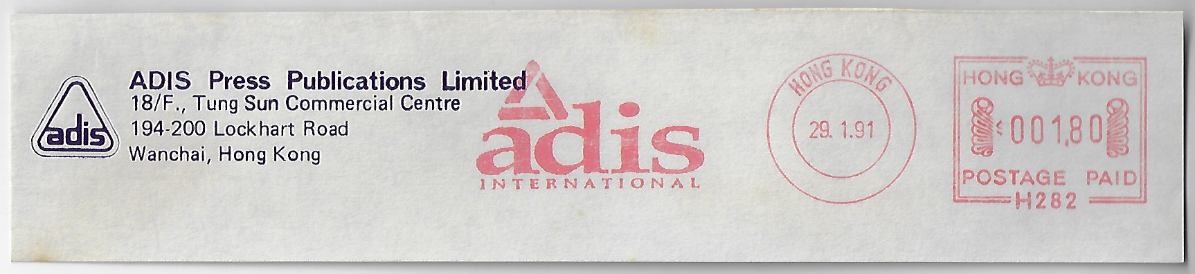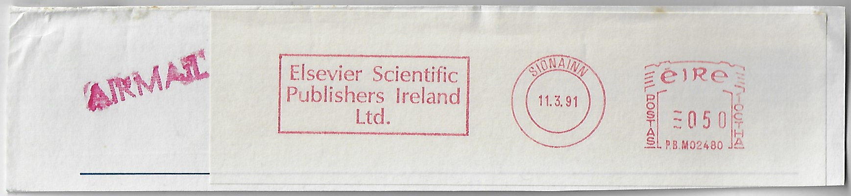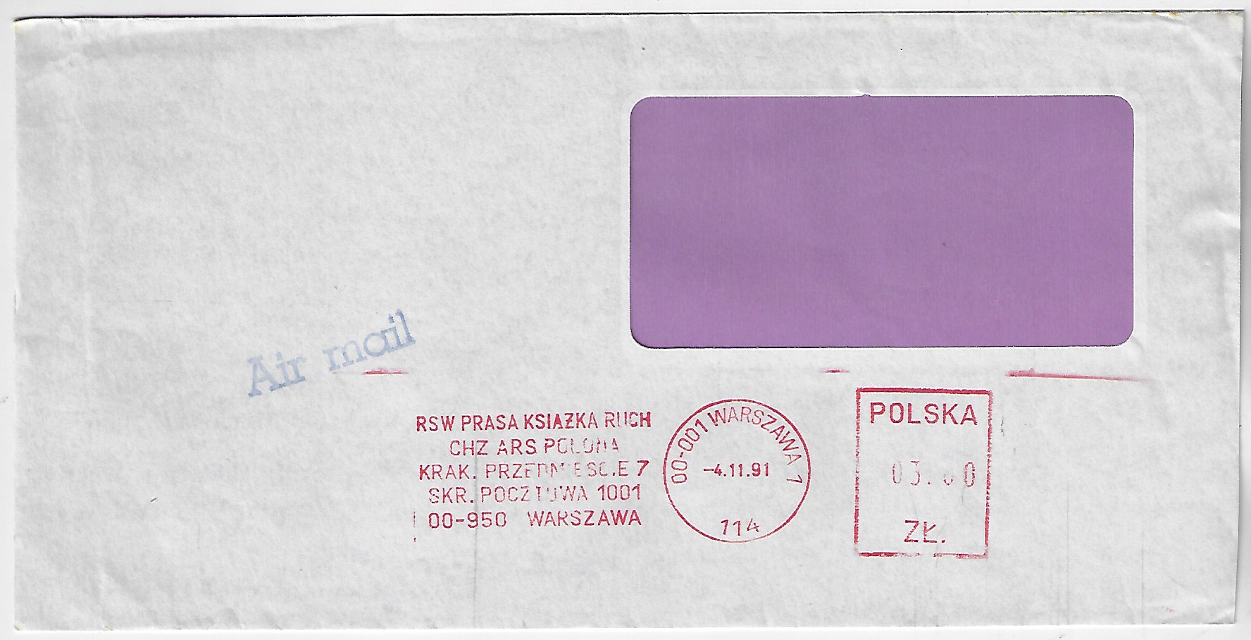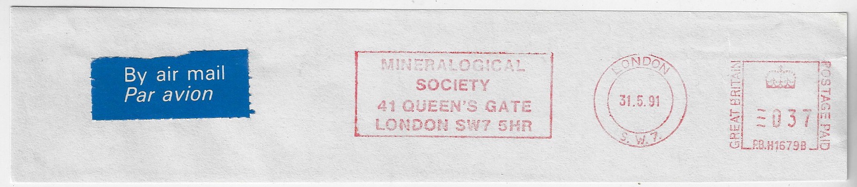 | 59200 | África do Sul, 1991, fragmento de envelope aéreo porteado com franquia mecânica Hasler "Mailmaster" com slogan "Volkskas Bank ( Banco Popular)", de Johannesburg |