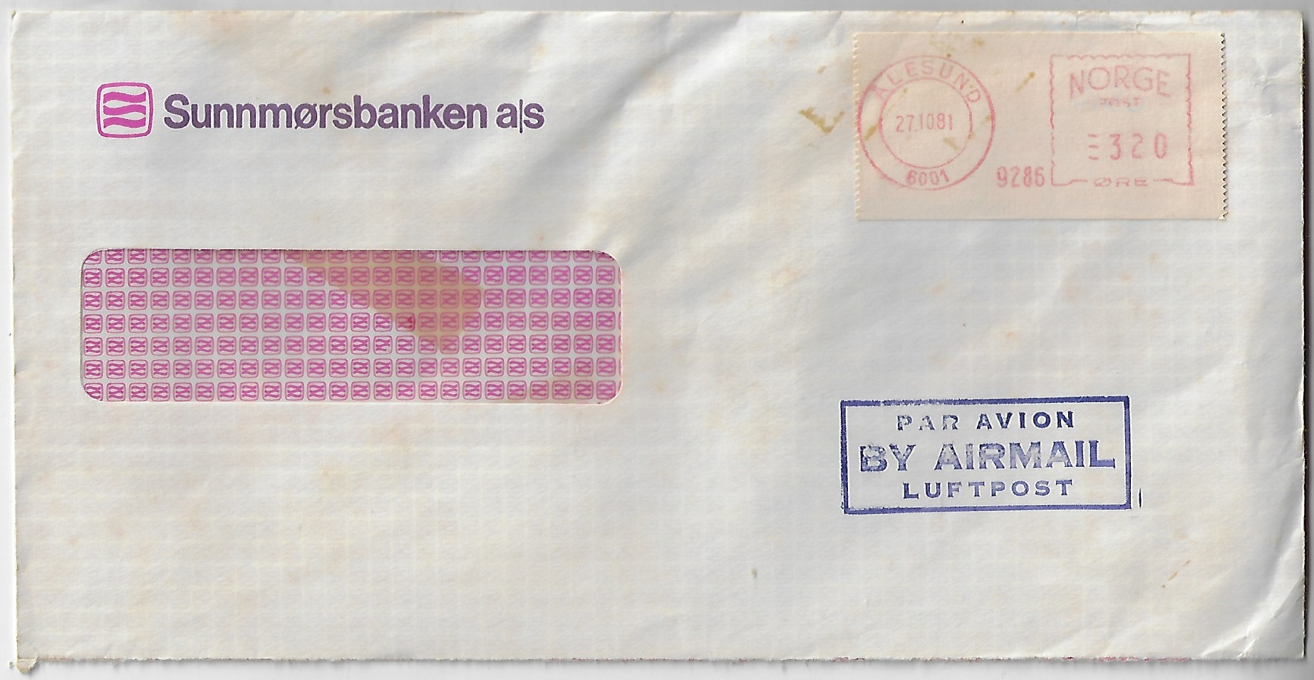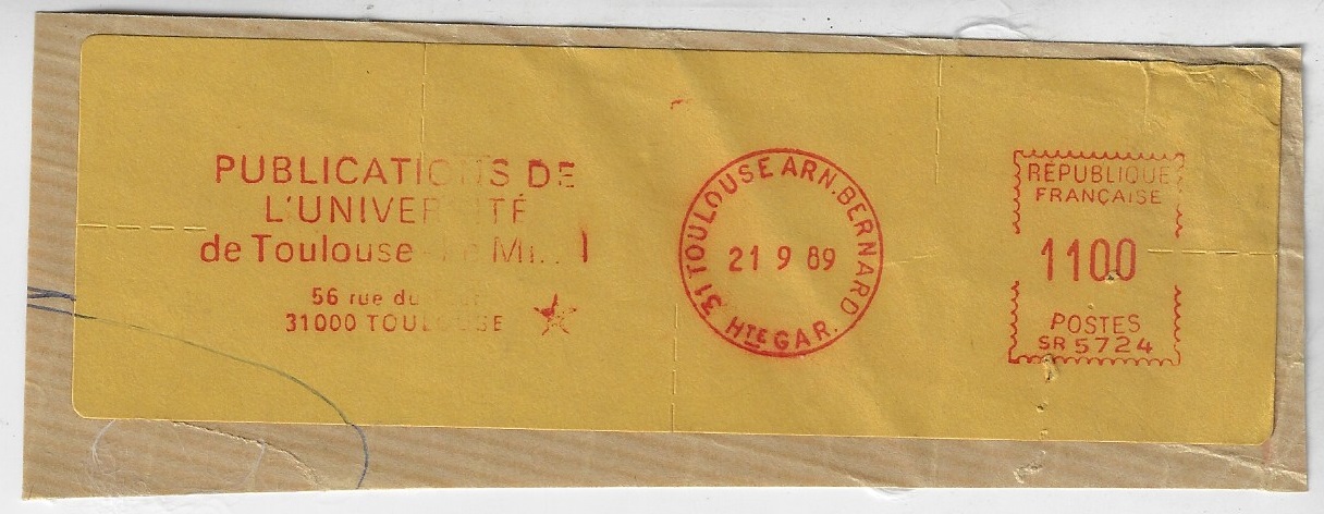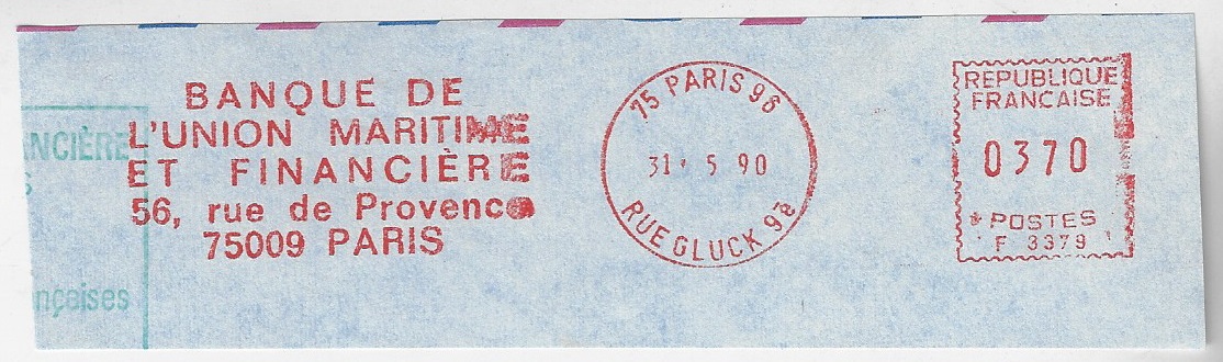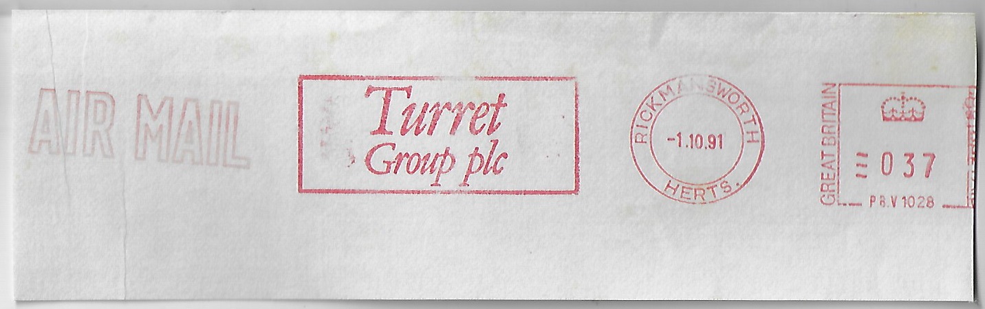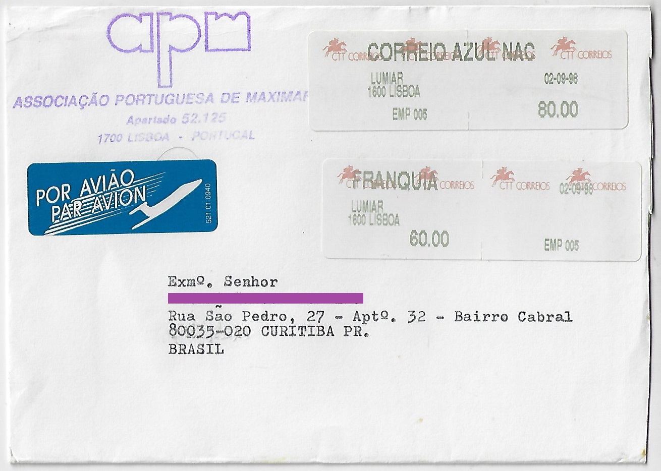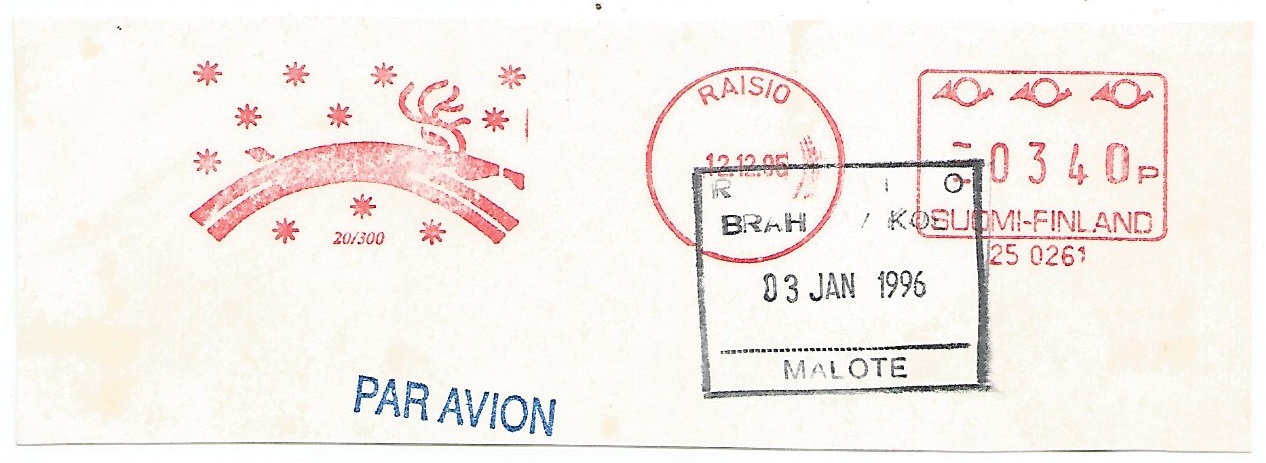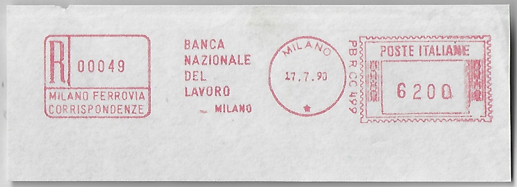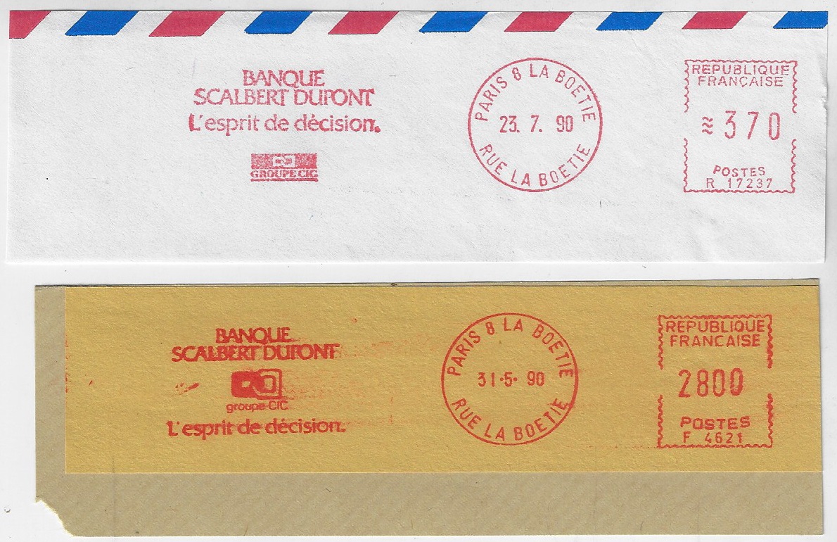 | 59200 | África do Sul, 1991, fragmento de envelope aéreo porteado com franquia mecânica Hasler "Mailmaster" com slogan "Volkskas Bank ( Banco Popular)", de Johannesburg |