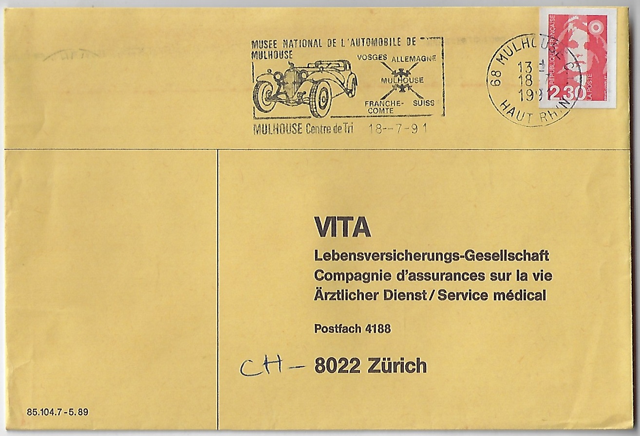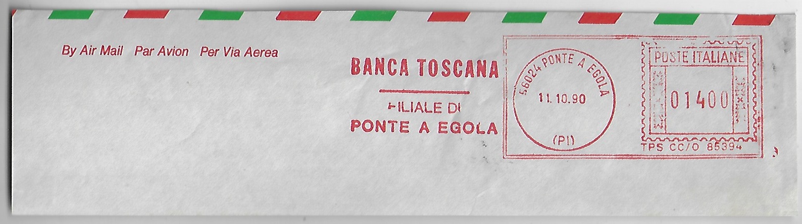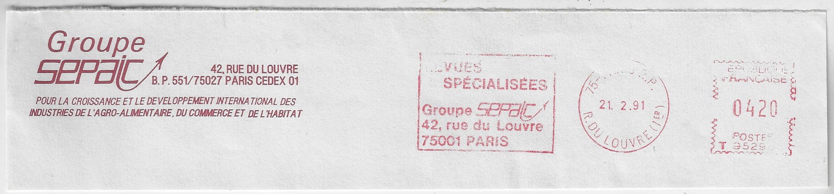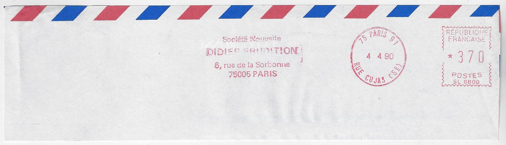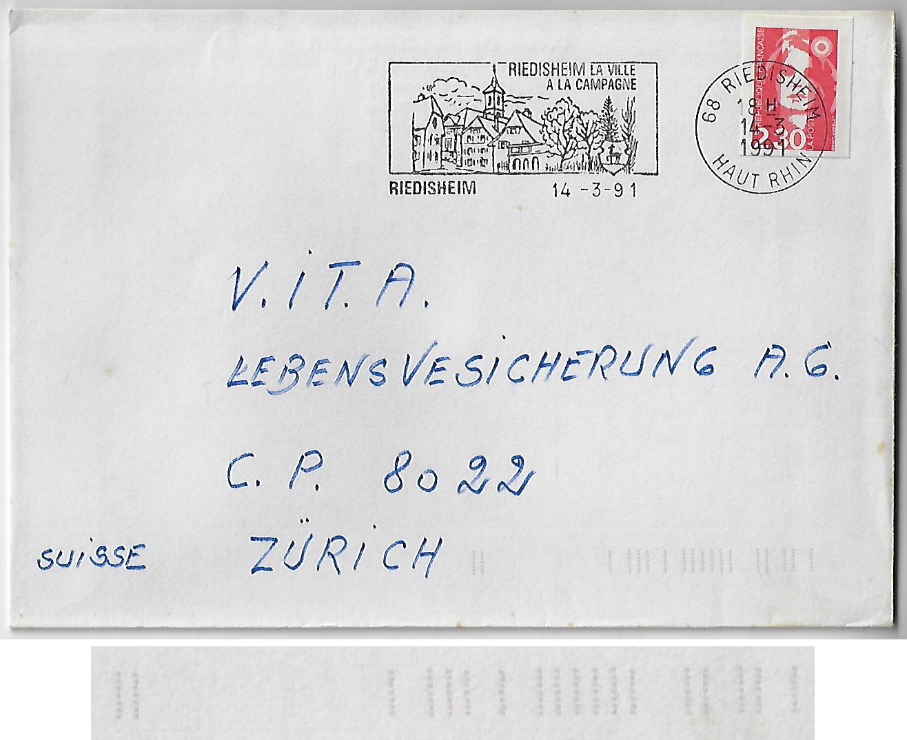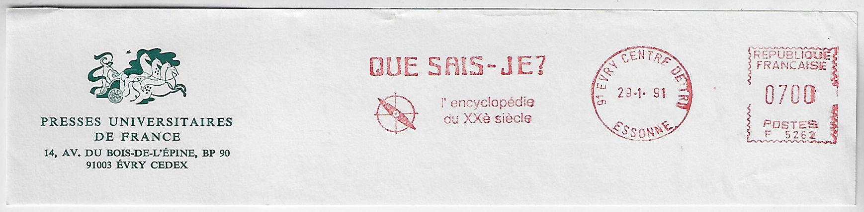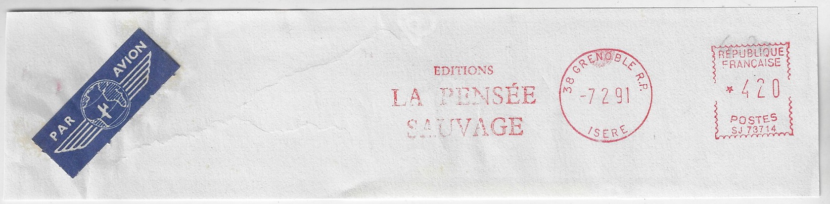 | 59200 | África do Sul, 1991, fragmento de envelope aéreo porteado com franquia mecânica Hasler "Mailmaster" com slogan "Volkskas Bank ( Banco Popular)", de Johannesburg |