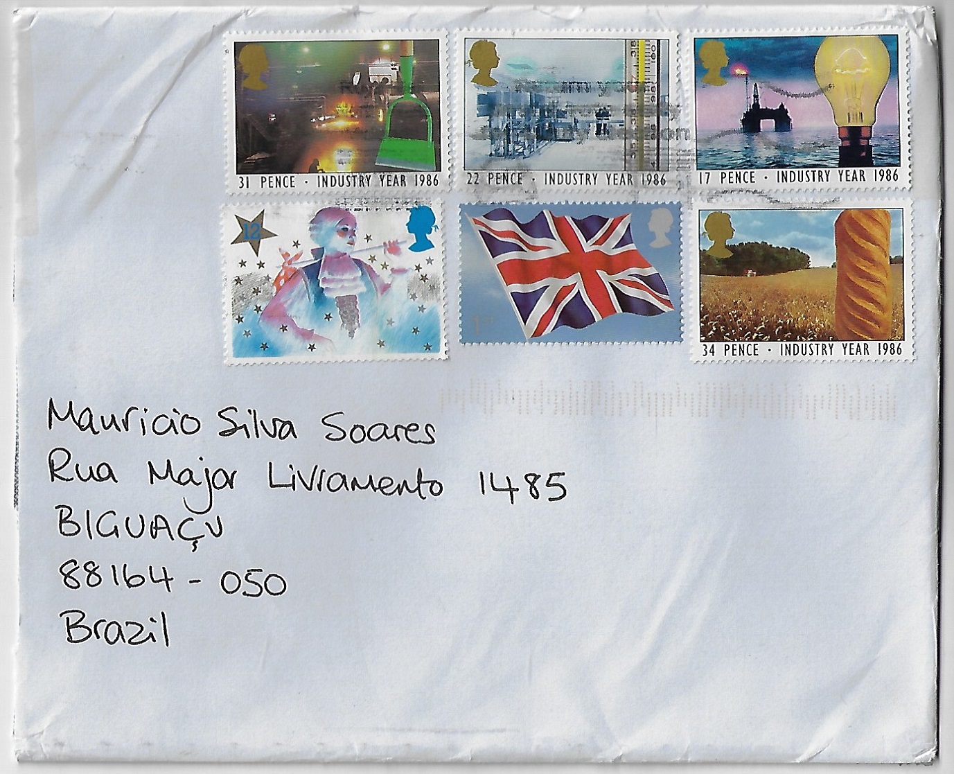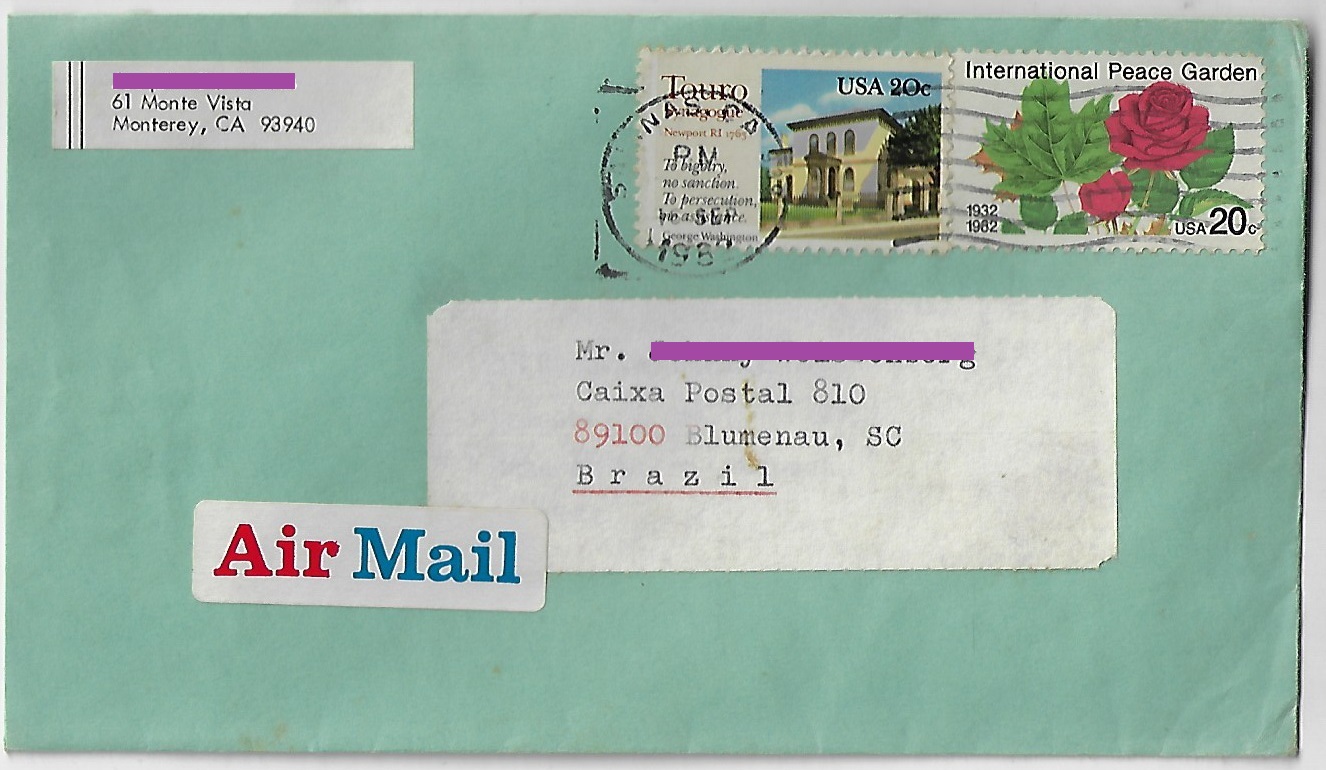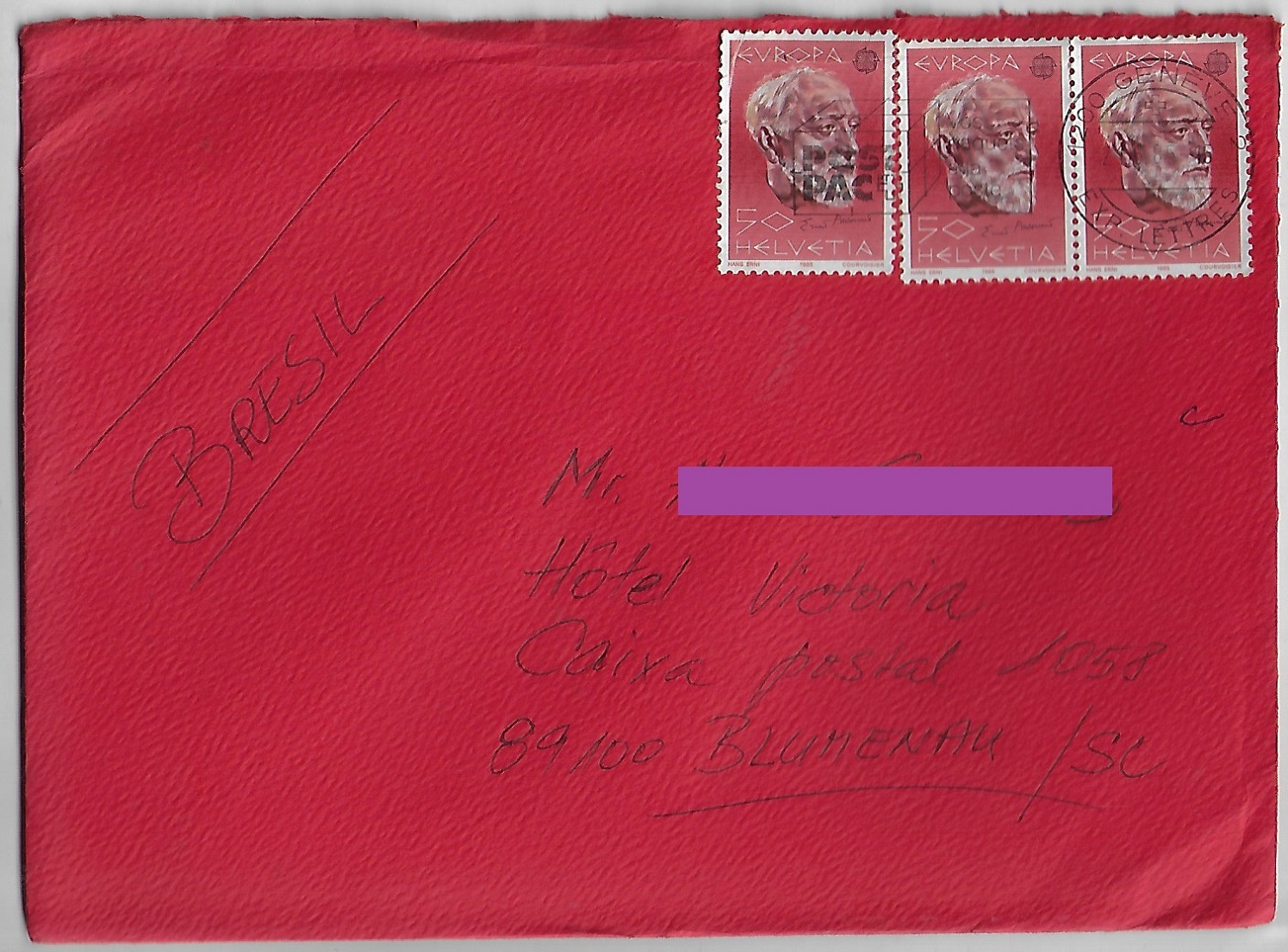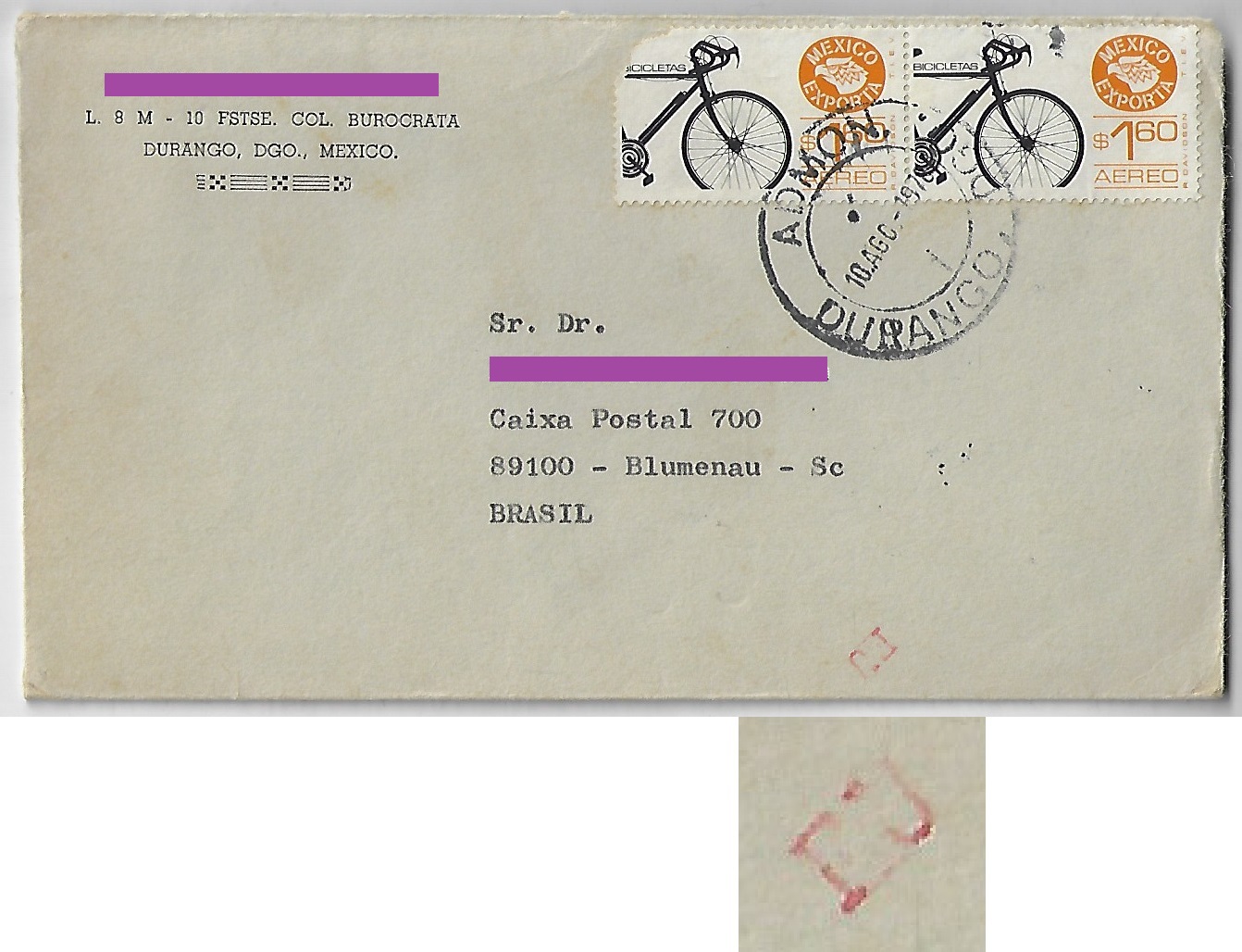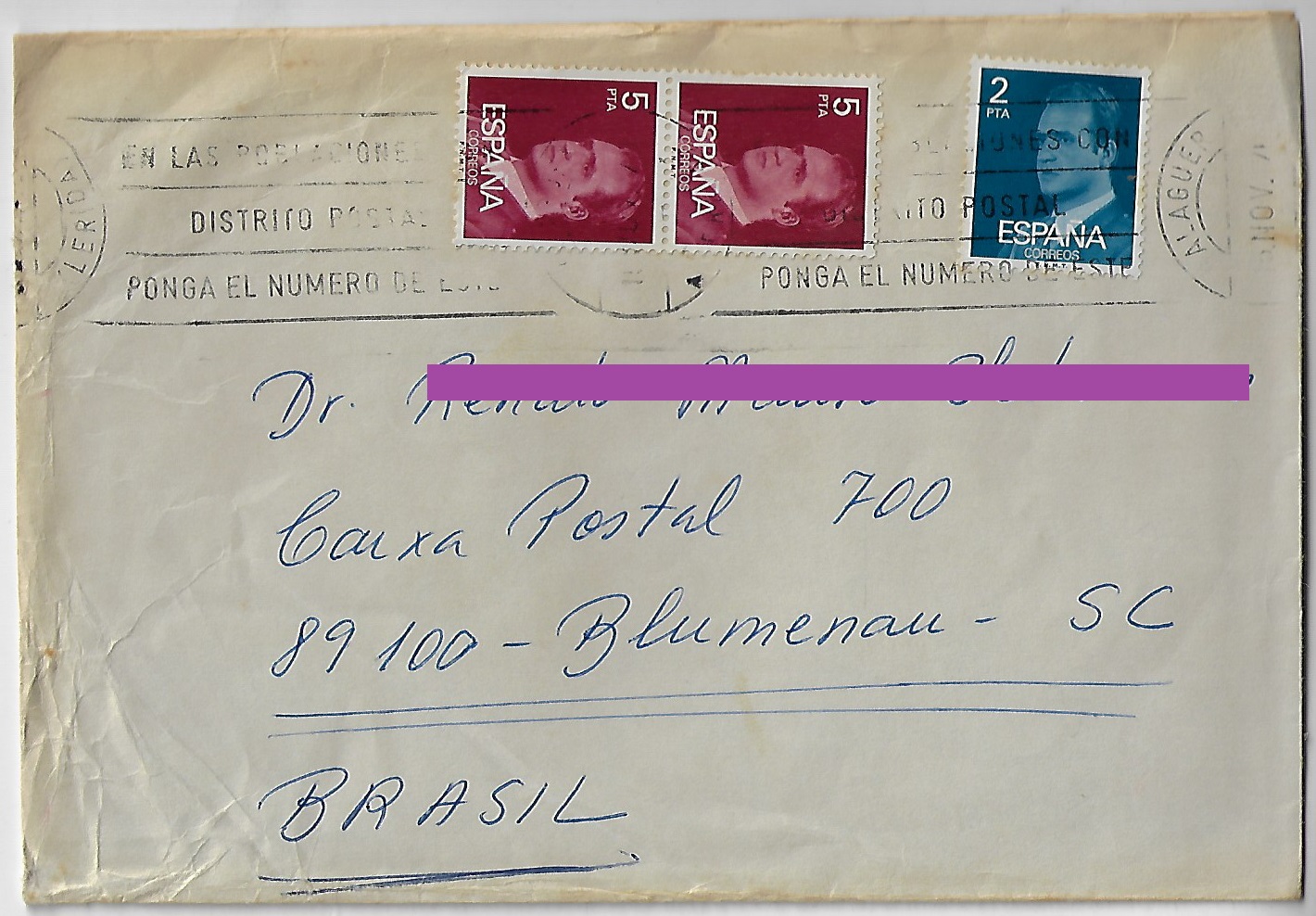 | 84654 | Uruguai, 1981, envelope aéreo enviado de Montevidéu (24/9) para Blumenau, porteado com 3 selos regulares diferentes José Gervasio Artigas | 10,00 | Foto |