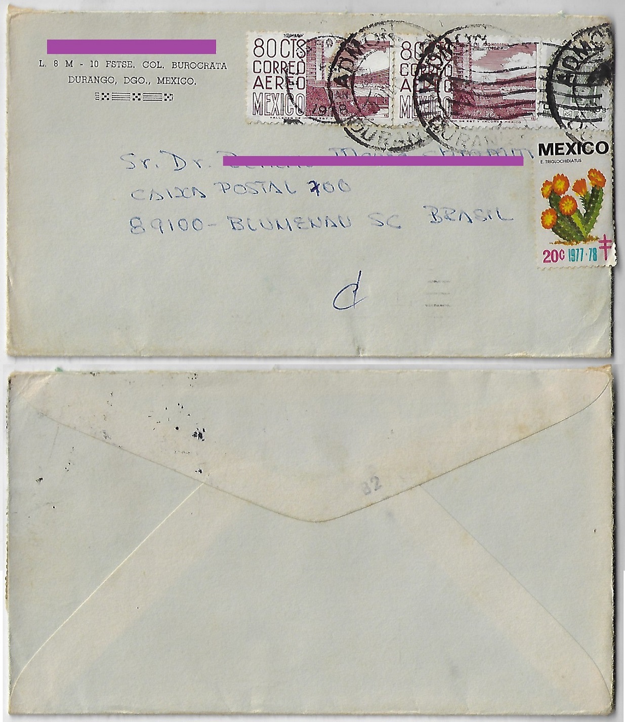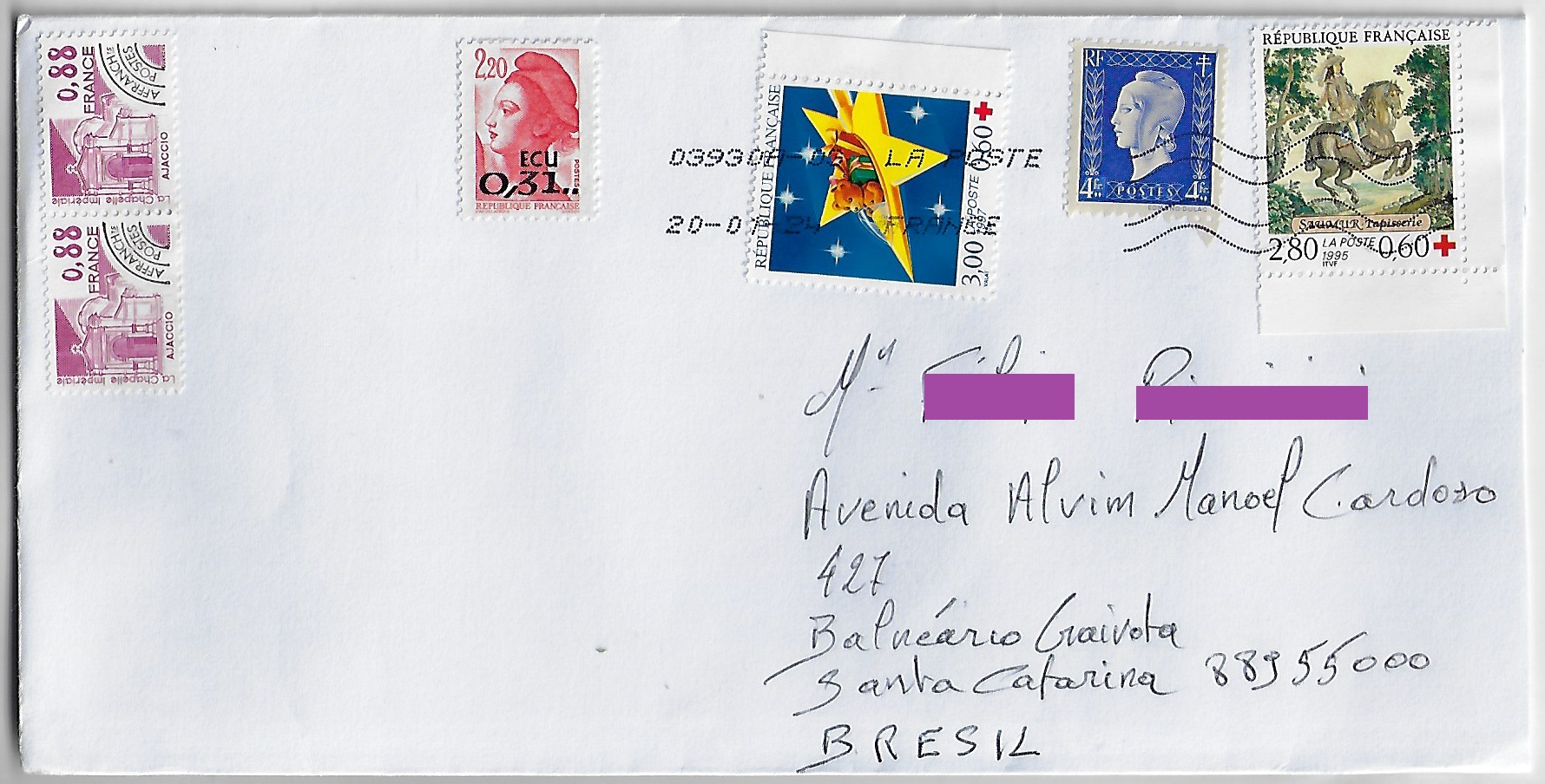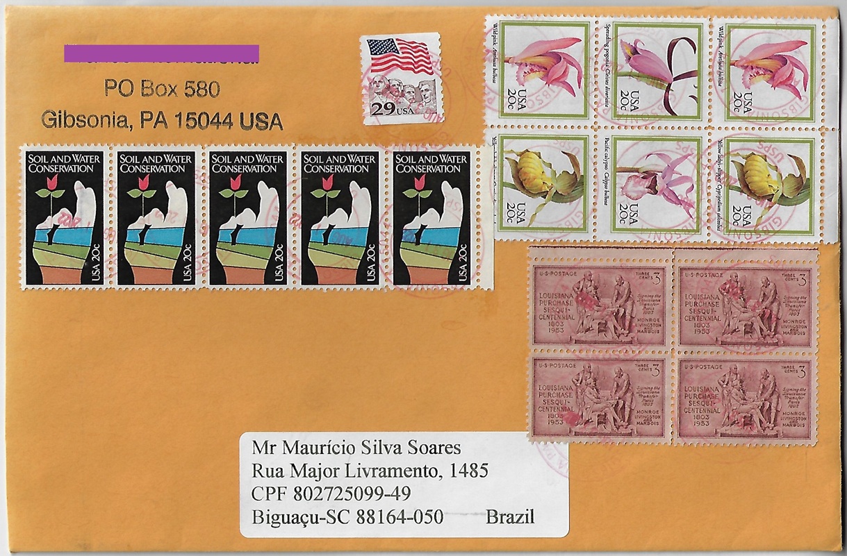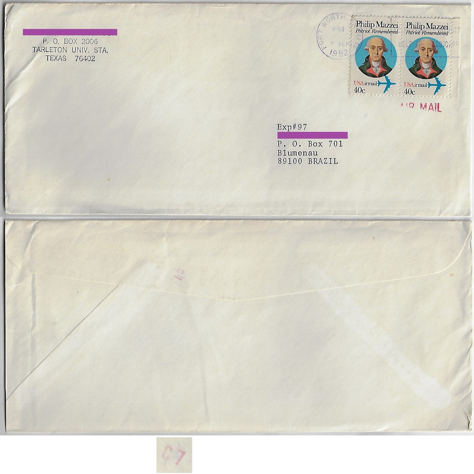 | 84654 | Uruguai, 1981, envelope aéreo enviado de Montevidéu (24/9) para Blumenau, porteado com 3 selos regulares diferentes José Gervasio Artigas | 10,00 | Foto |