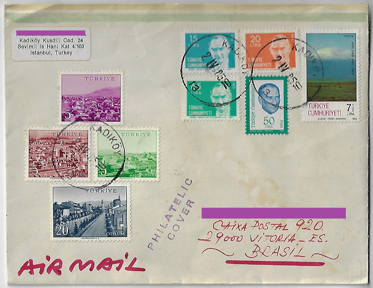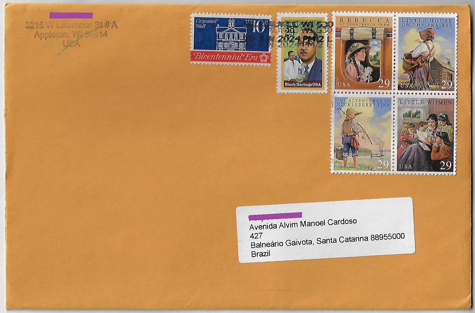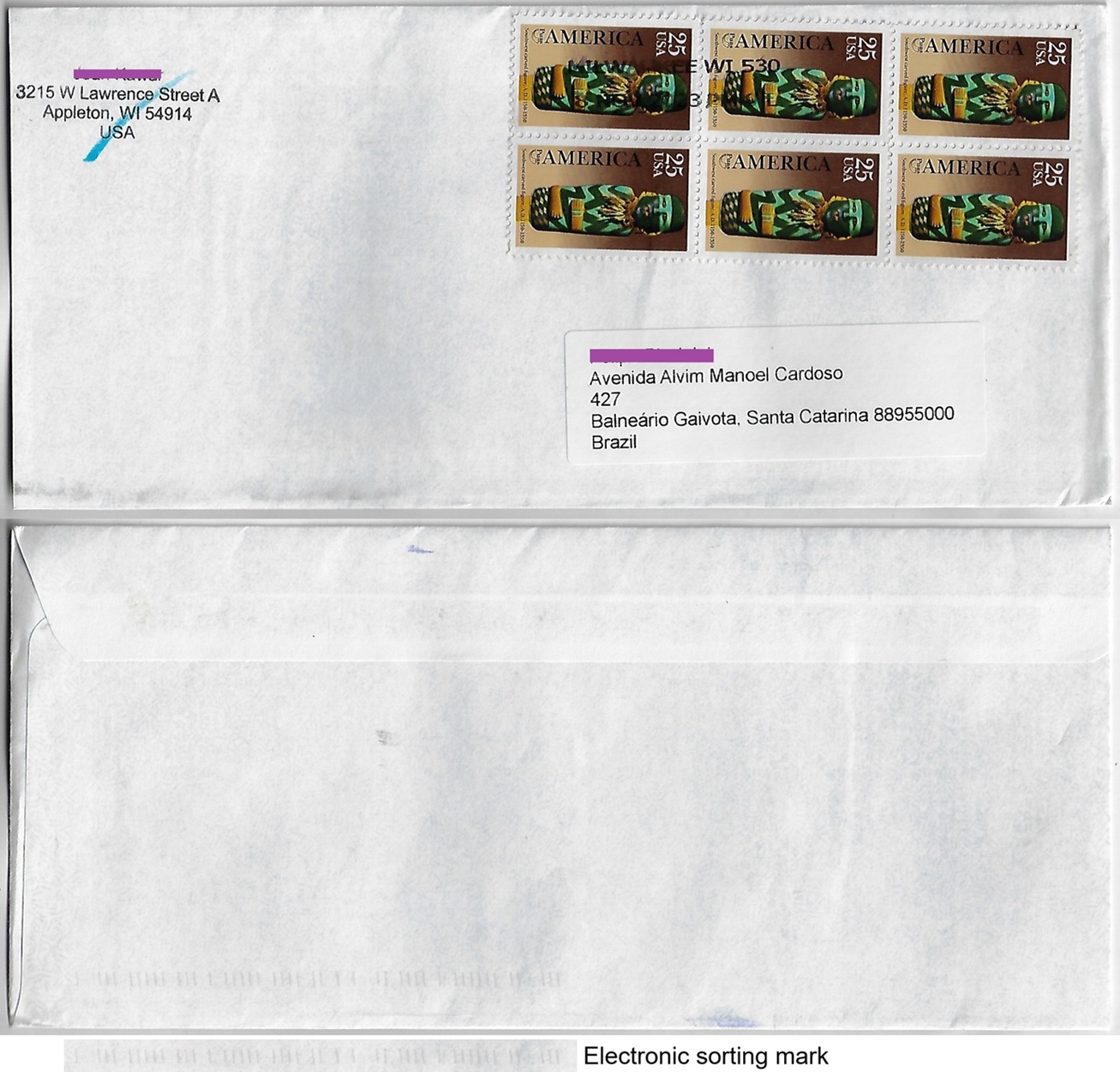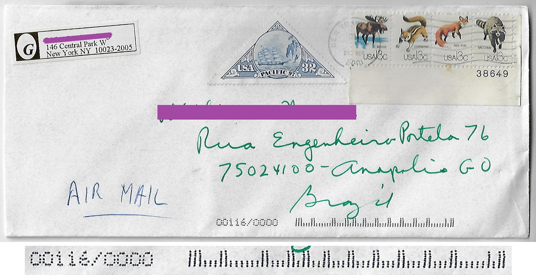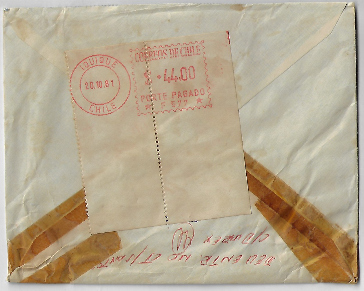 | 84654 | Uruguai, 1981, envelope aéreo enviado de Montevidéu (24/9) para Blumenau, porteado com 3 selos regulares diferentes José Gervasio Artigas | 10,00 | Foto |
