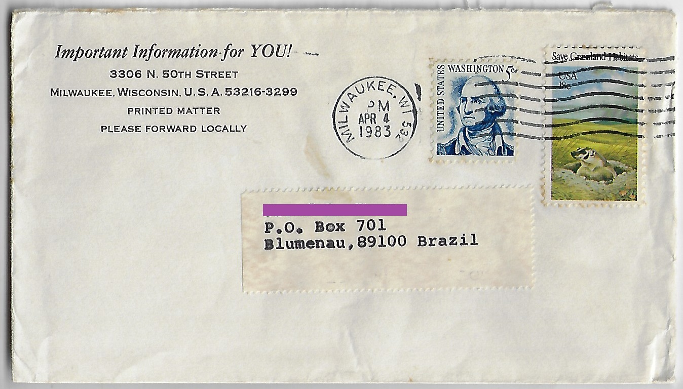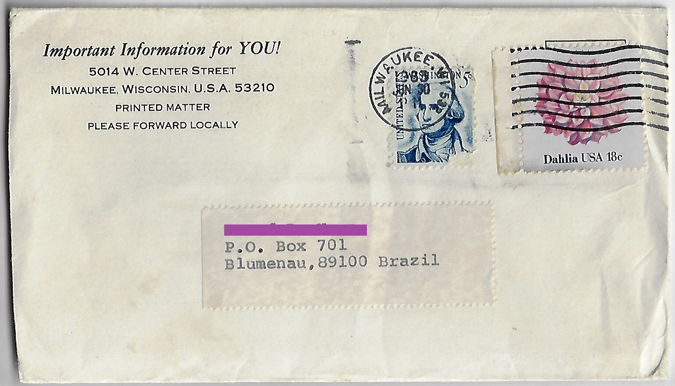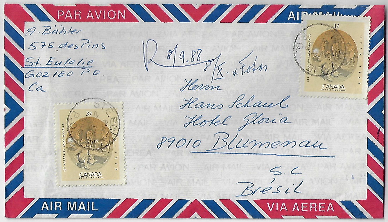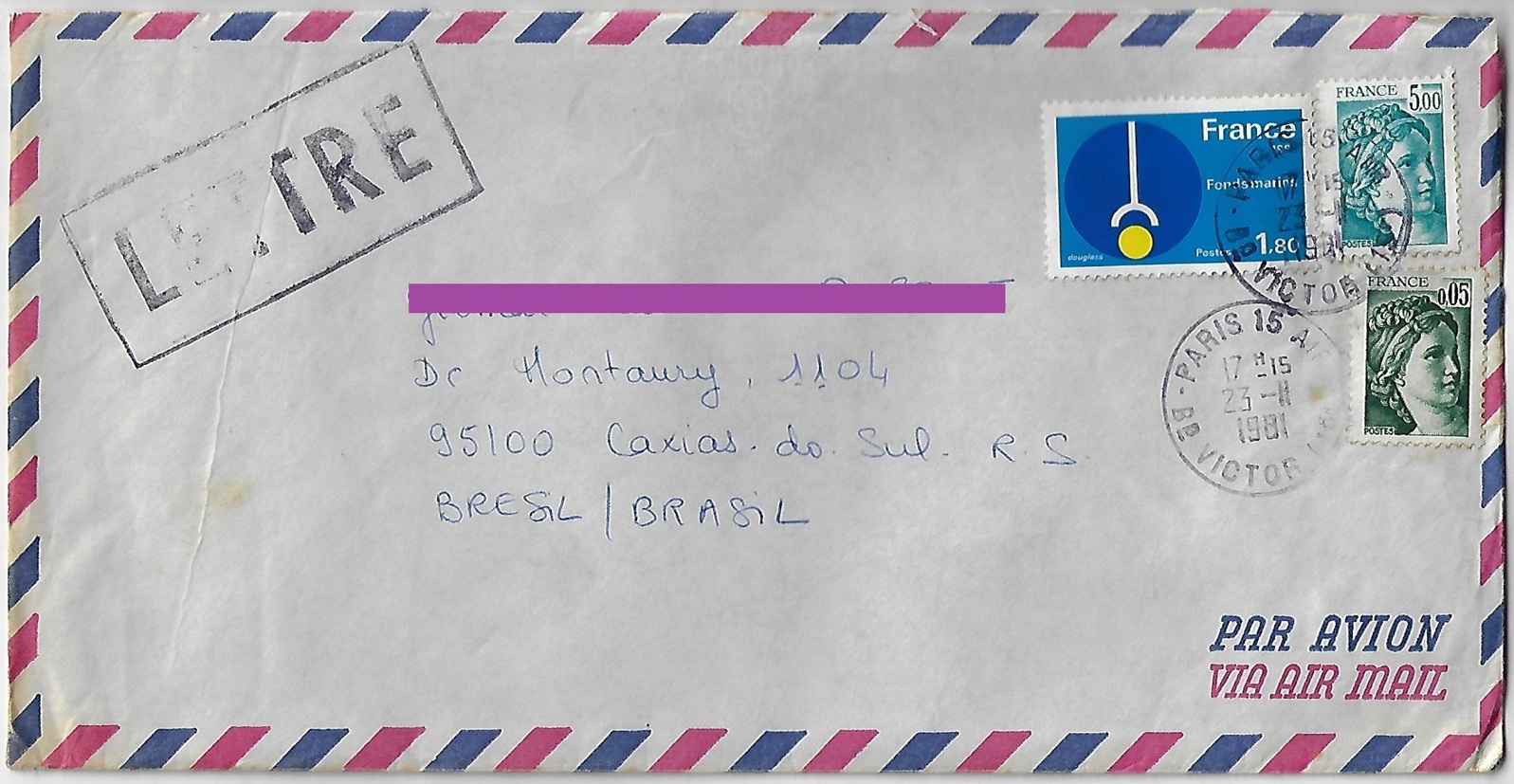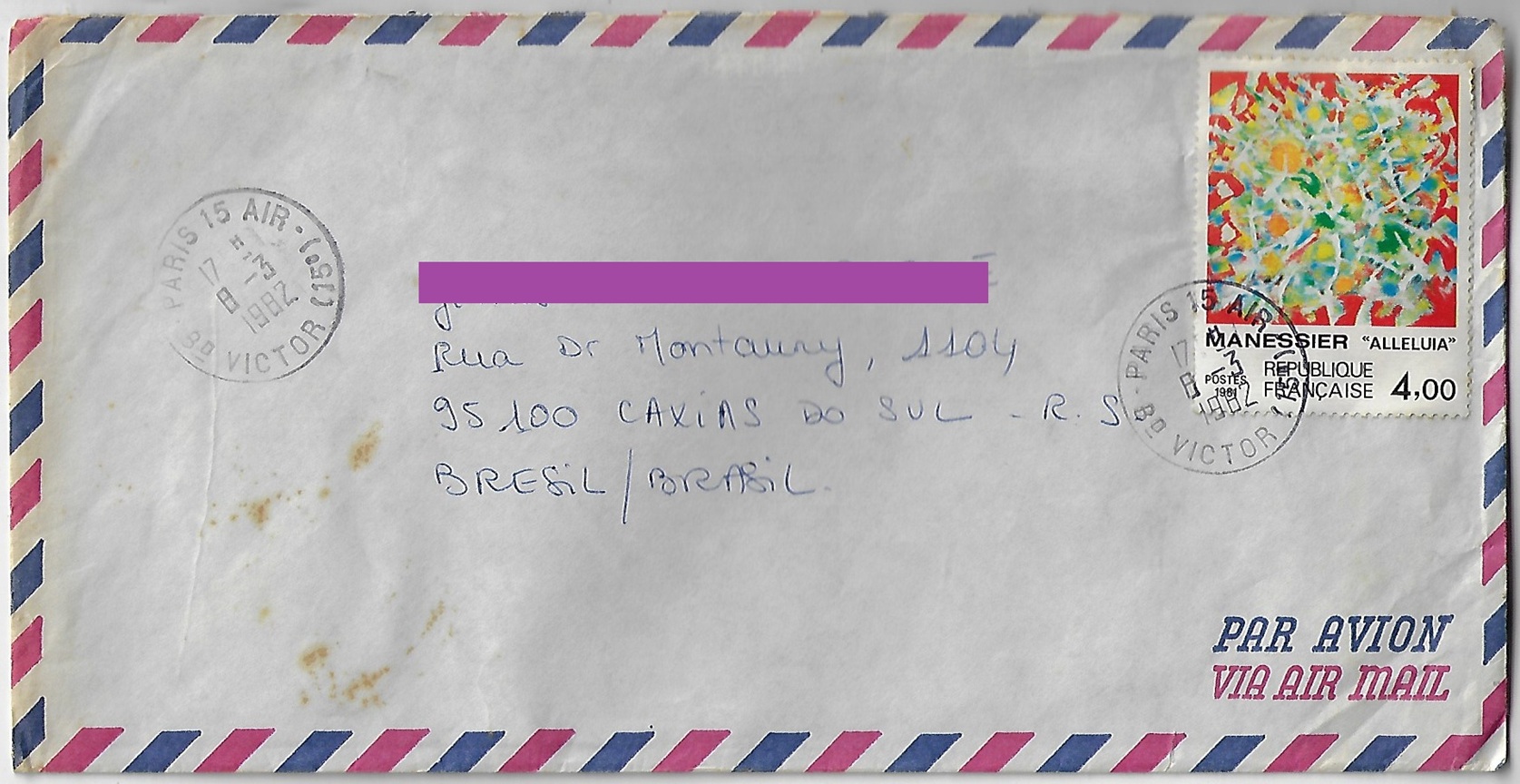 | 84654 | Uruguai, 1981, envelope aéreo enviado de Montevidéu (24/9) para Blumenau, porteado com 3 selos regulares diferentes José Gervasio Artigas | 10,00 | Foto |