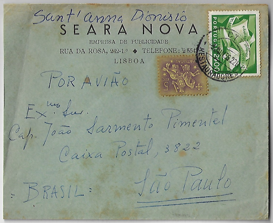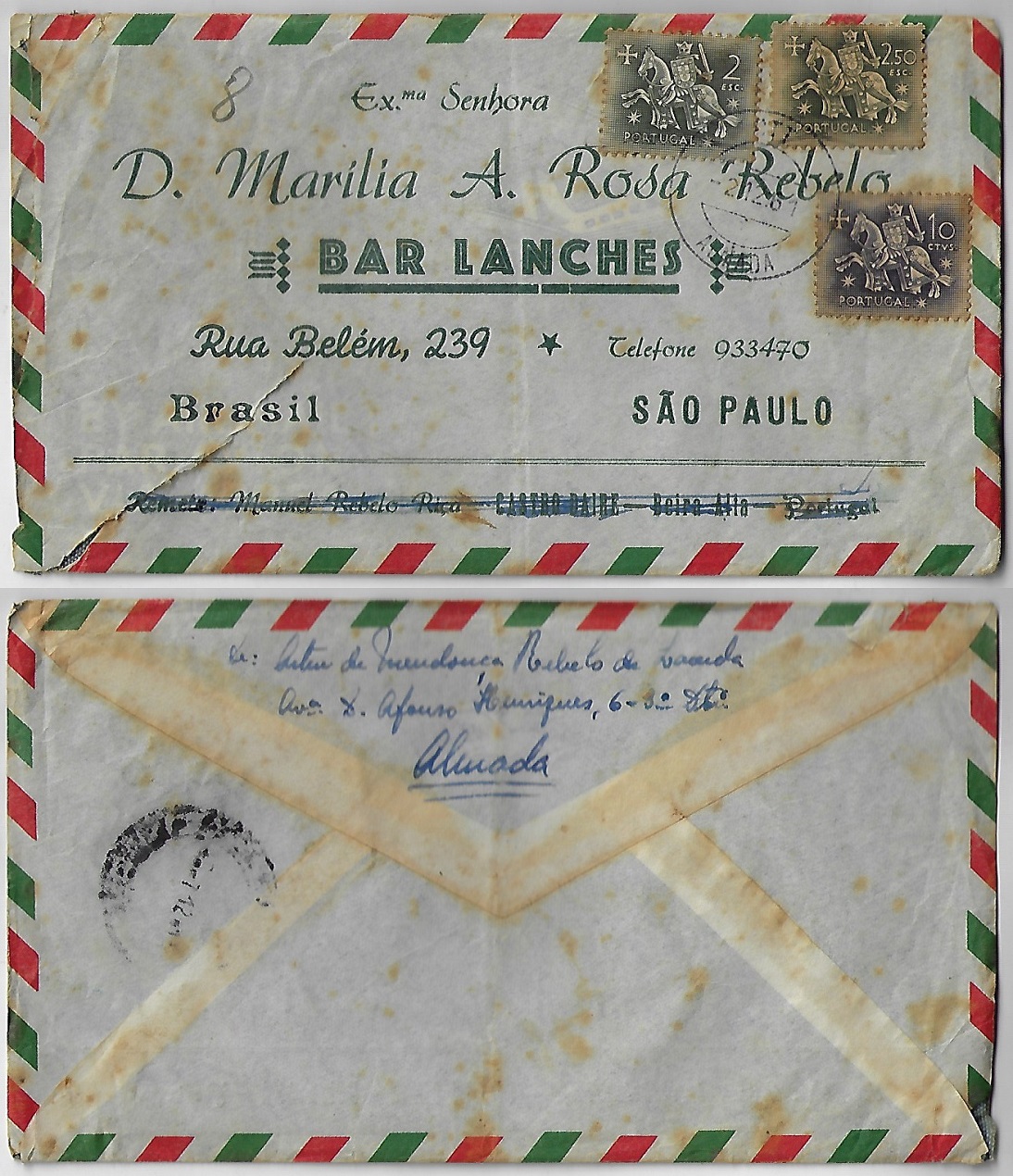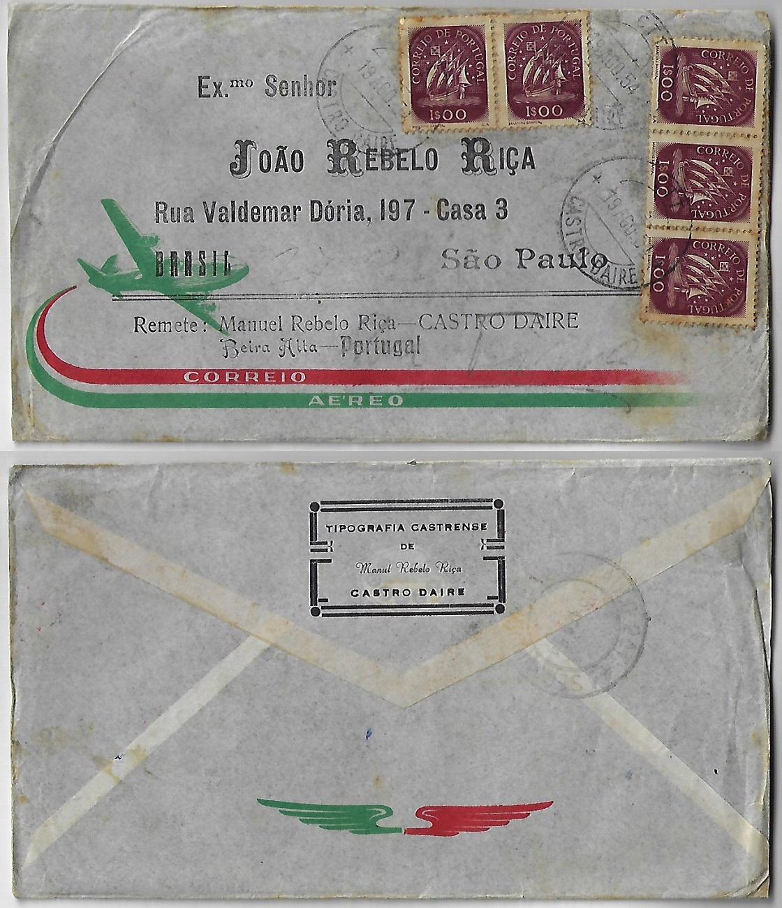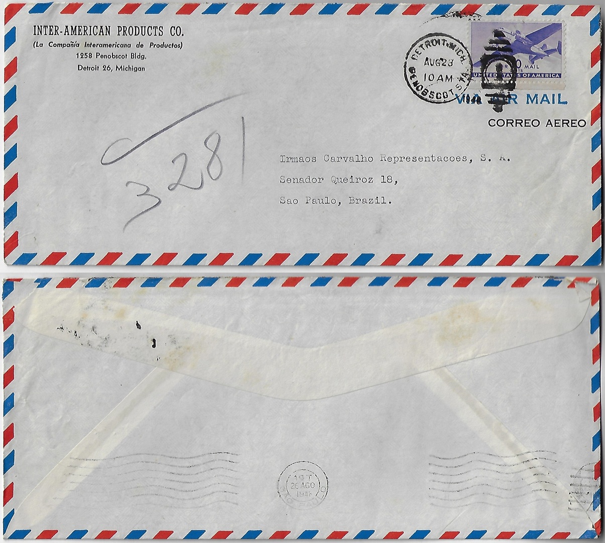 | 78757 | Argentina, 1947, envelope comercial de La Araucana enviado de Buenos Aires para São Paulo, reencaminhado para Caixa Postal, selo San Martin, carimbo com slogan "Utilize a via aérea" | 10,00 | Foto |