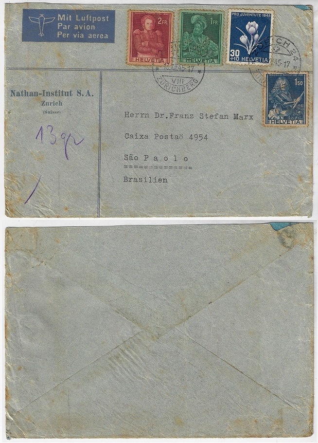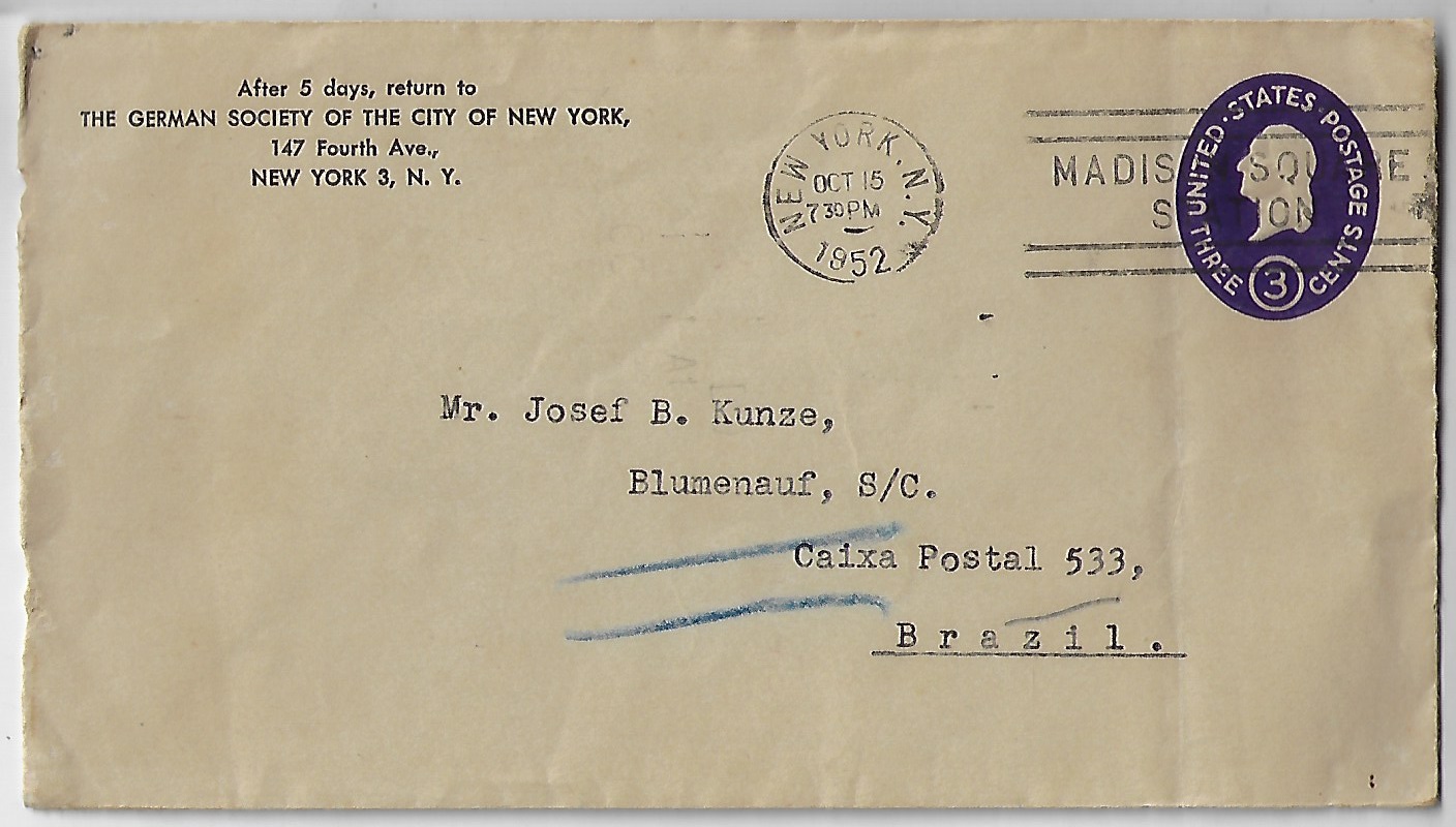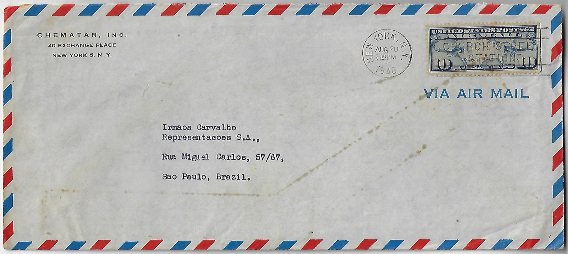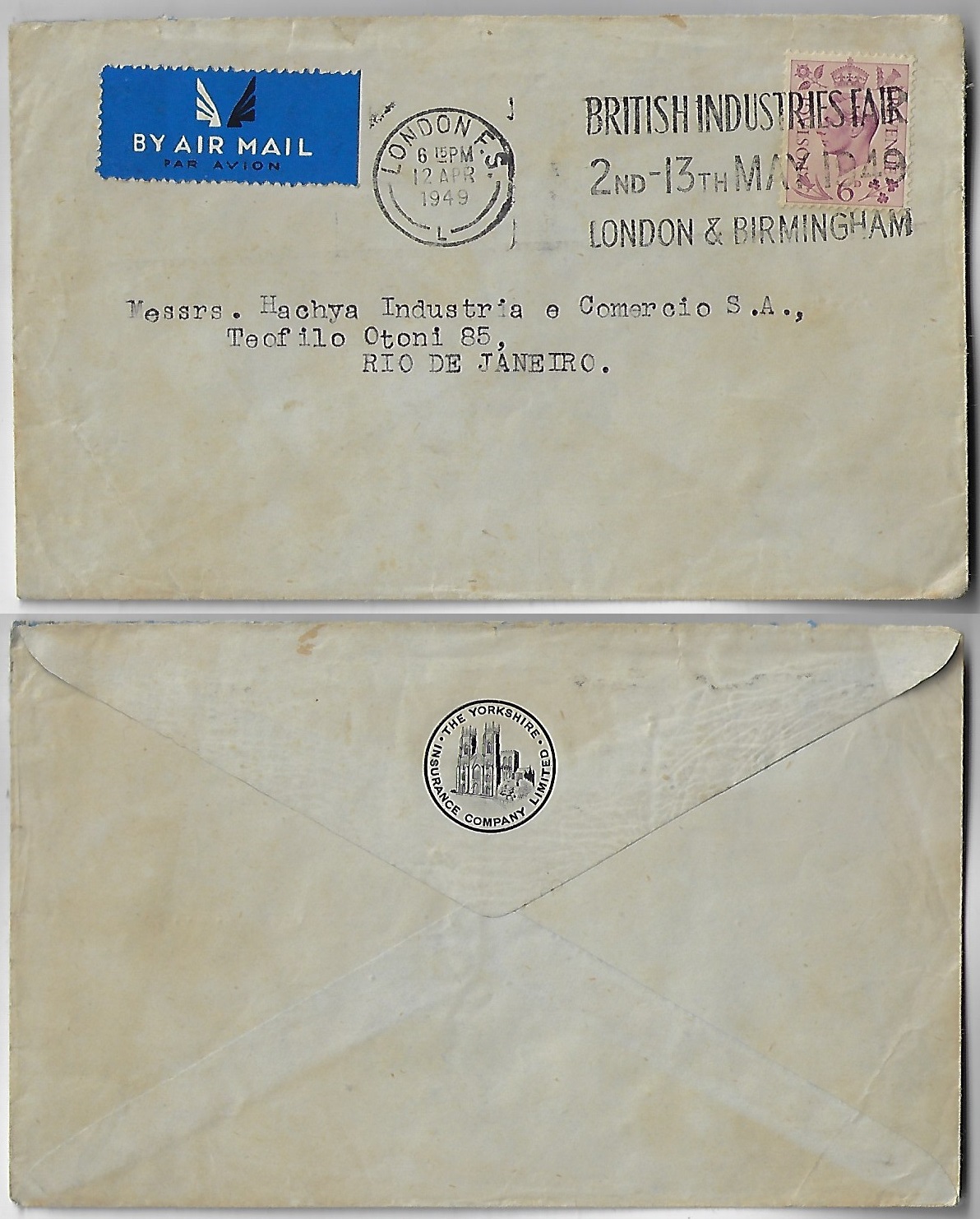 | 78757 | Argentina, 1947, envelope comercial de La Araucana enviado de Buenos Aires para São Paulo, reencaminhado para Caixa Postal, selo San Martin, carimbo com slogan "Utilize a via aérea" | 10,00 | Foto |