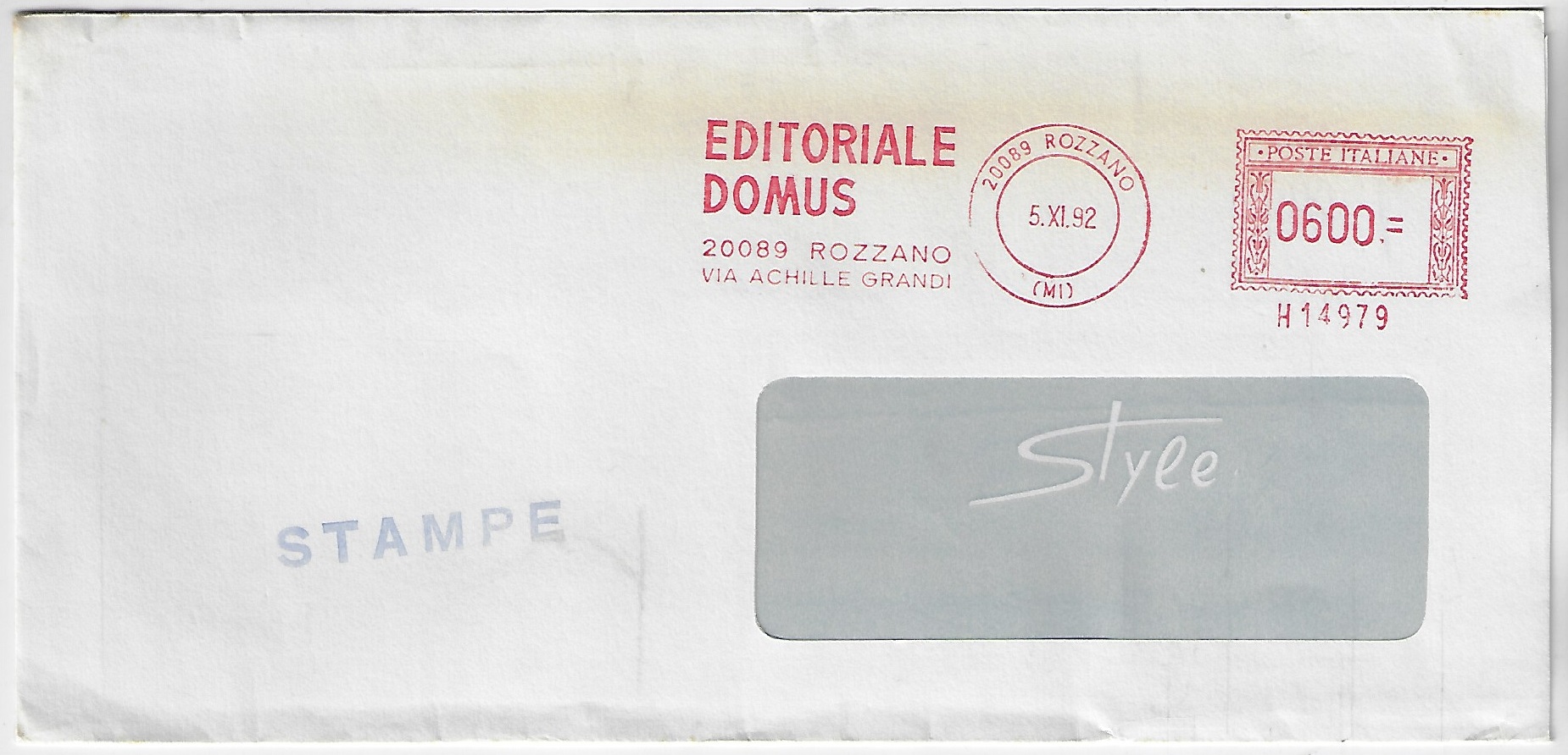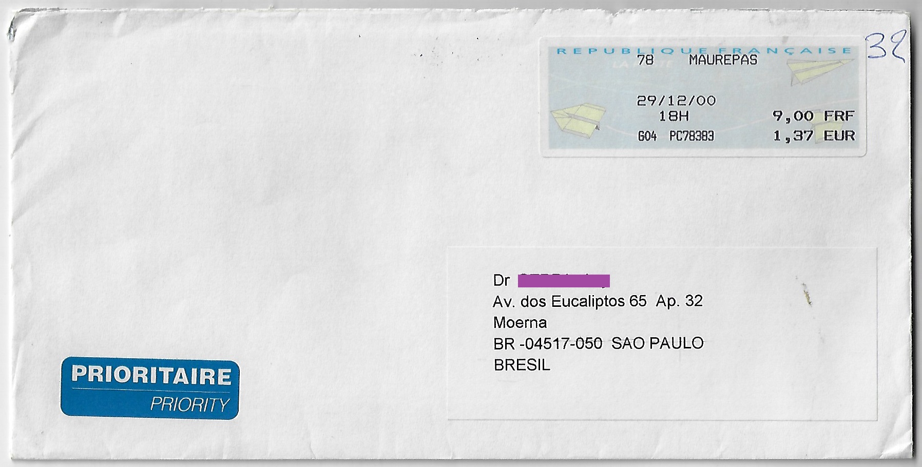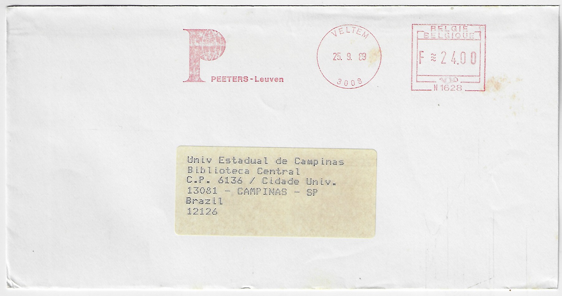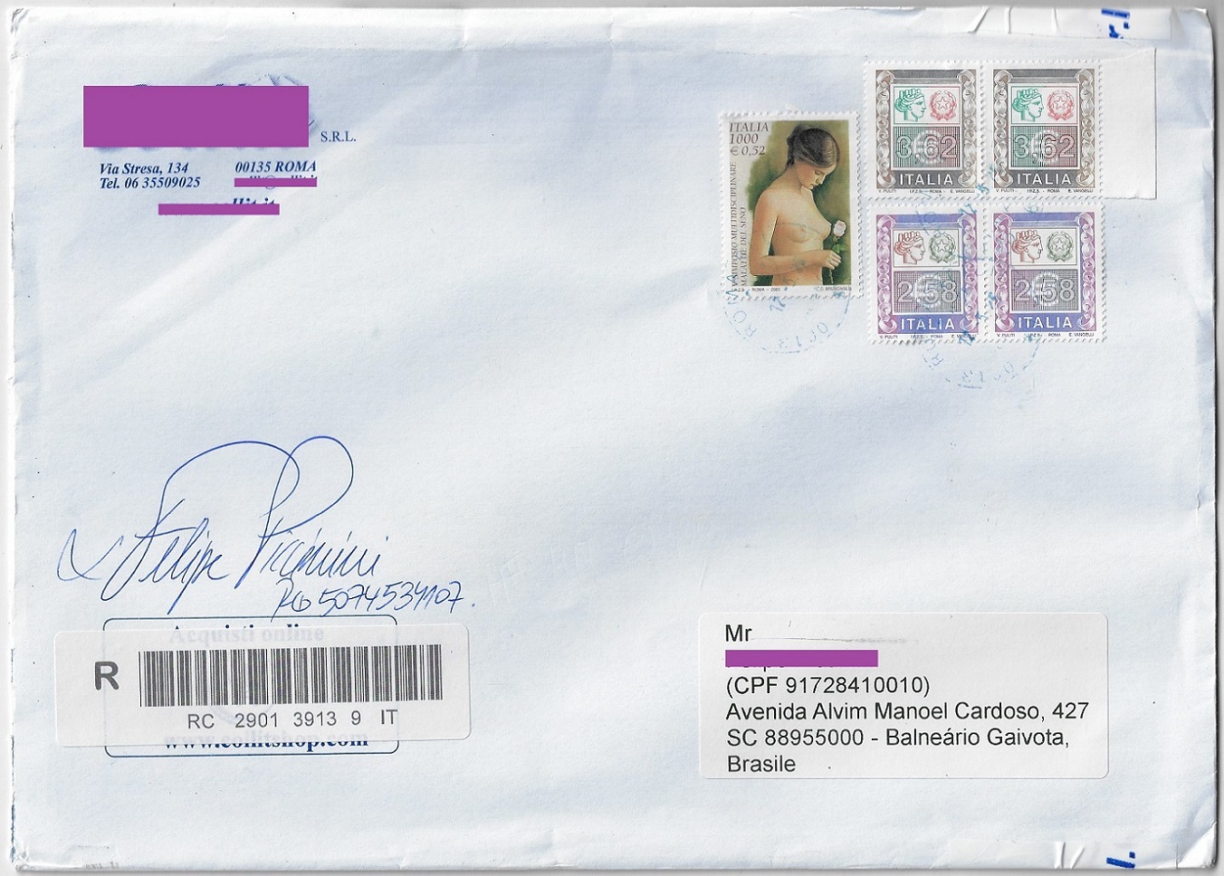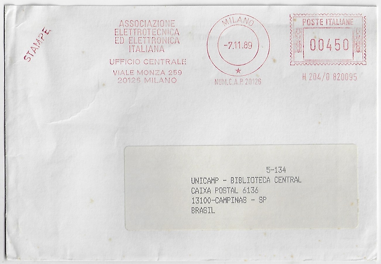 | 79069 | Vaticano, 2003, envelope enviado para Brasília, porteado com franquia mecânica Neopost “Electronic” com slogan "Congregatio Pro Clericis (Congregação para o Clero)" | 10,00 | Foto |
