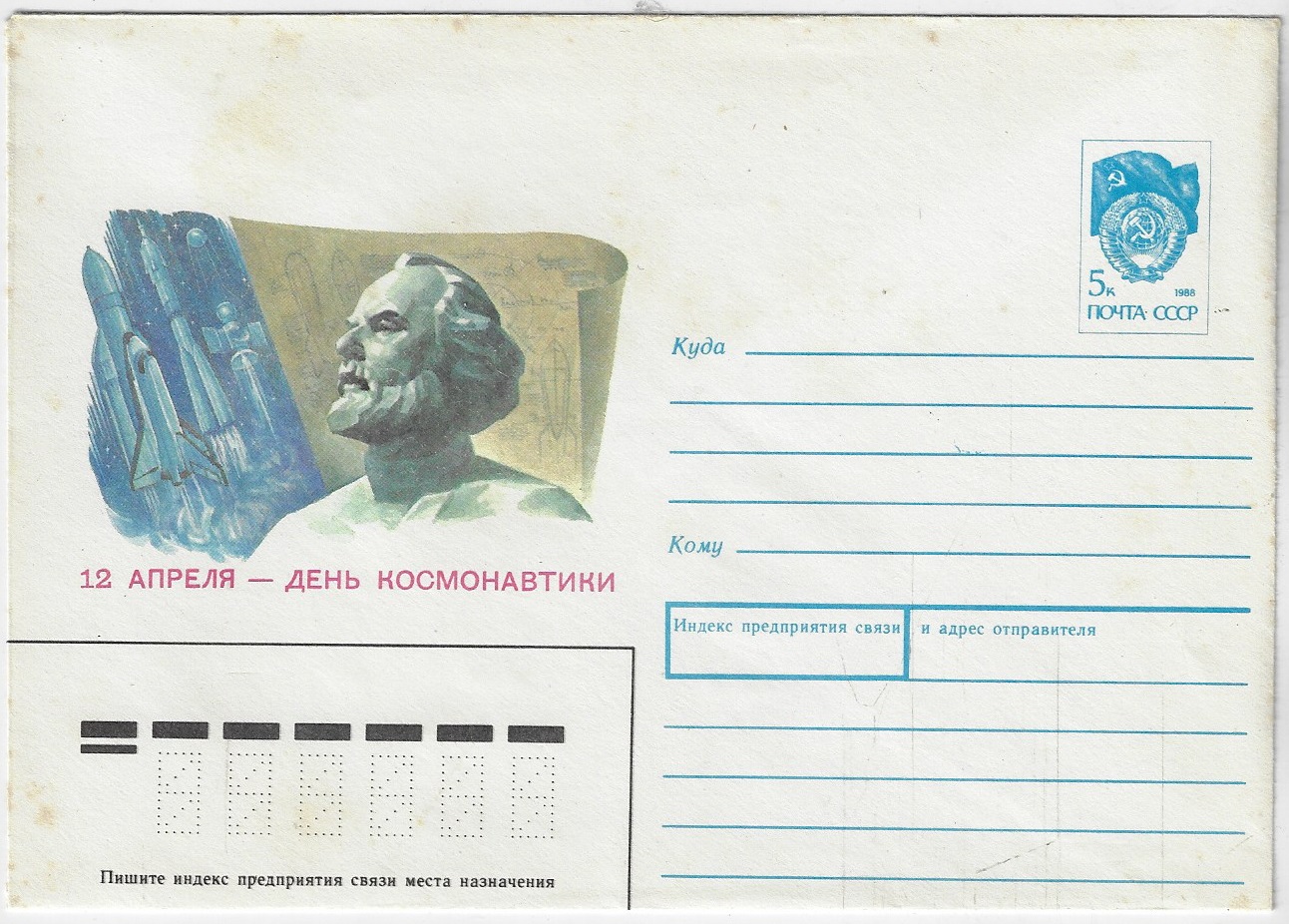 | 42191 | URSS, 1991, inteiro postal tipo envelope, 12 Abril, Dia do Cosmonauta, Astronáutica, cientista de foguetes Tsiolkovsky, sem uso | 10,00 | Foto |
