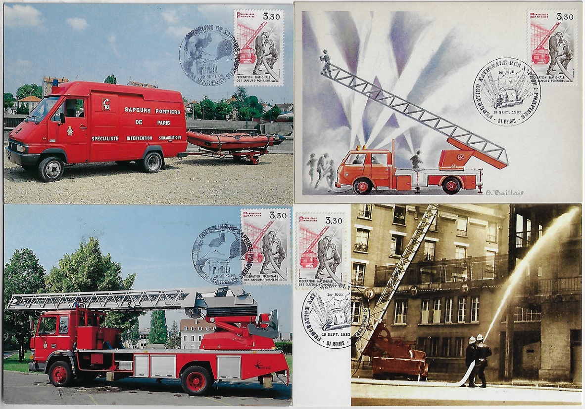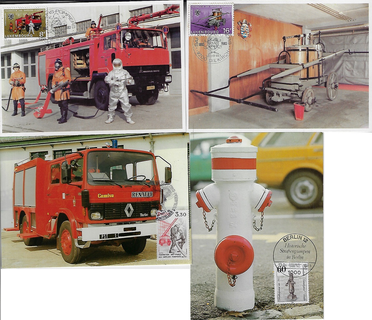 | 42455 | Alemanha, França e Luxemburgo, 1983/1995, 4 máximos postais alusivos ao Tema Corpo de Bombeiros | 30,00 | Foto |