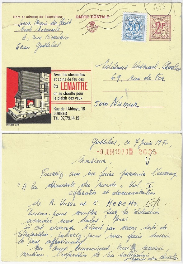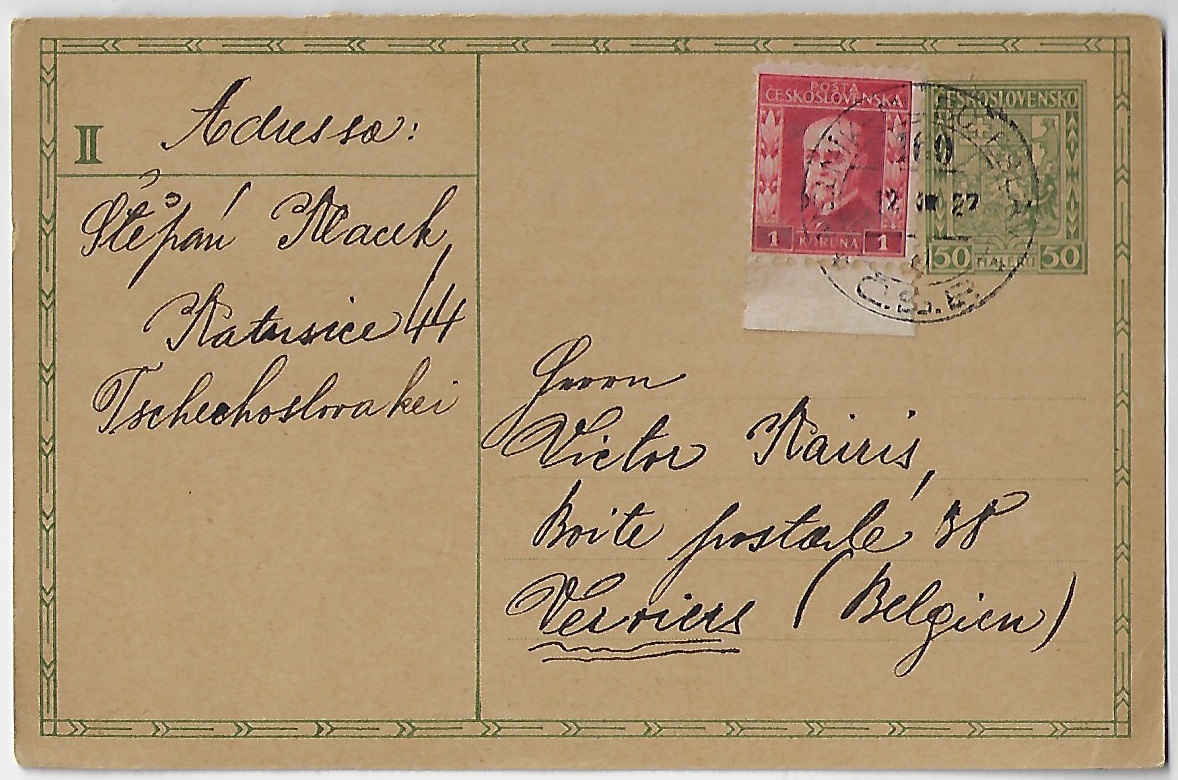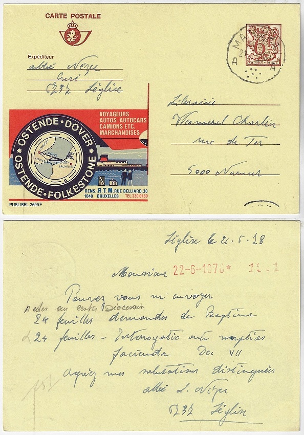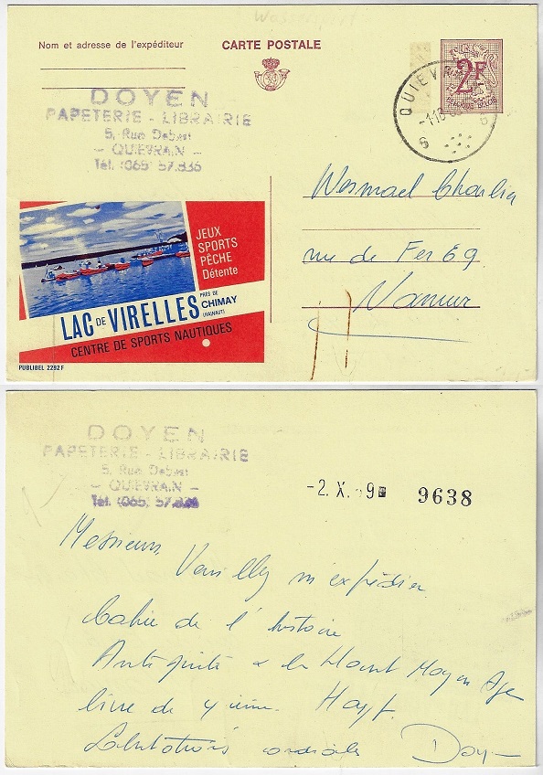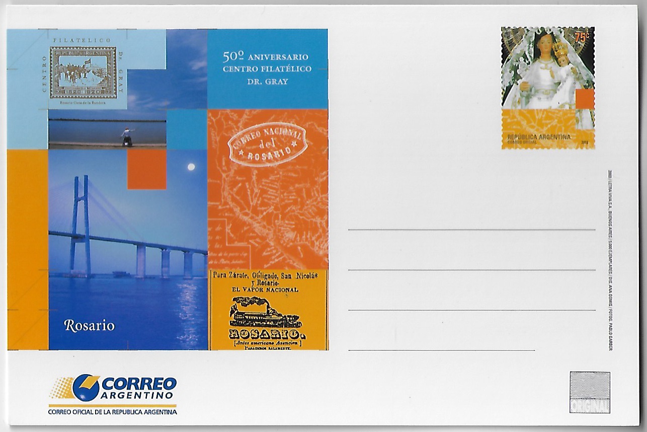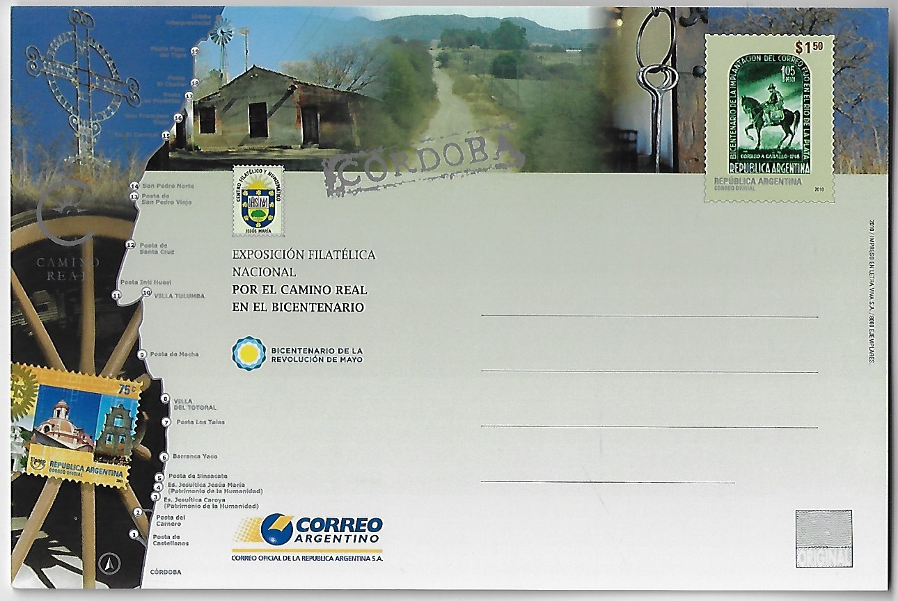 | 79654 | Argentina, 1949, inteiro postal tipo bilhete Exposição Correio e Telecomunicações no Plano Quinquenal, Vagões Postais, selo 4 Centavos, carimbo de 1º dia de circulação + etiqueta Padre Damián, santo apóstolo dos leprosos | 14,00 | Foto |