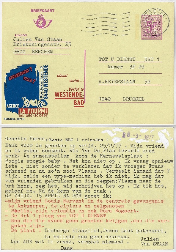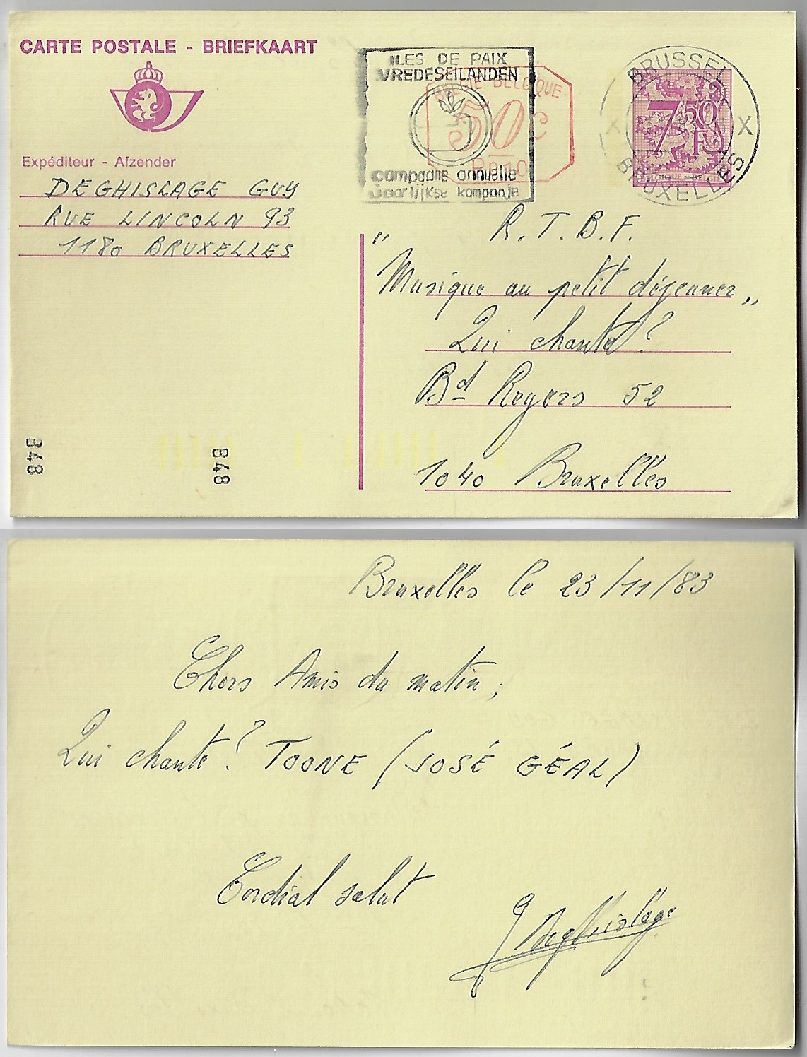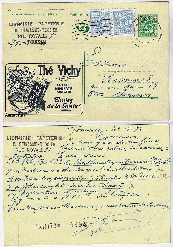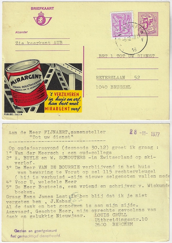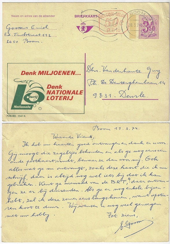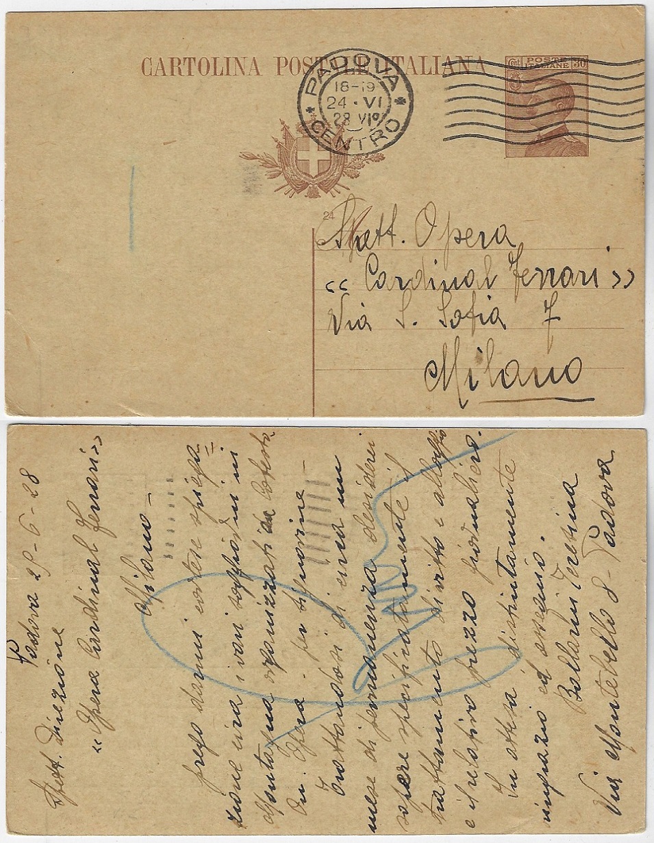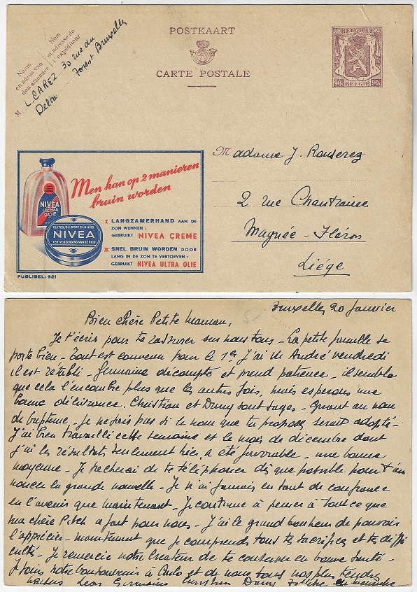 | 79654 | Argentina, 1949, inteiro postal tipo bilhete Exposição Correio e Telecomunicações no Plano Quinquenal, Vagões Postais, selo 4 Centavos, carimbo de 1º dia de circulação + etiqueta Padre Damián, santo apóstolo dos leprosos | 14,00 | Foto |