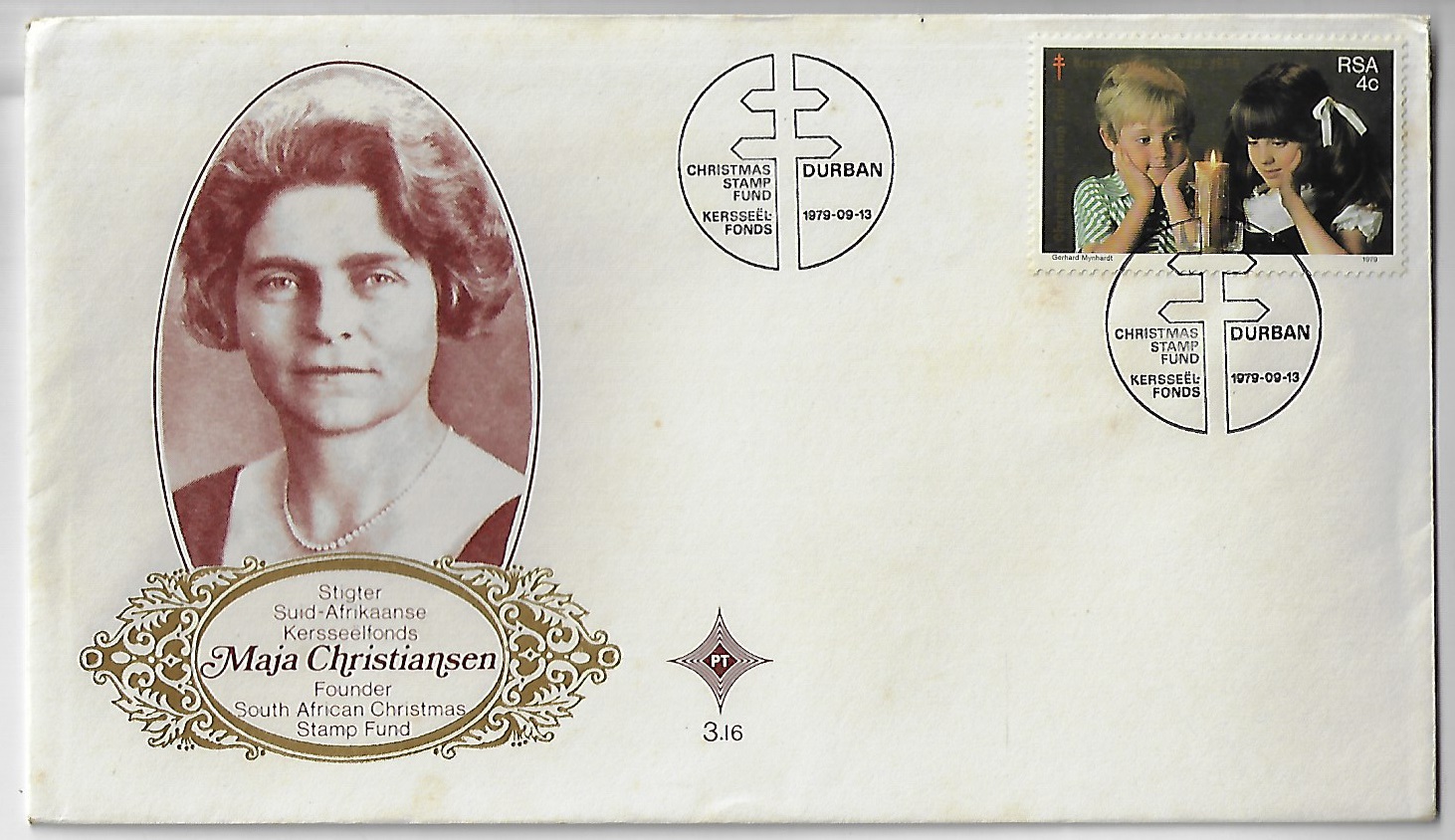 | 44407 | África do Sul, 1979, FDC envelope com 1 selo e carimbo comemorativo ao Fundo de Selos de Natal da África Sul, com edital | 10,00 | Foto |