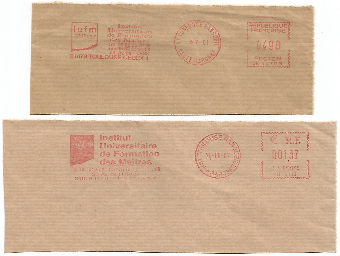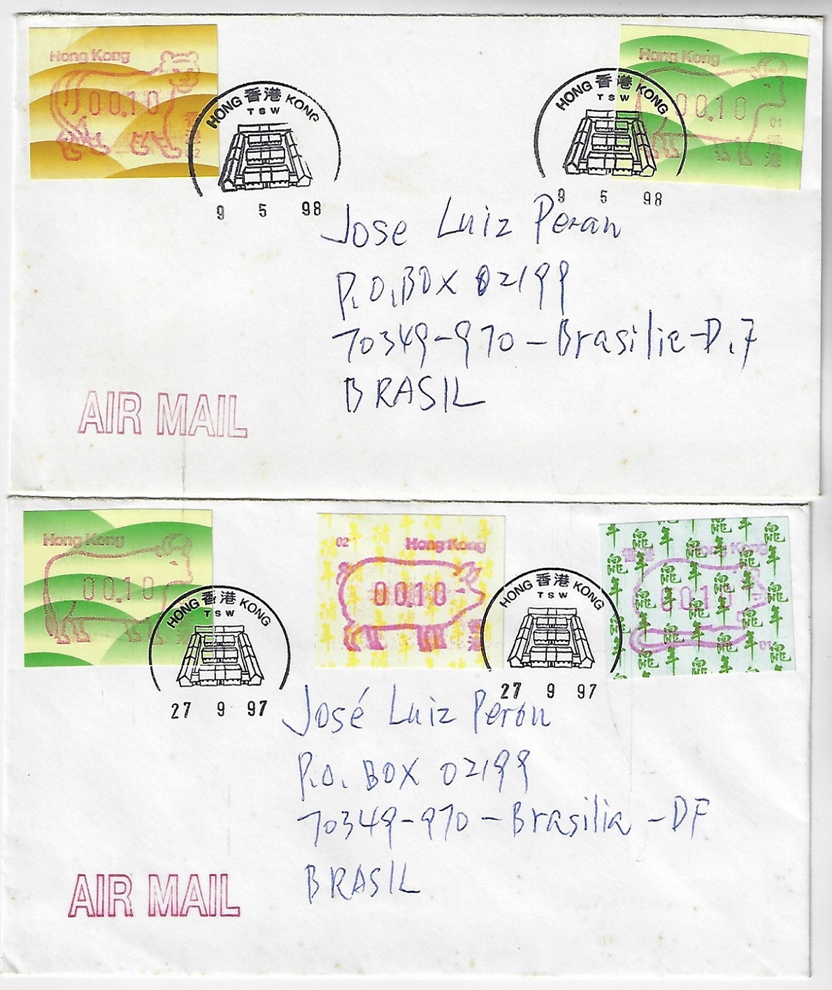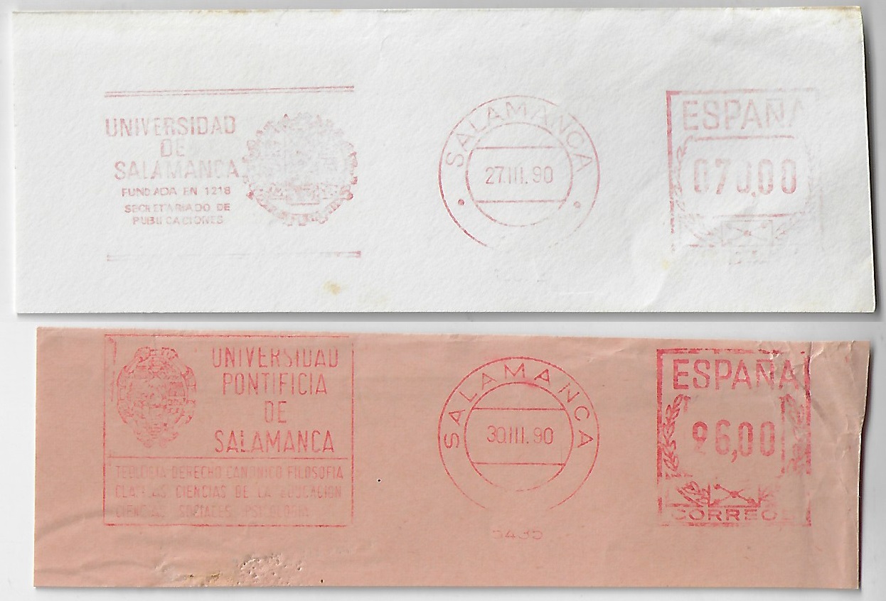 | 80210 | Vaticano, 1995/2003, 2 envelopes porteados com franquias mecânicas diferentes com slogan "Pontificium Consilium Pro Laicis" (Pontifício Concílio para os Leigos) | 20,00 | Foto |