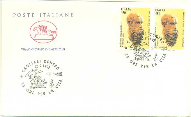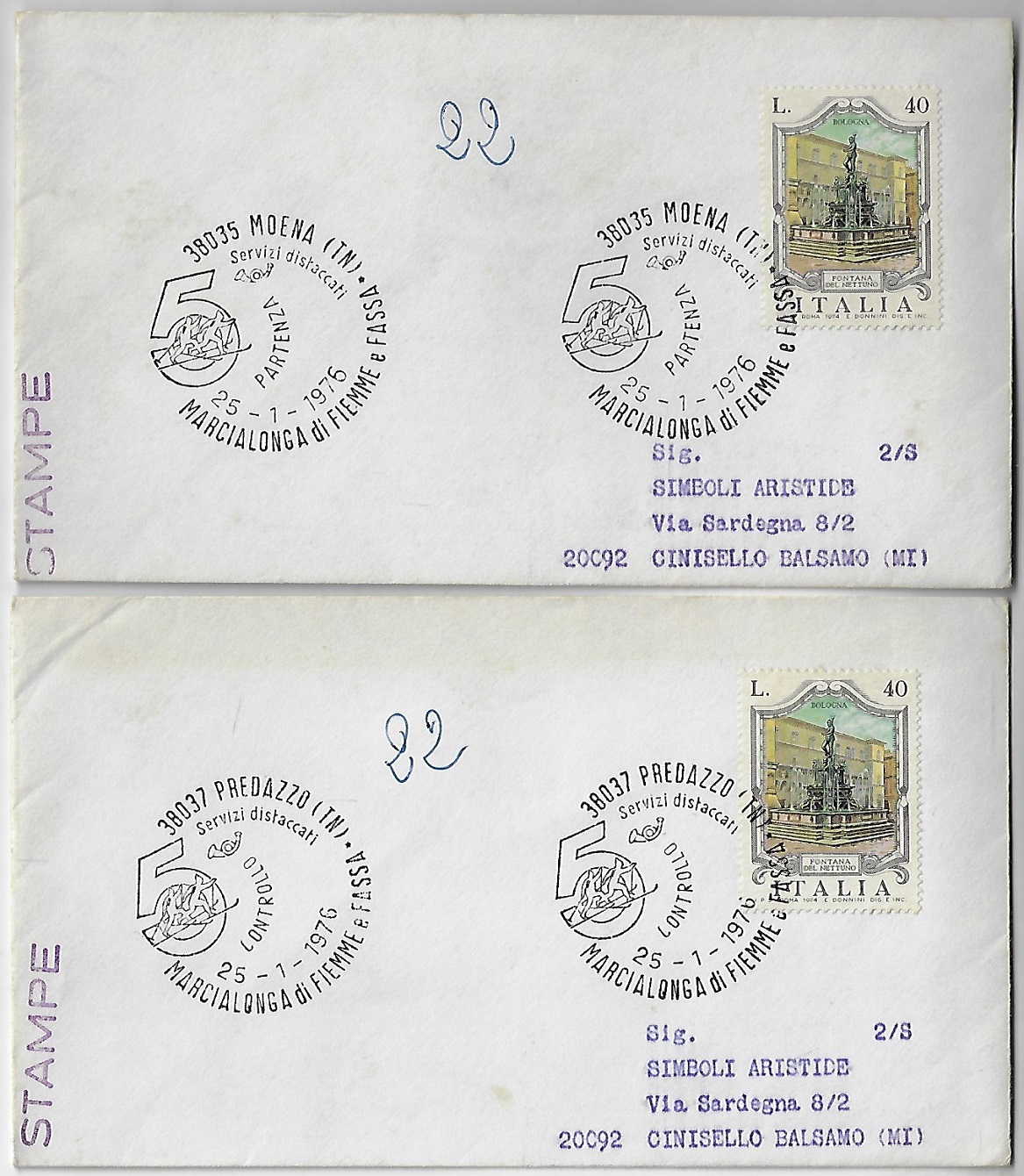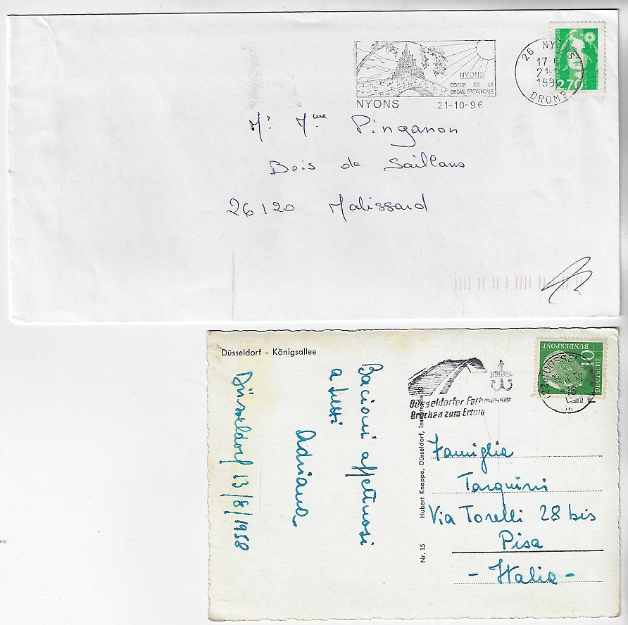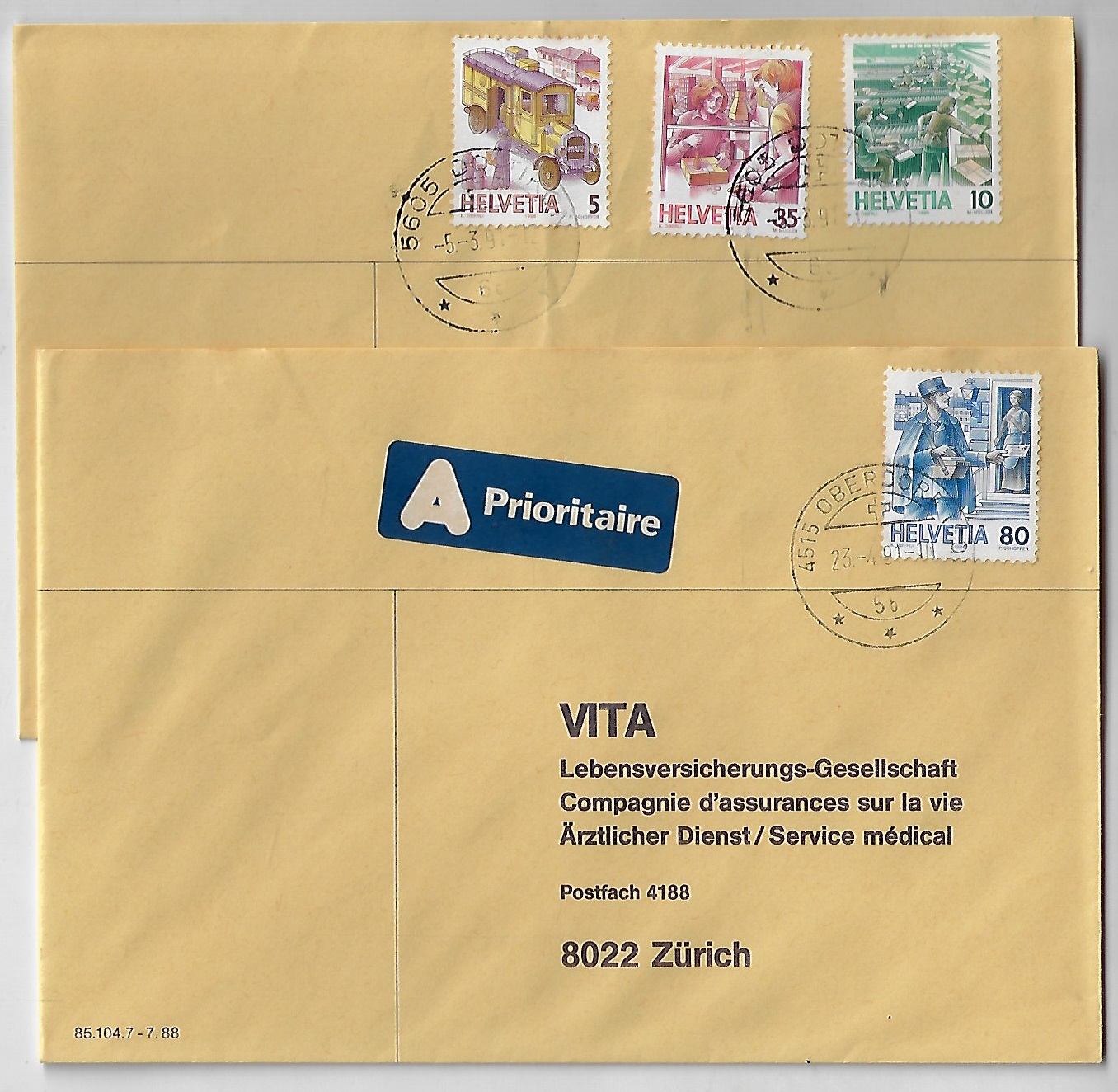 | 80210 | Vaticano, 1995/2003, 2 envelopes porteados com franquias mecânicas diferentes com slogan "Pontificium Consilium Pro Laicis" (Pontifício Concílio para os Leigos) | 20,00 | Foto |