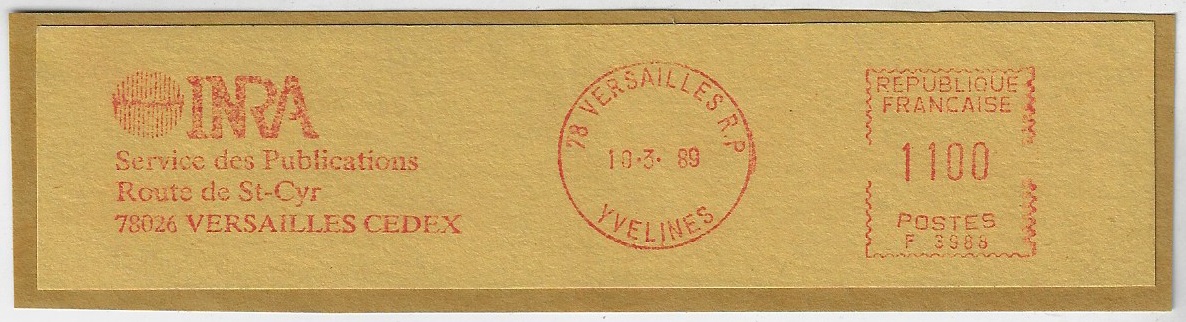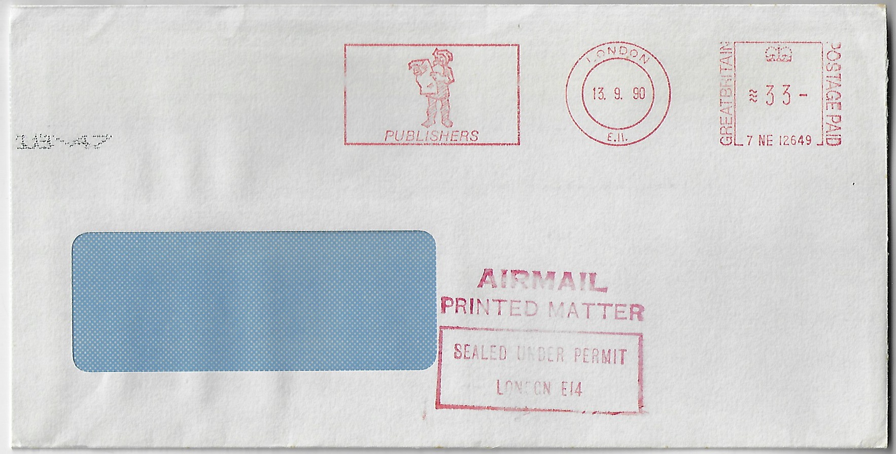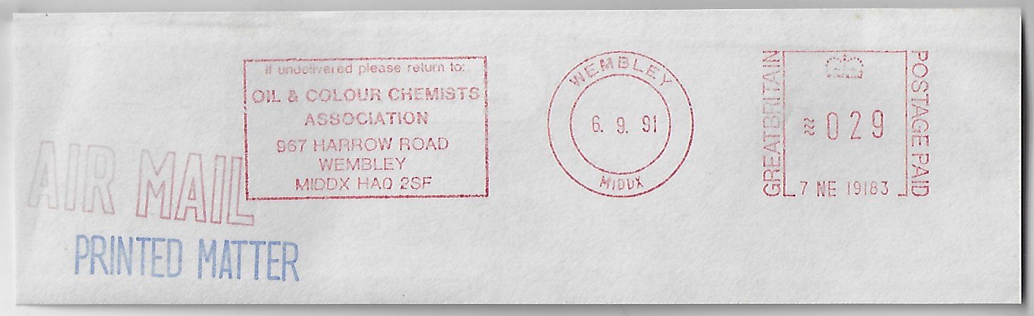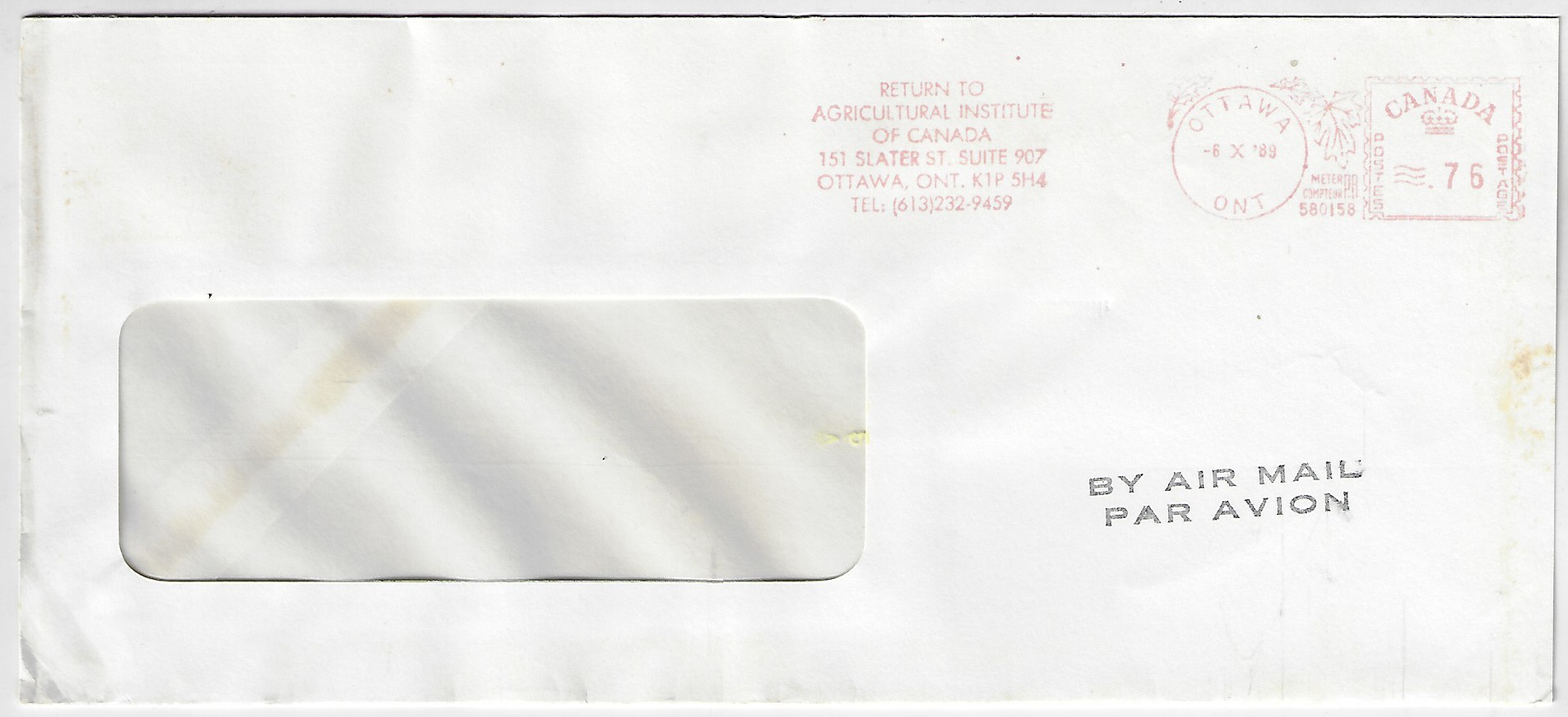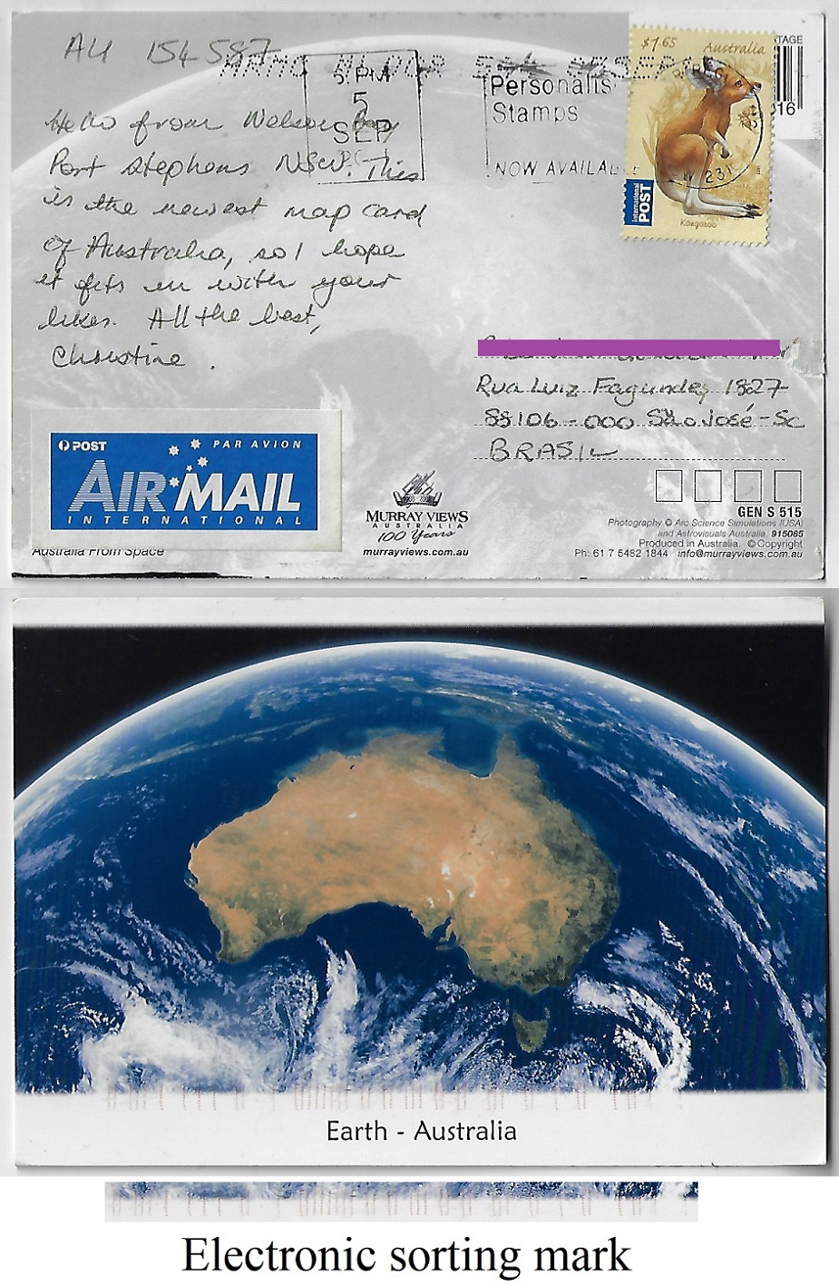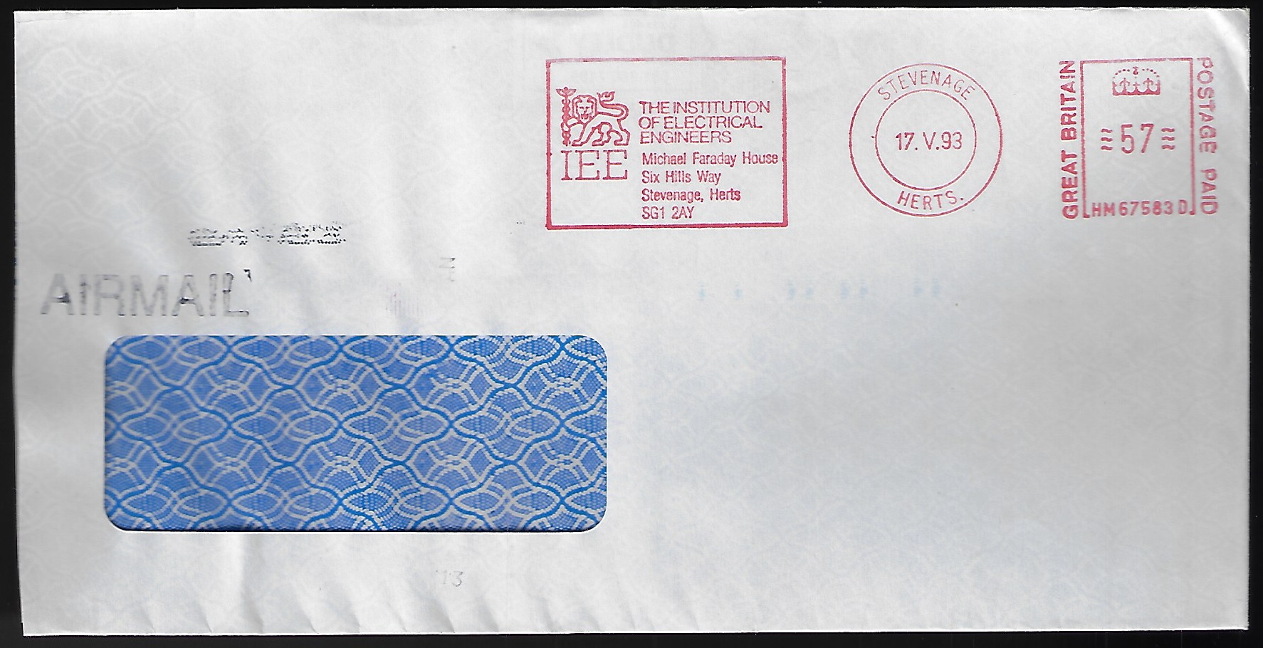| 76309 | África do Sul, 1991, fragmento de envelope aéreo porteado com franquia mecânica Pitney Bowes-GB “5000” com slogan "Diretor de informações agrícolas", de Pretoria | 10,00 | Foto |