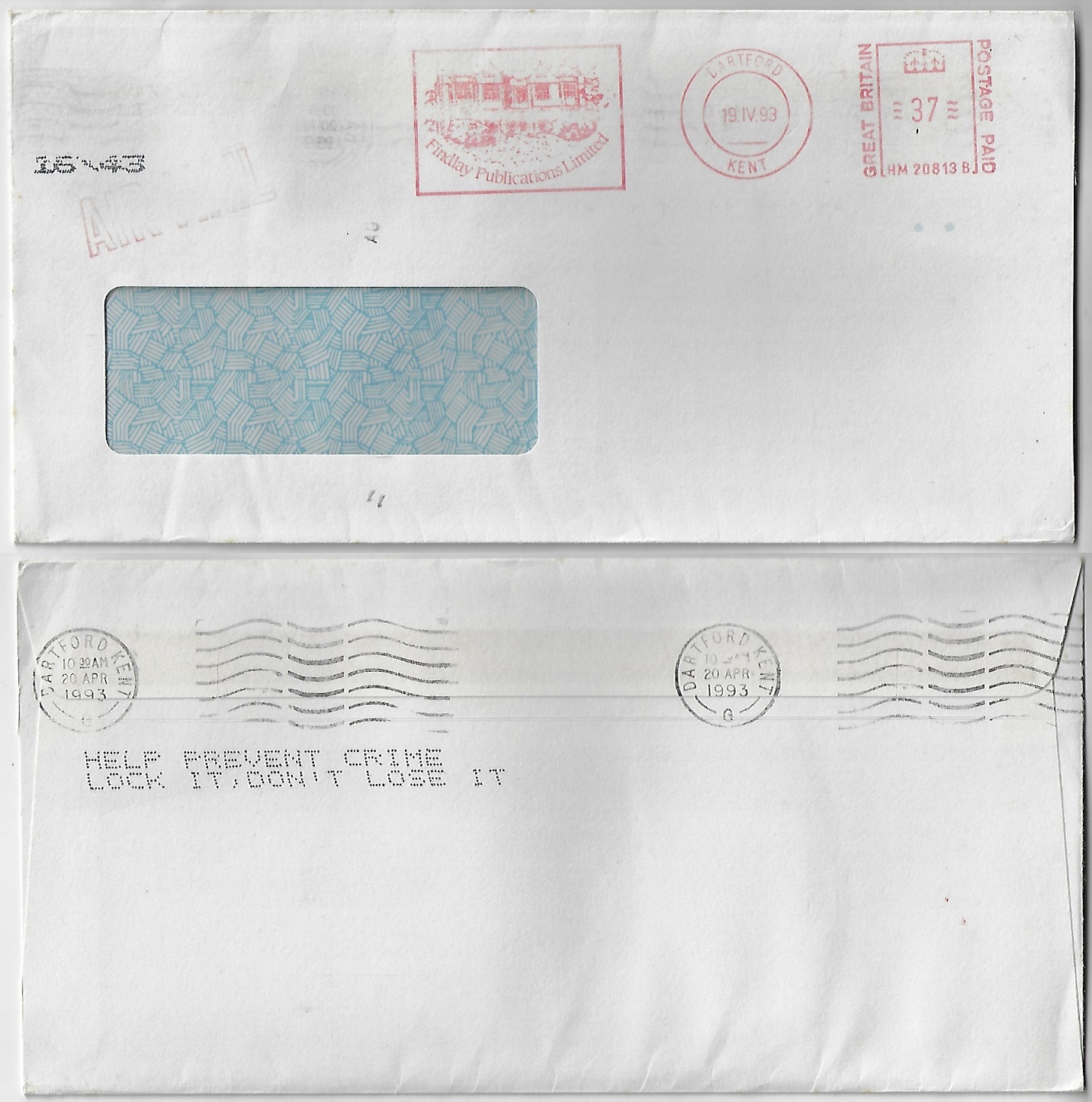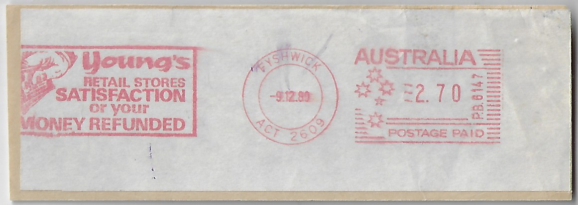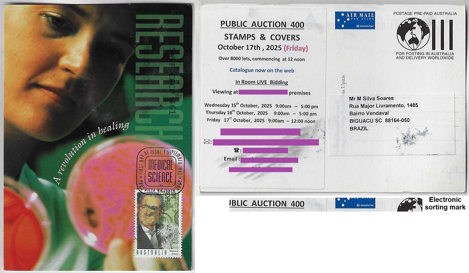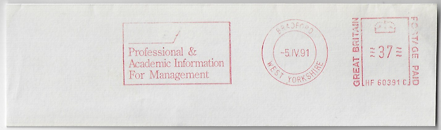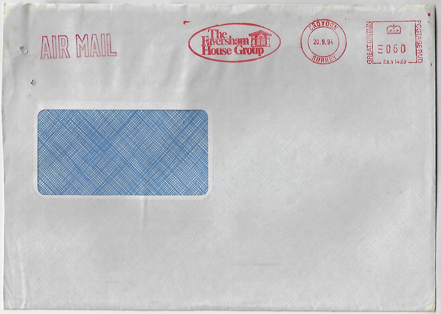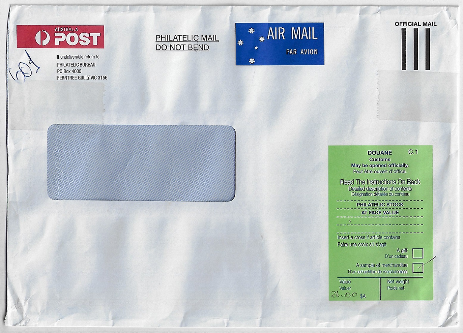 | 76309 | África do Sul, 1991, fragmento de envelope aéreo porteado com franquia mecânica Pitney Bowes-GB “5000” com slogan "Diretor de informações agrícolas", de Pretoria | 10,00 | Foto |