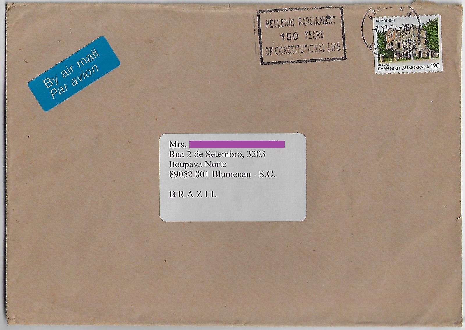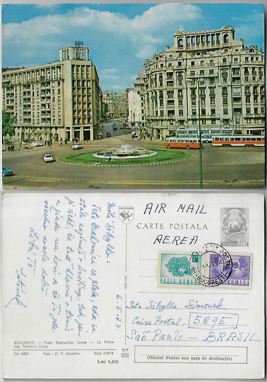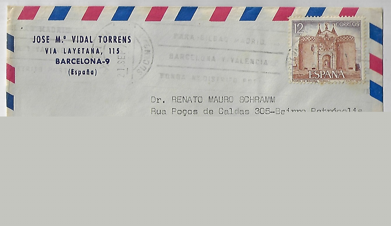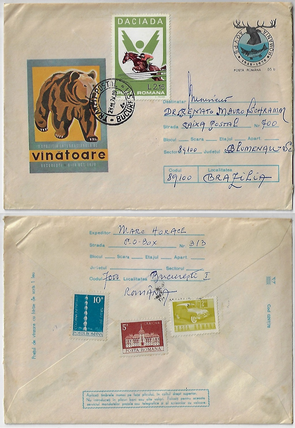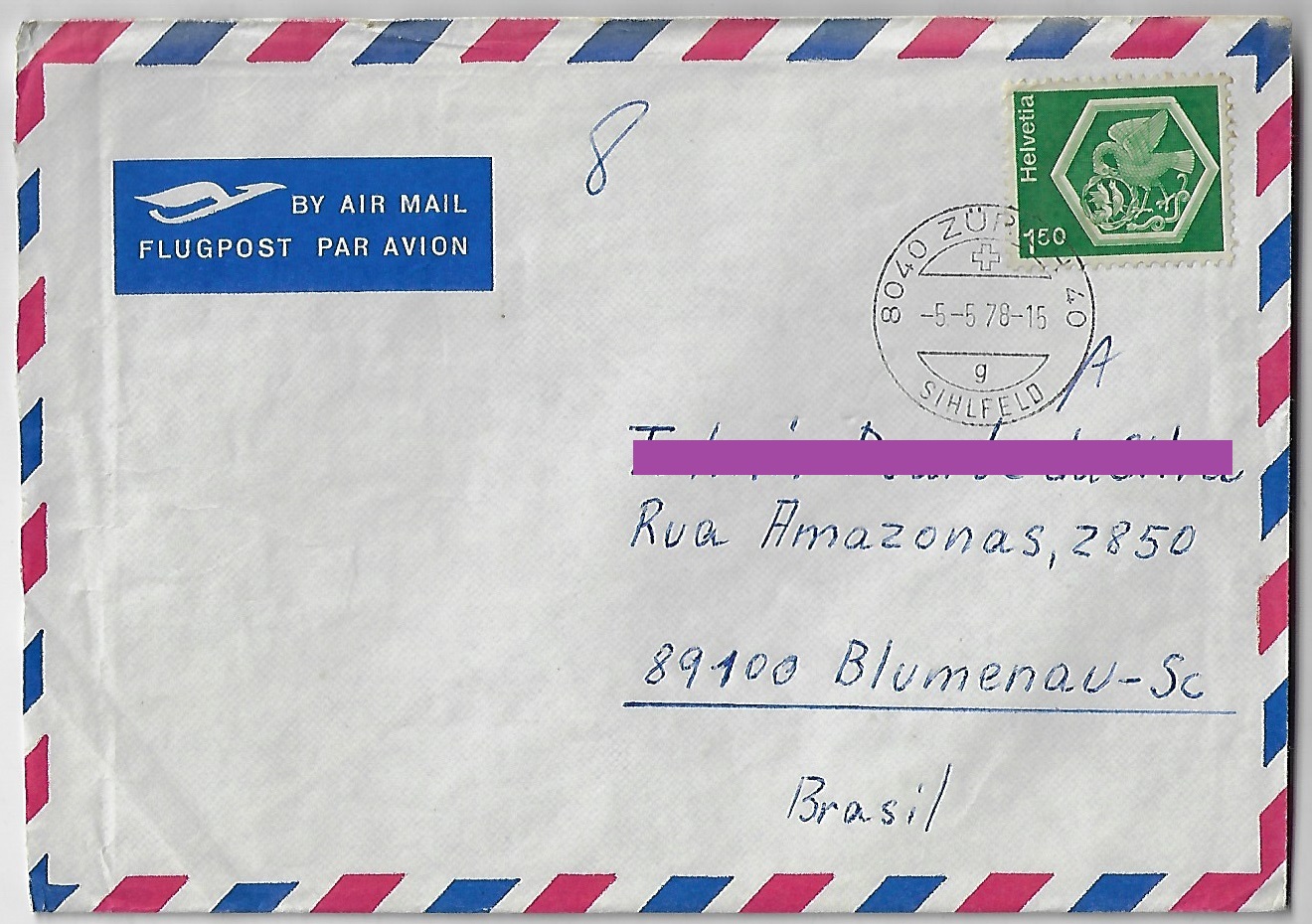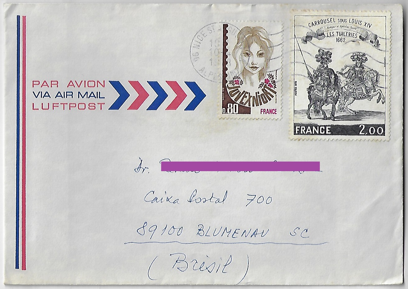 | 80645 | Argentina, 1970s, envelope aéreo de Buenos Aires para Blumenau porteado com 3 selos obliterados com carimbo rotativo "Primeiro Trem da República Argentina" | 10,00 | Foto |