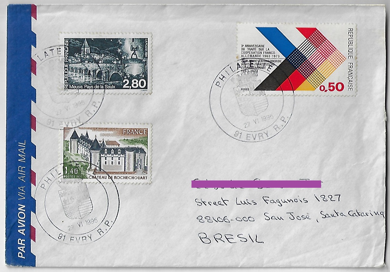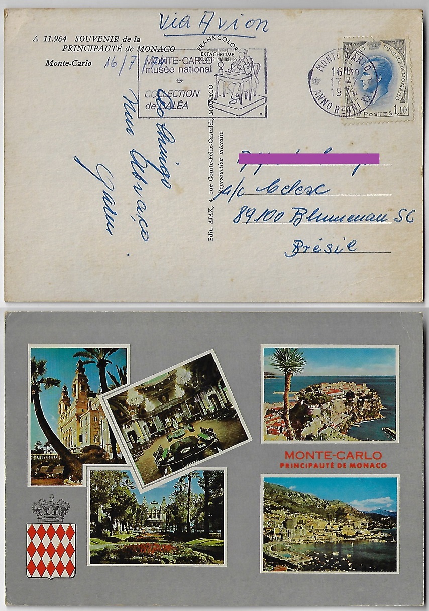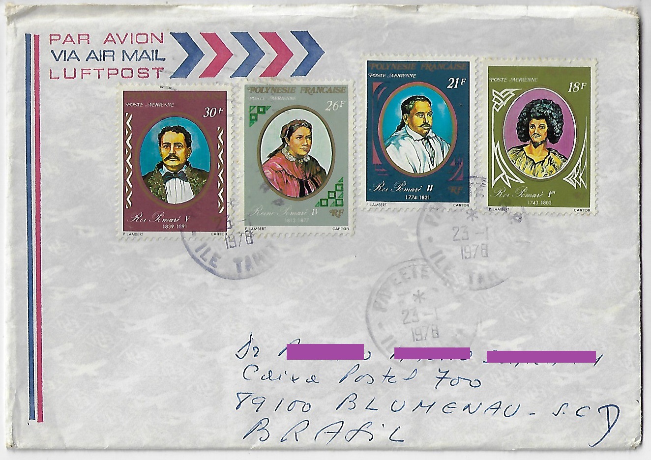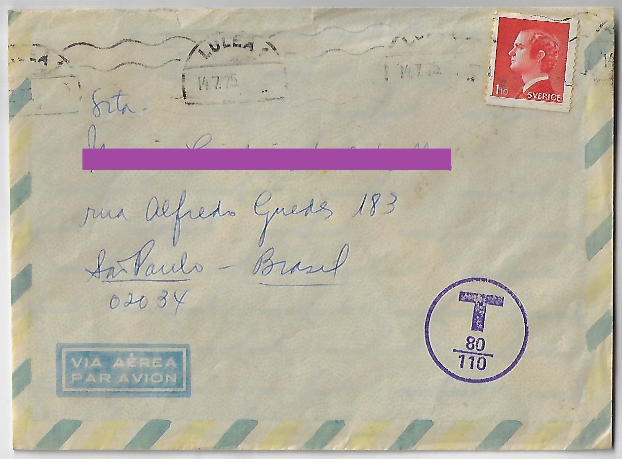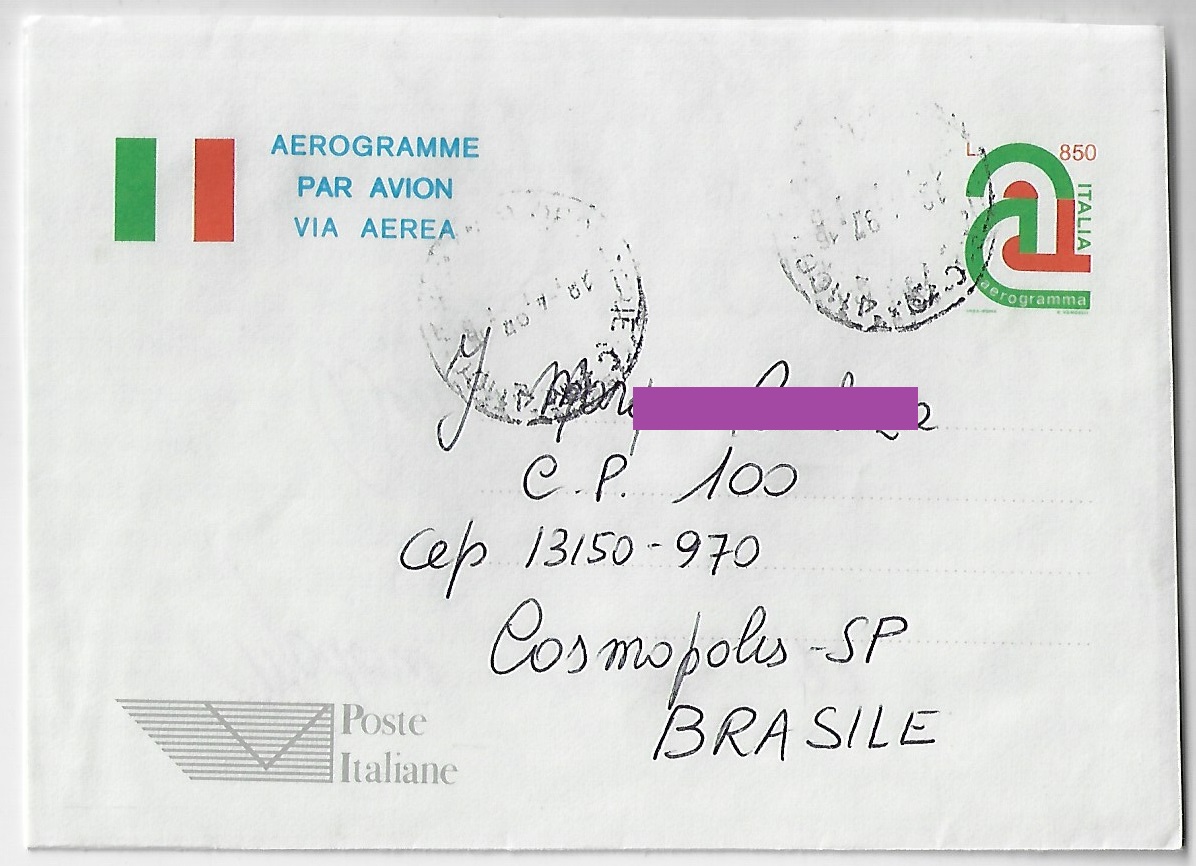 | 80645 | Argentina, 1970s, envelope aéreo de Buenos Aires para Blumenau porteado com 3 selos obliterados com carimbo rotativo "Primeiro Trem da República Argentina" | 10,00 | Foto |