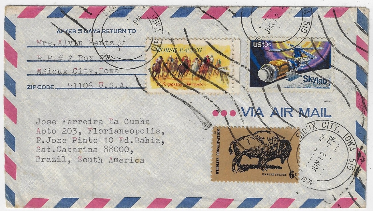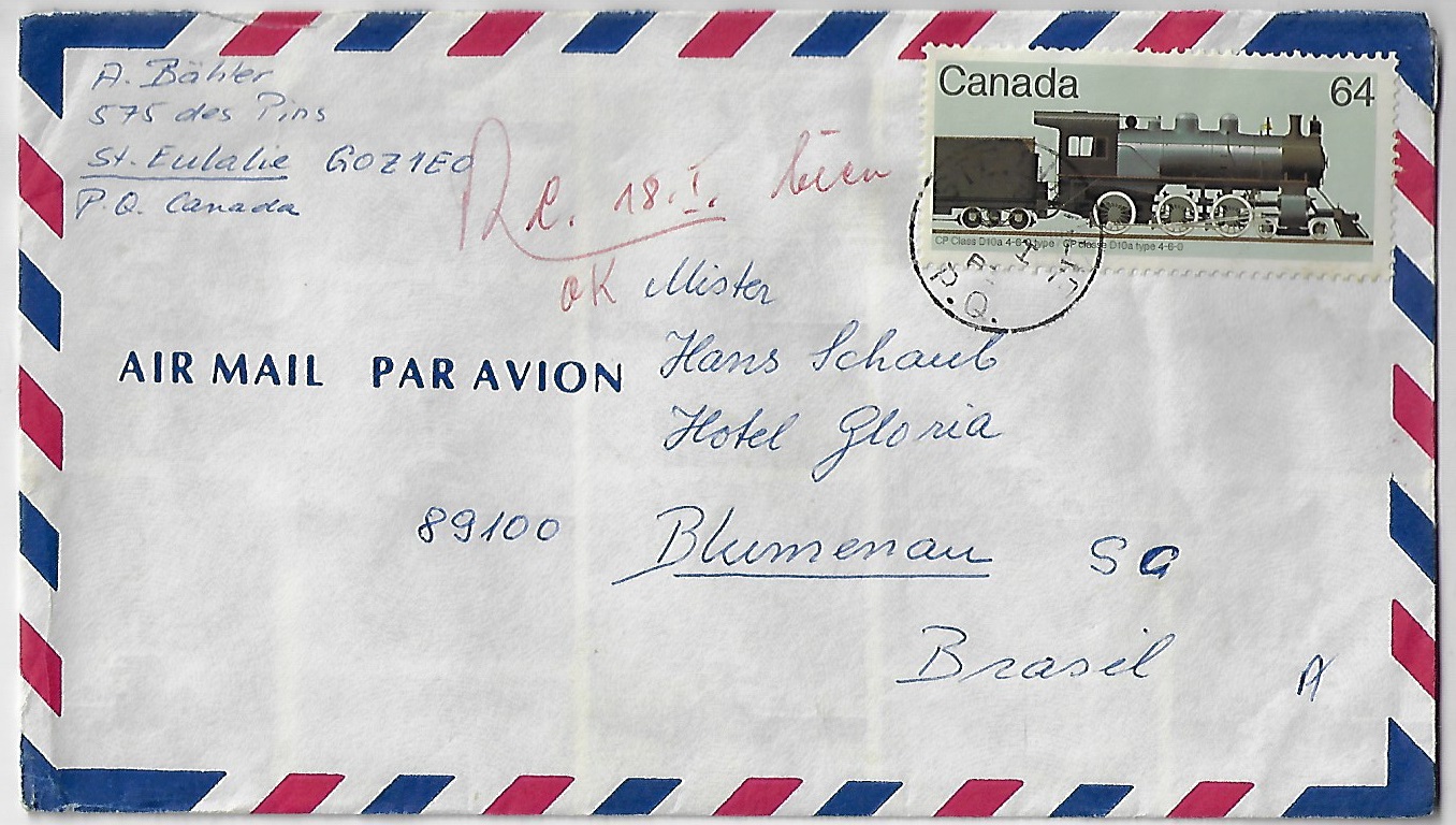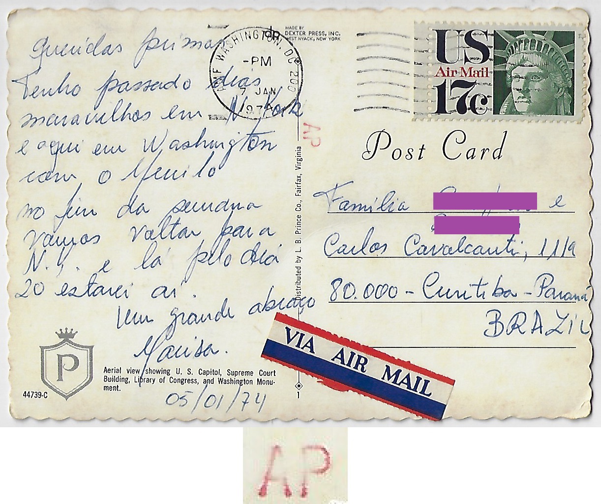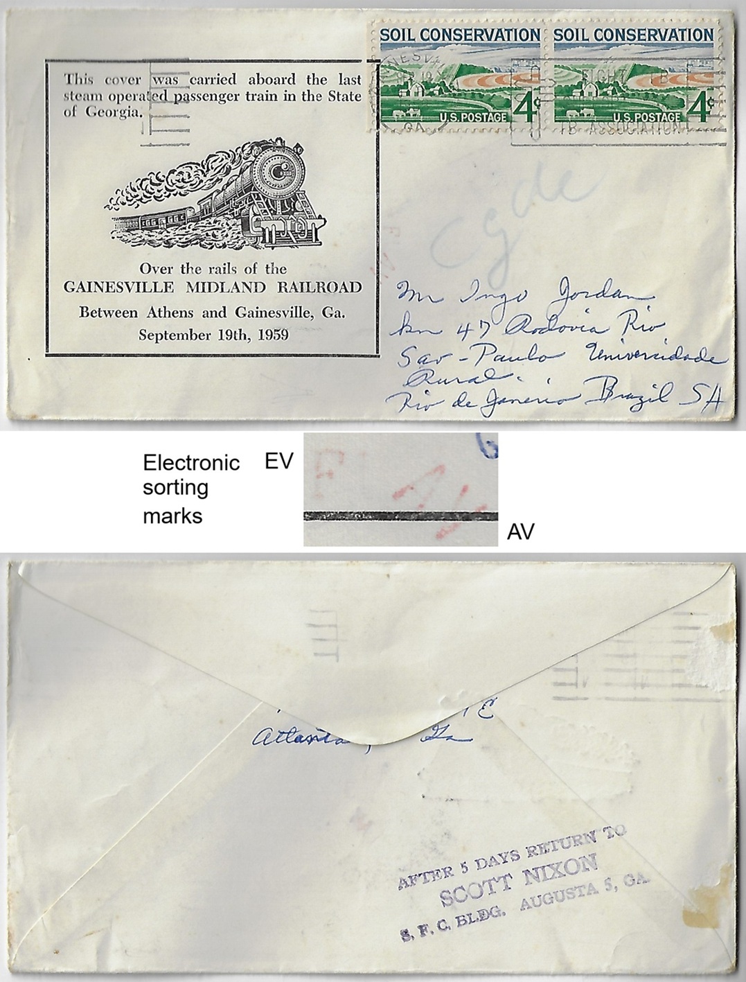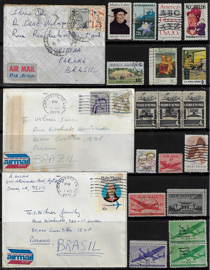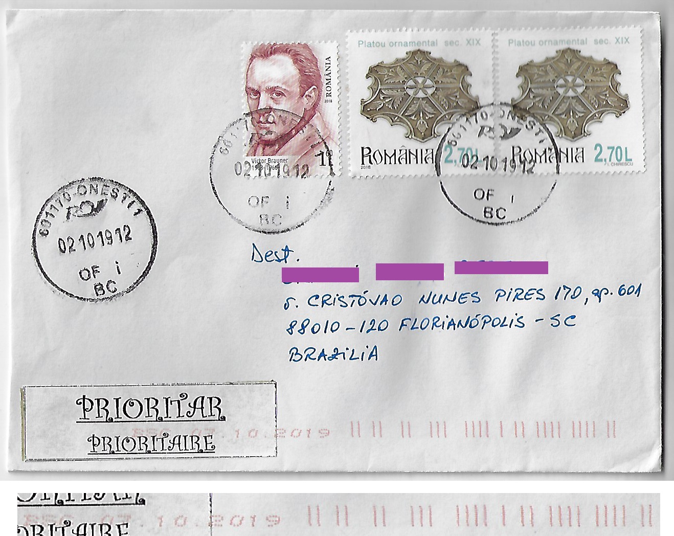 | 80645 | Argentina, 1970s, envelope aéreo de Buenos Aires para Blumenau porteado com 3 selos obliterados com carimbo rotativo "Primeiro Trem da República Argentina" | 10,00 | Foto |