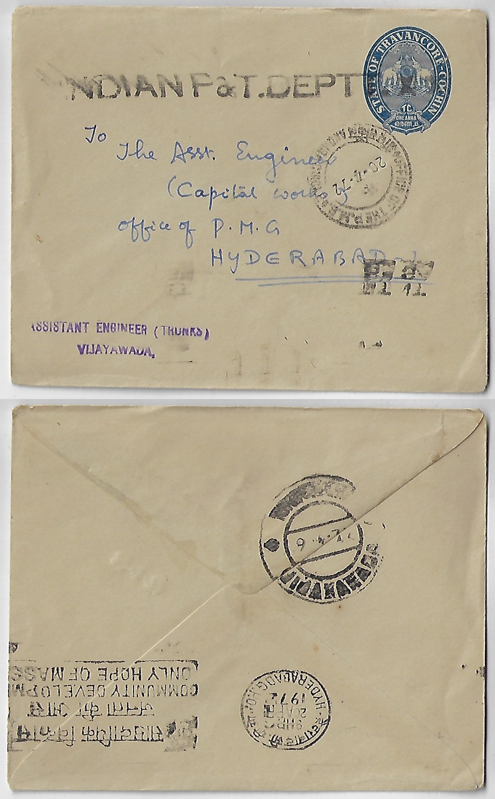 | 80880 | África do Sul, 1932, envelope comercial enviado de Capetown (20/12) para Blumenau (3/1), porteado com 3 selos | 10,00 | Foto |