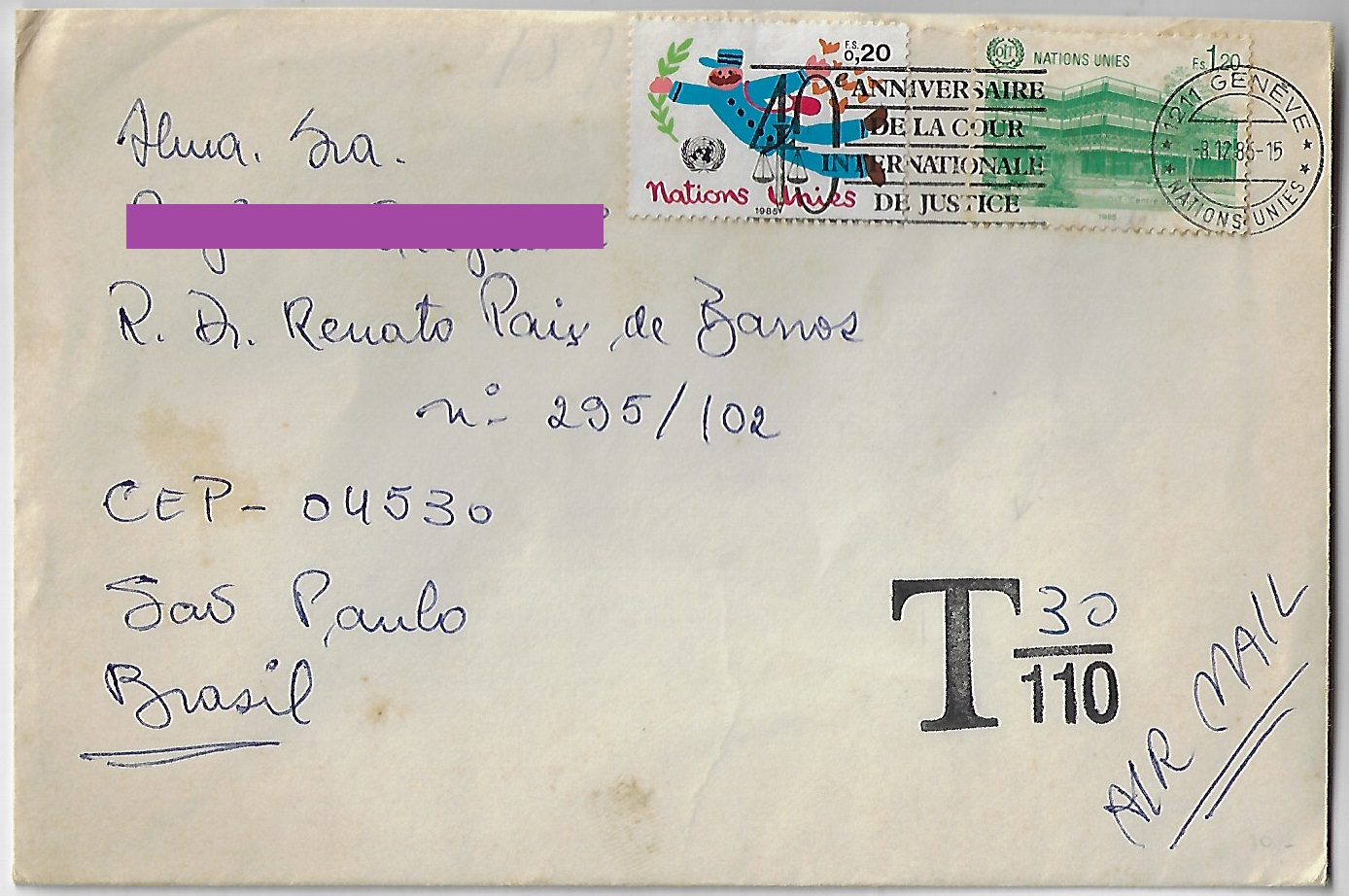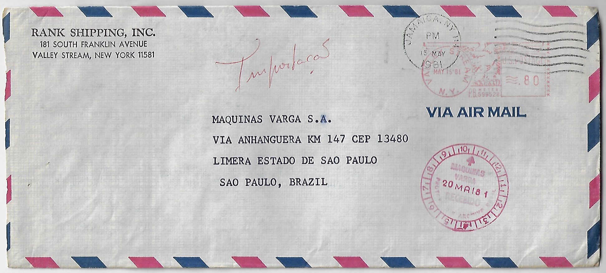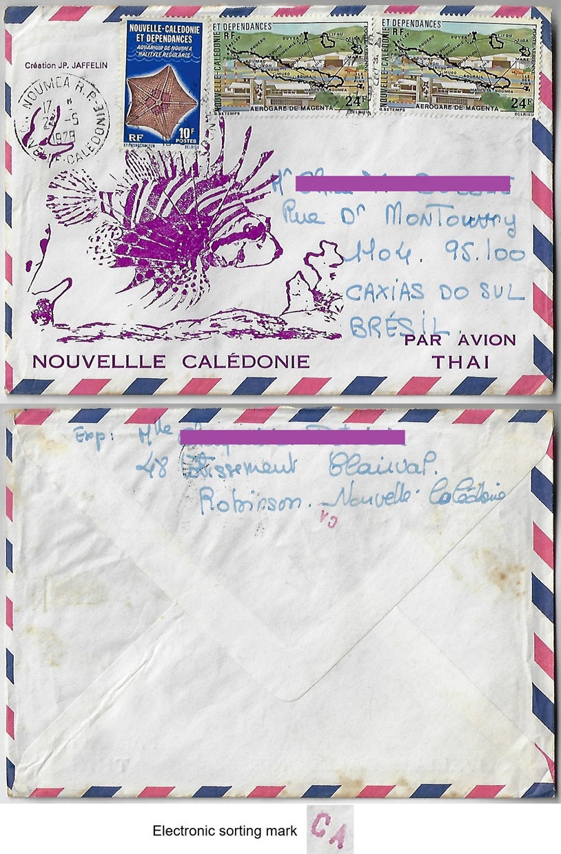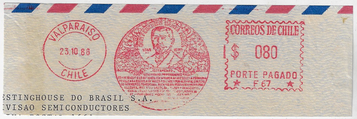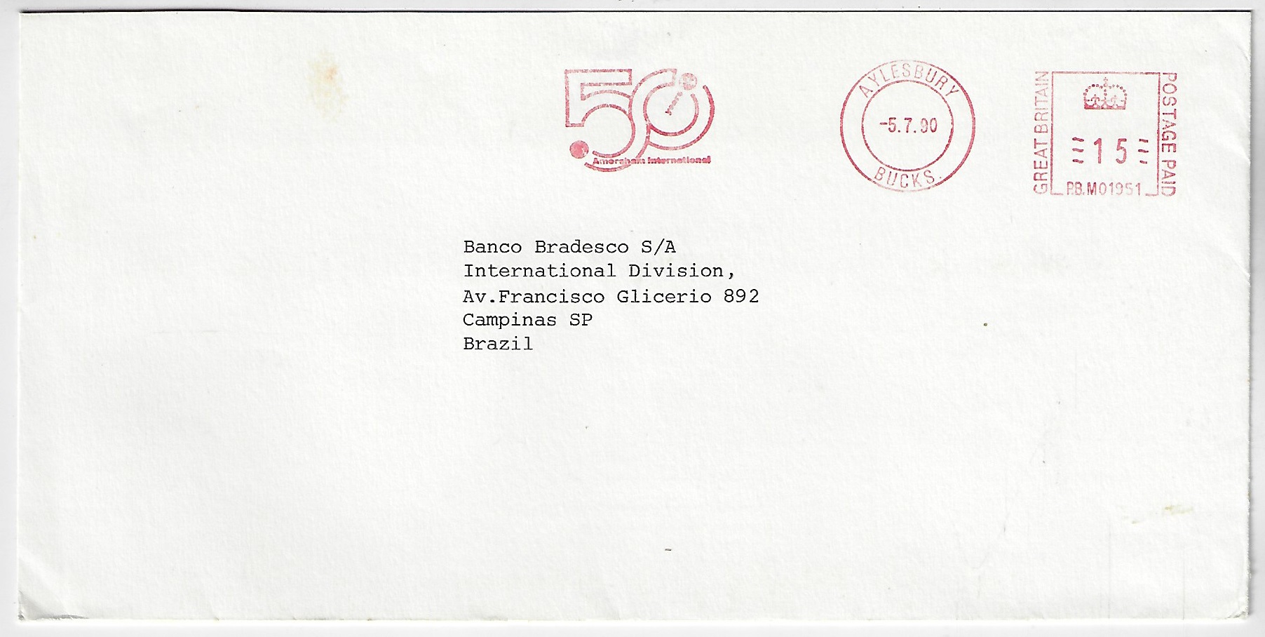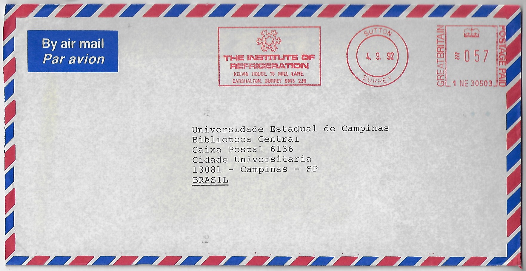 | 79678 | África do Sul, 1979, envelope aéreo enviado de Eppingust (13/7) para São Paulo, porteado com franquia mecânica Roneo Neopost "205/2205" com slogan Barclays National Bank Ltd | 10,00 | Foto |