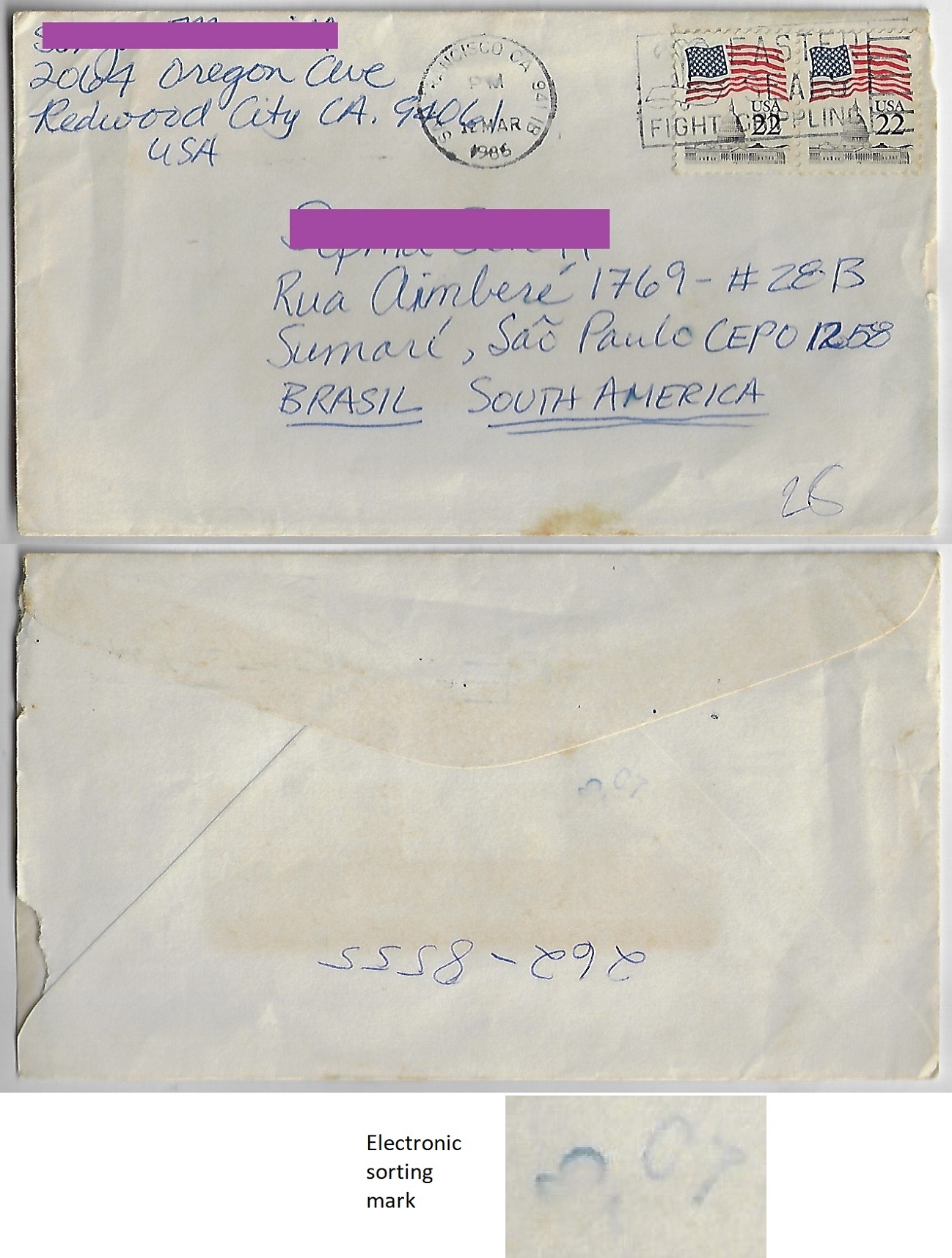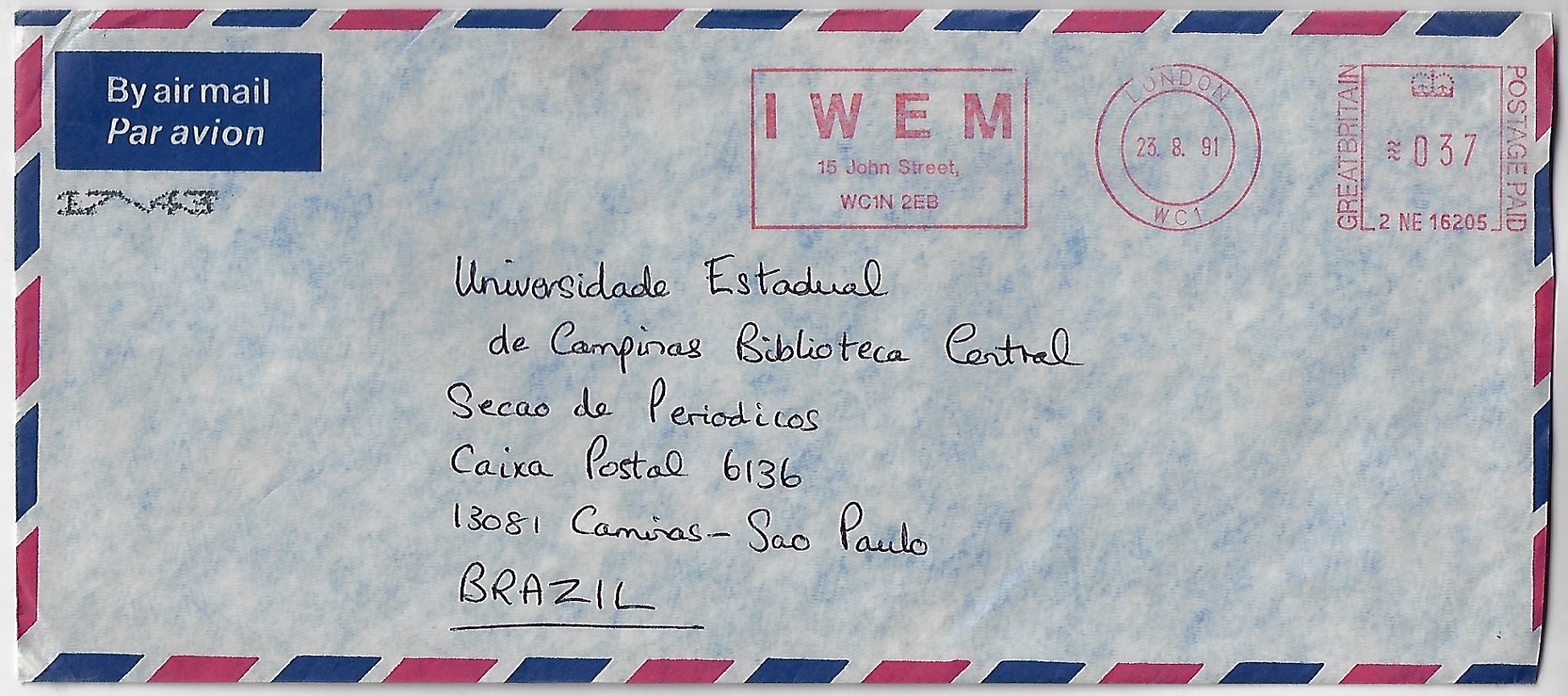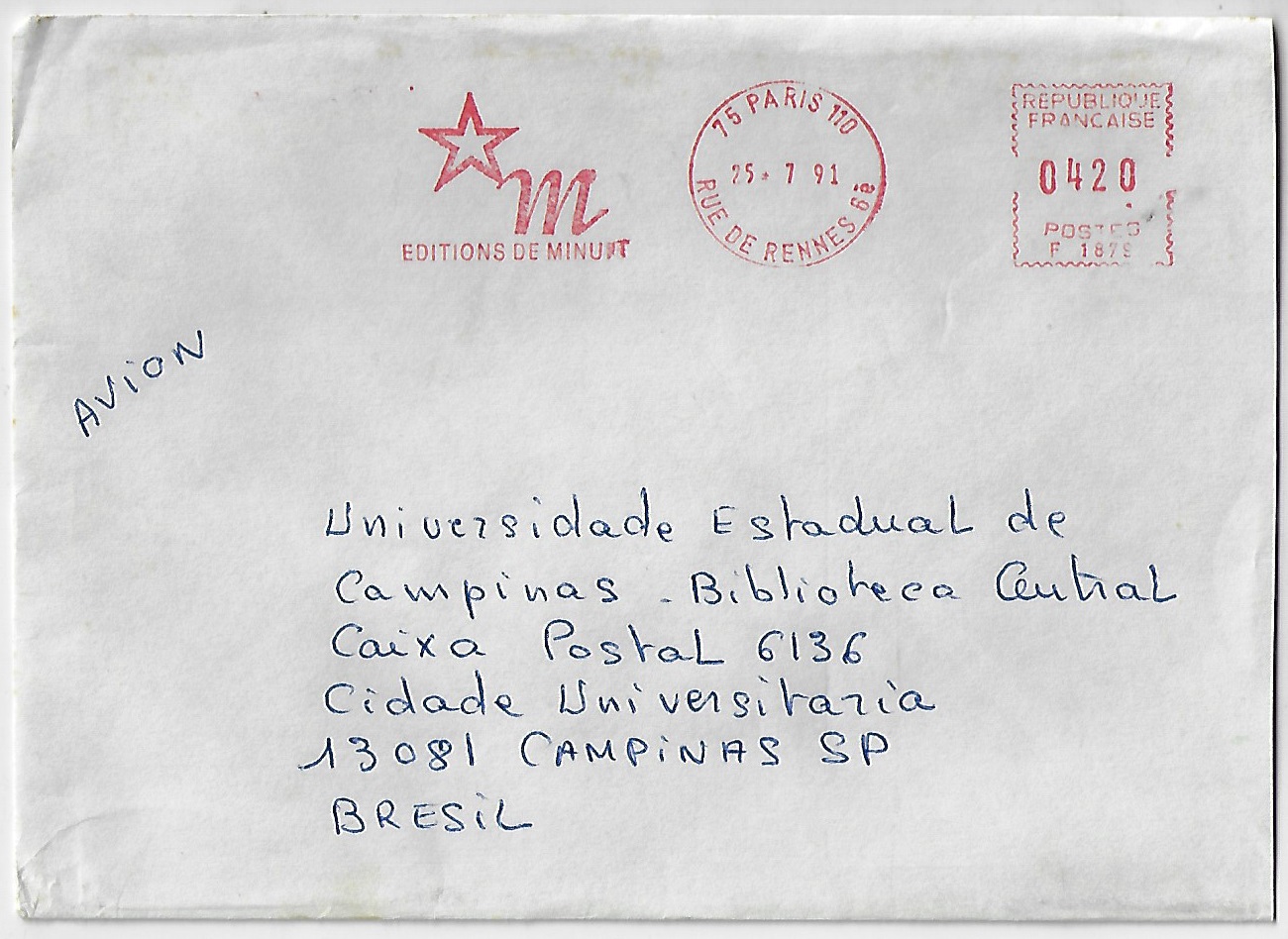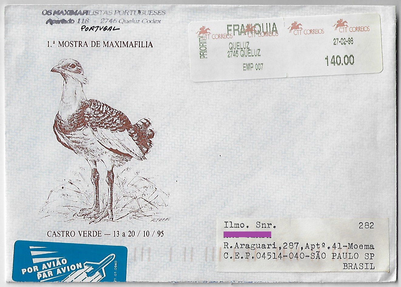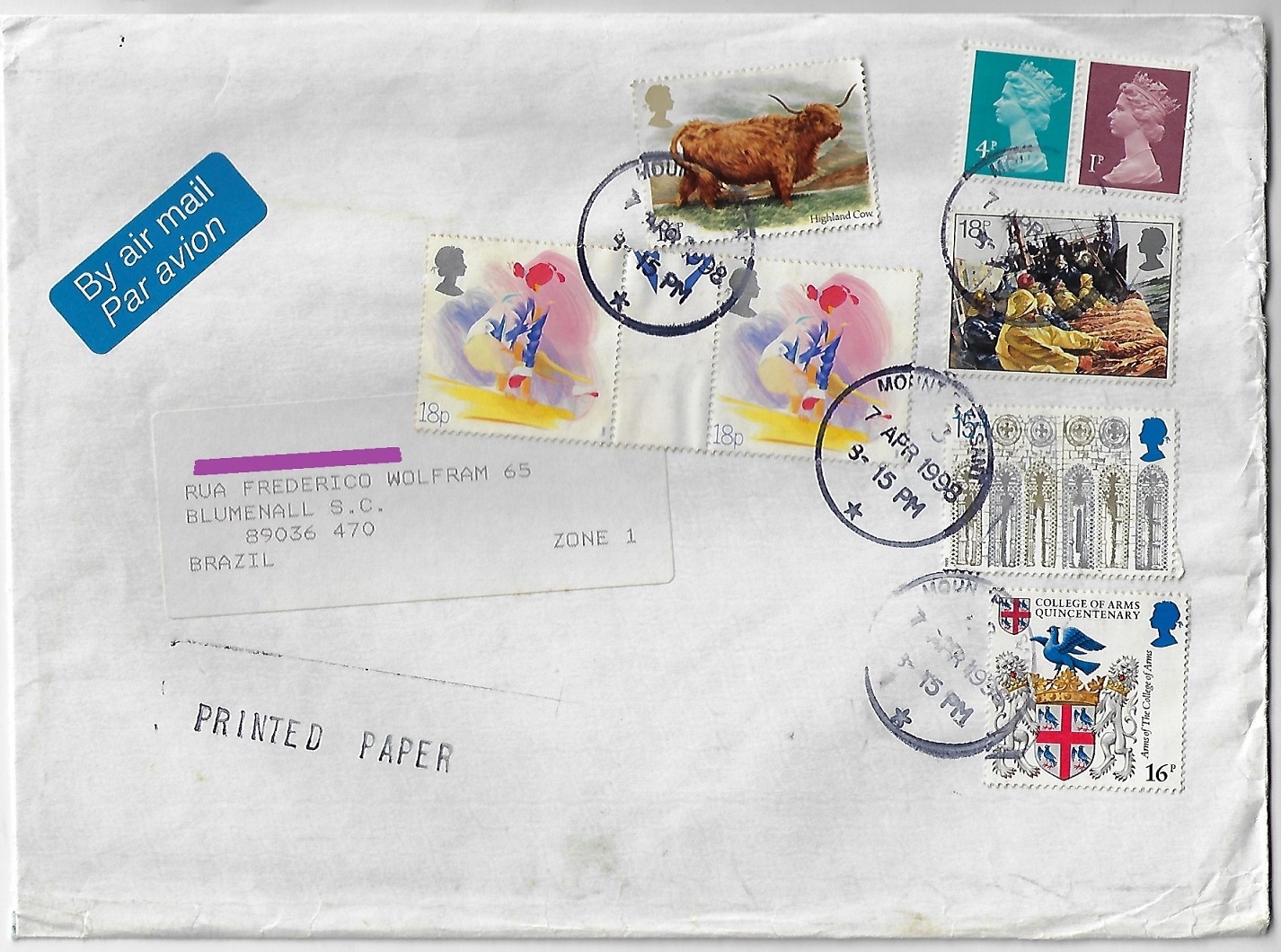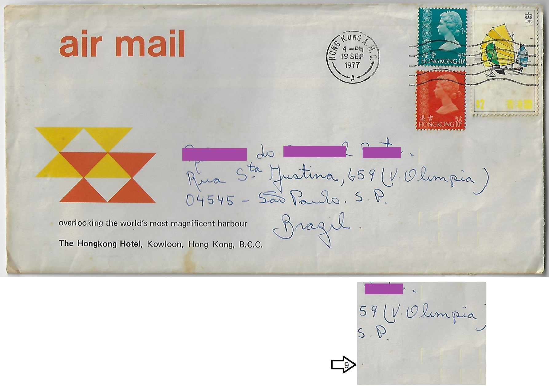 | 79678 | África do Sul, 1979, envelope aéreo enviado de Eppingust (13/7) para São Paulo, porteado com franquia mecânica Roneo Neopost "205/2205" com slogan Barclays National Bank Ltd | 10,00 | Foto |