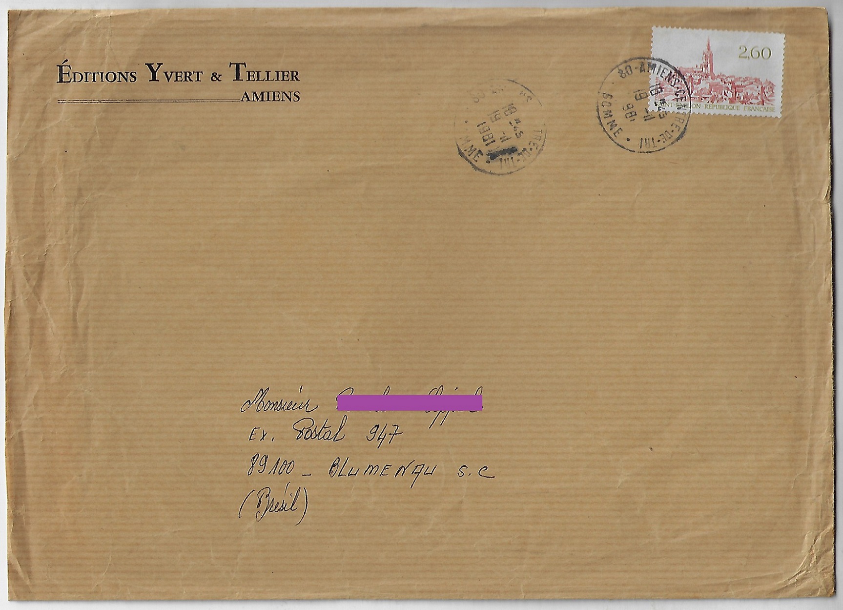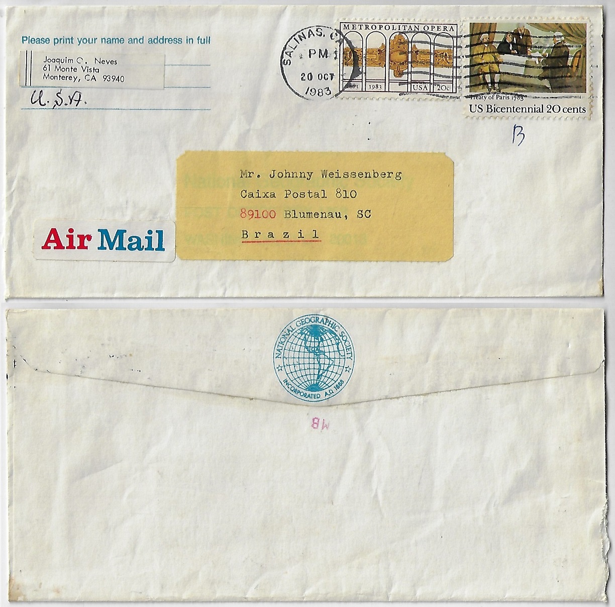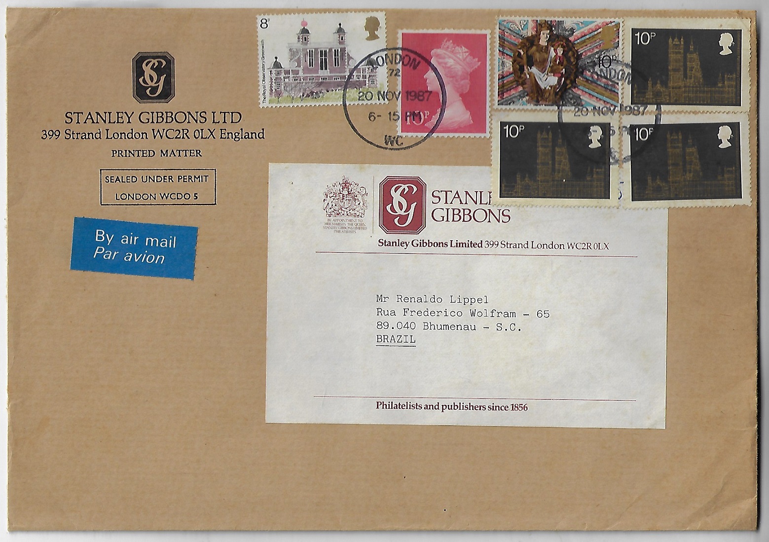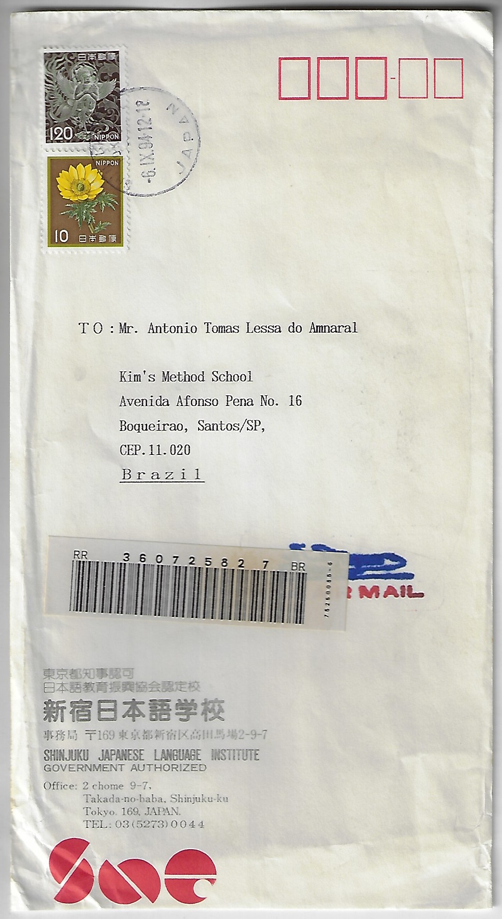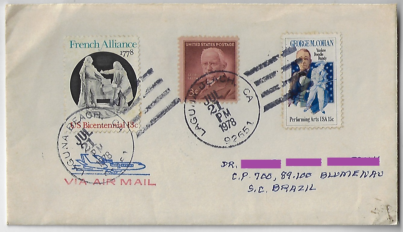 | 79678 | África do Sul, 1979, envelope aéreo enviado de Eppingust (13/7) para São Paulo, porteado com franquia mecânica Roneo Neopost "205/2205" com slogan Barclays National Bank Ltd | 10,00 | Foto |