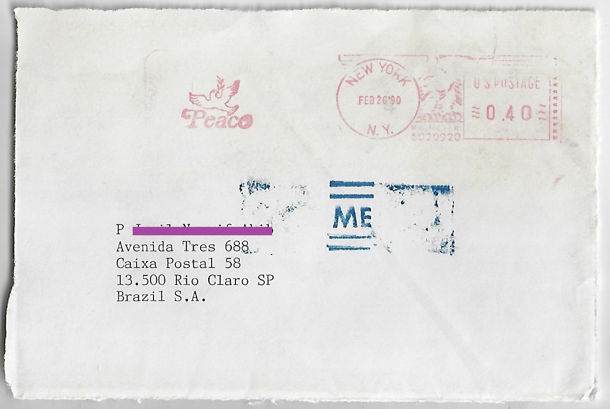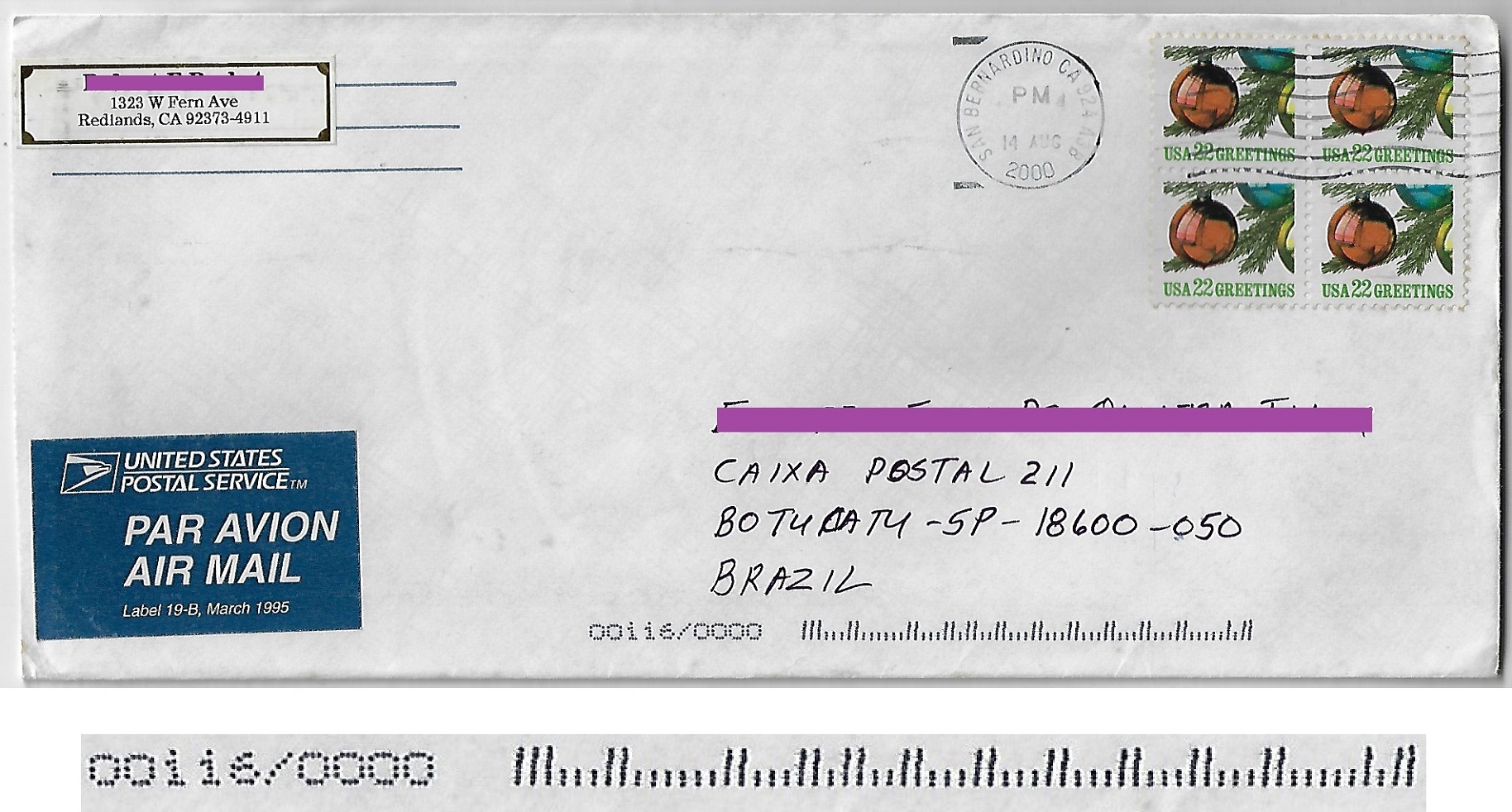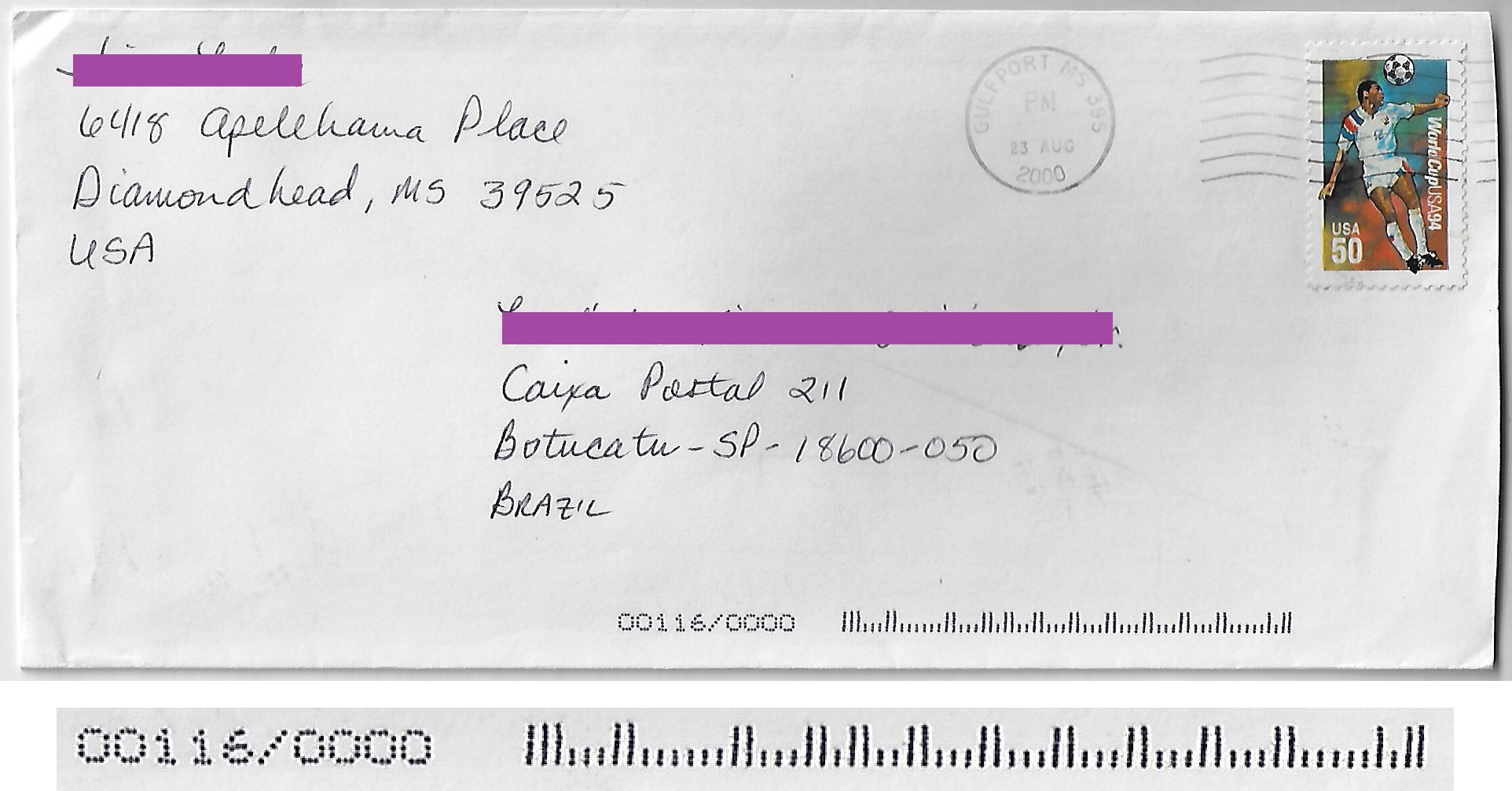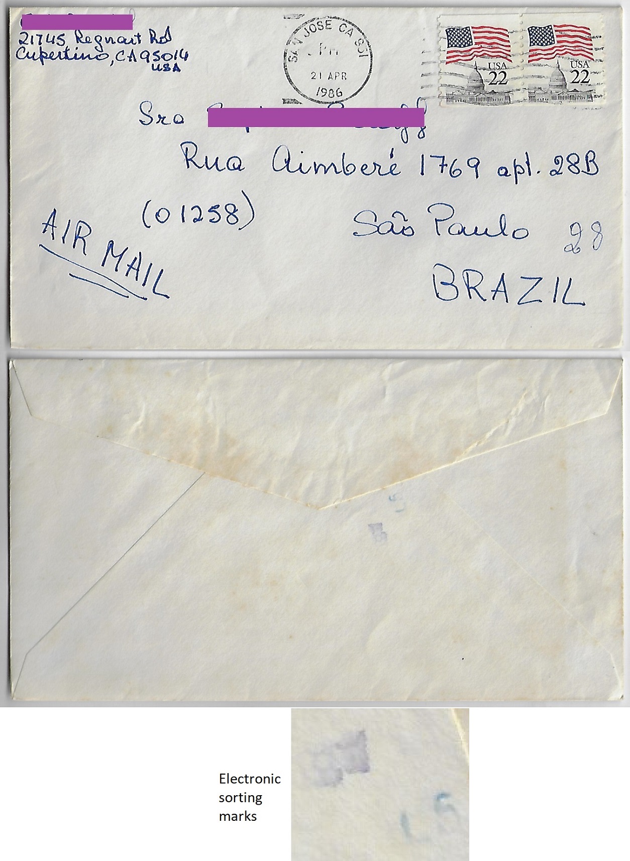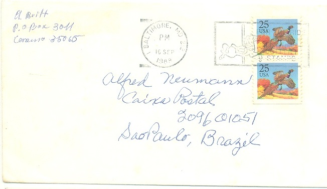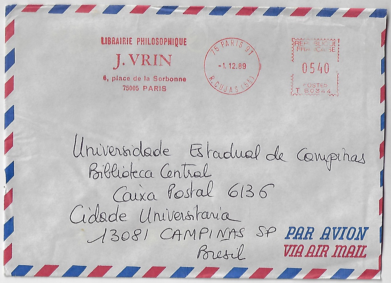 | 79678 | África do Sul, 1979, envelope aéreo enviado de Eppingust (13/7) para São Paulo, porteado com franquia mecânica Roneo Neopost "205/2205" com slogan Barclays National Bank Ltd | 10,00 | Foto |