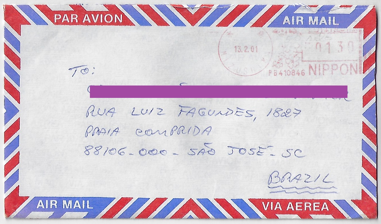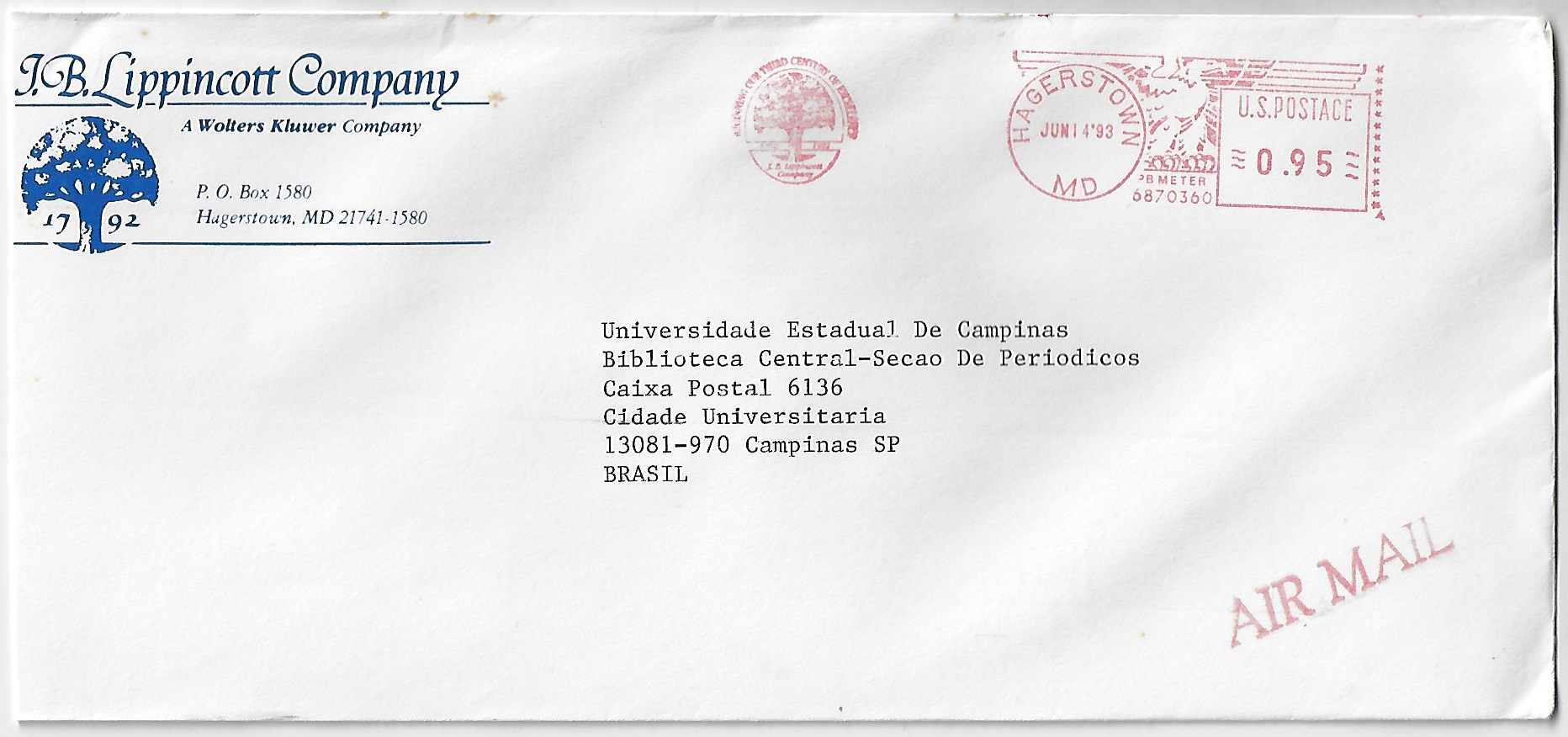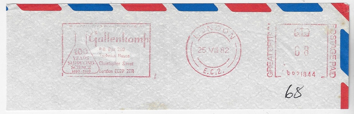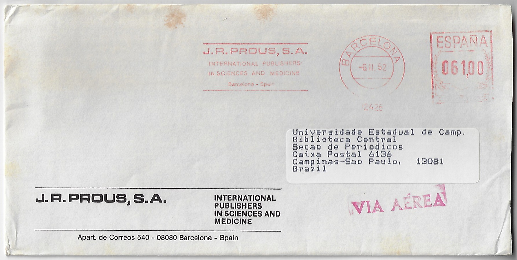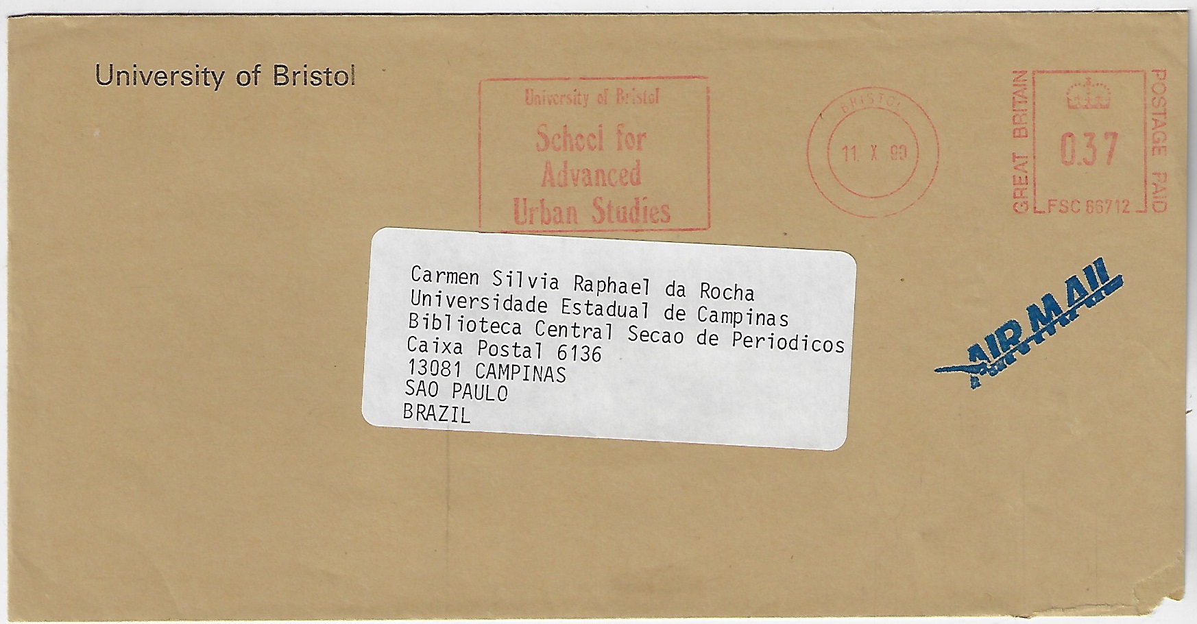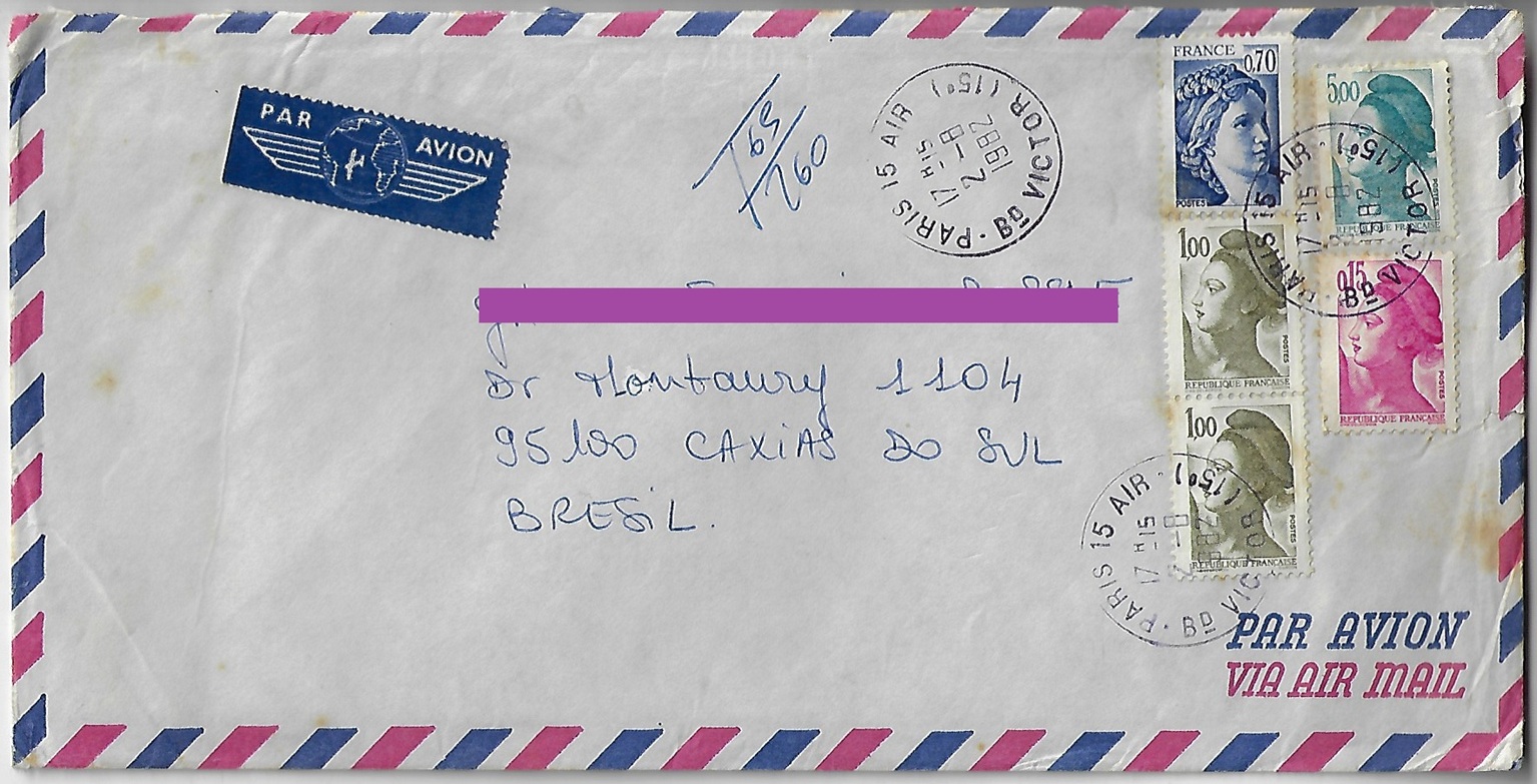 | 79678 | África do Sul, 1979, envelope aéreo enviado de Eppingust (13/7) para São Paulo, porteado com franquia mecânica Roneo Neopost "205/2205" com slogan Barclays National Bank Ltd | 10,00 | Foto |