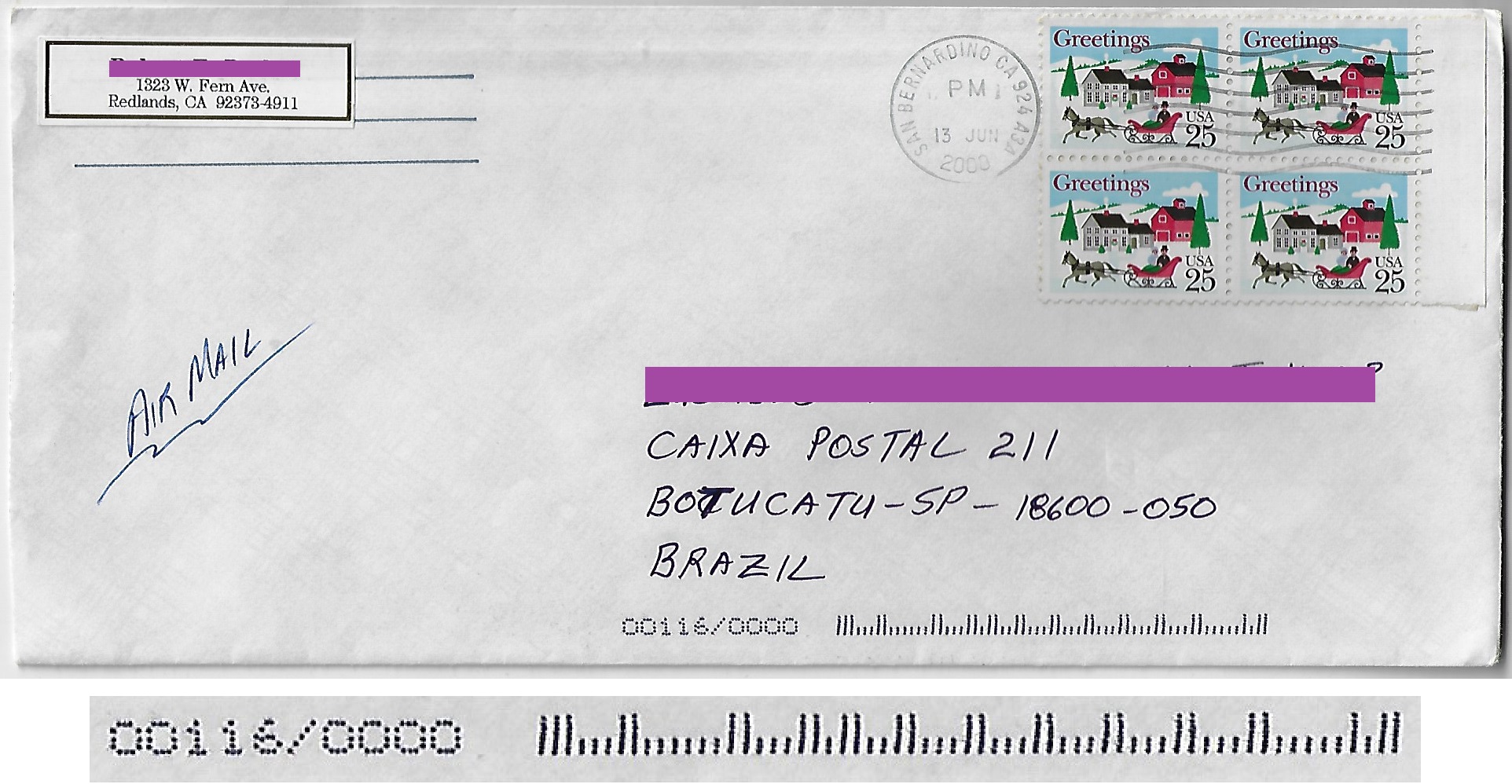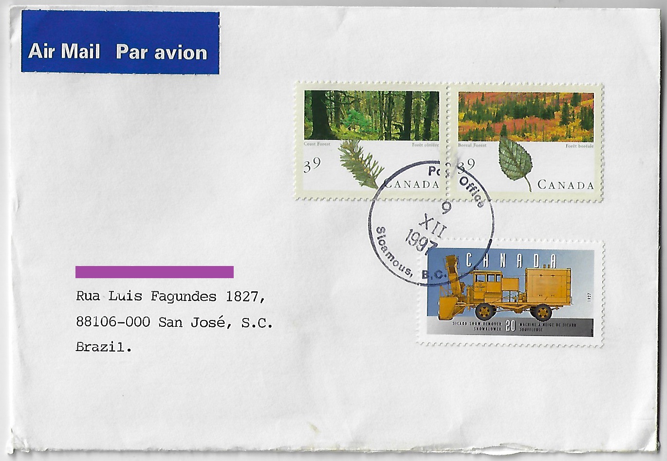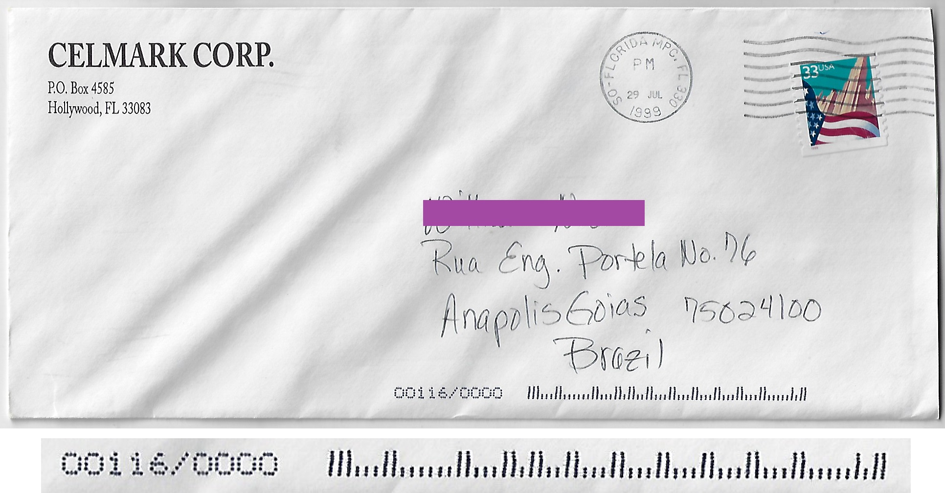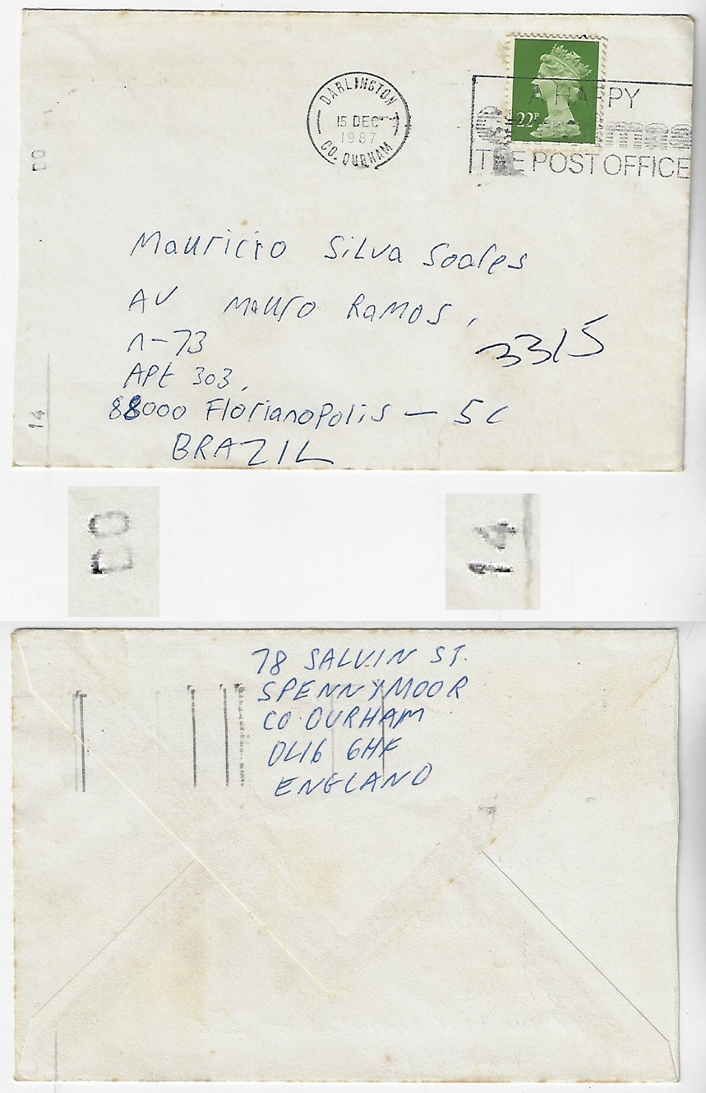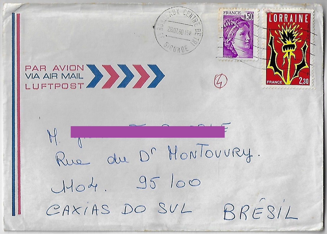 | 79678 | África do Sul, 1979, envelope aéreo enviado de Eppingust (13/7) para São Paulo, porteado com franquia mecânica Roneo Neopost "205/2205" com slogan Barclays National Bank Ltd | 10,00 | Foto |