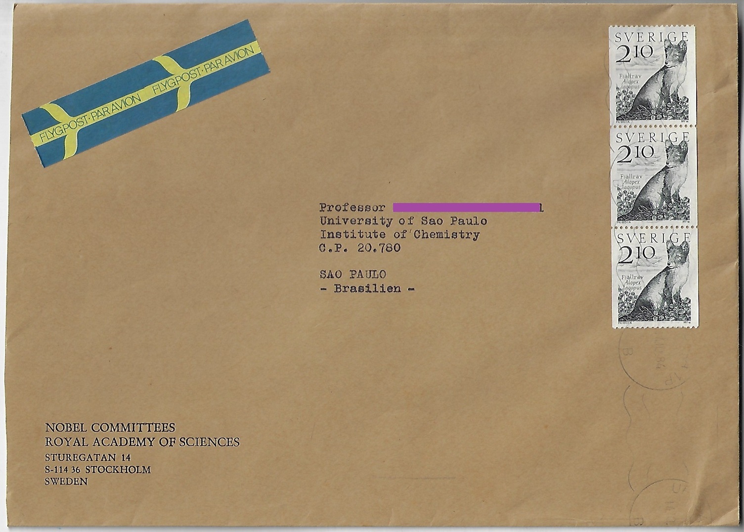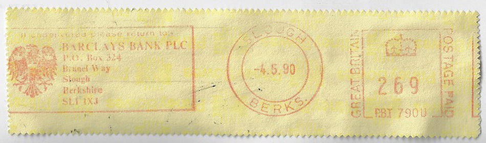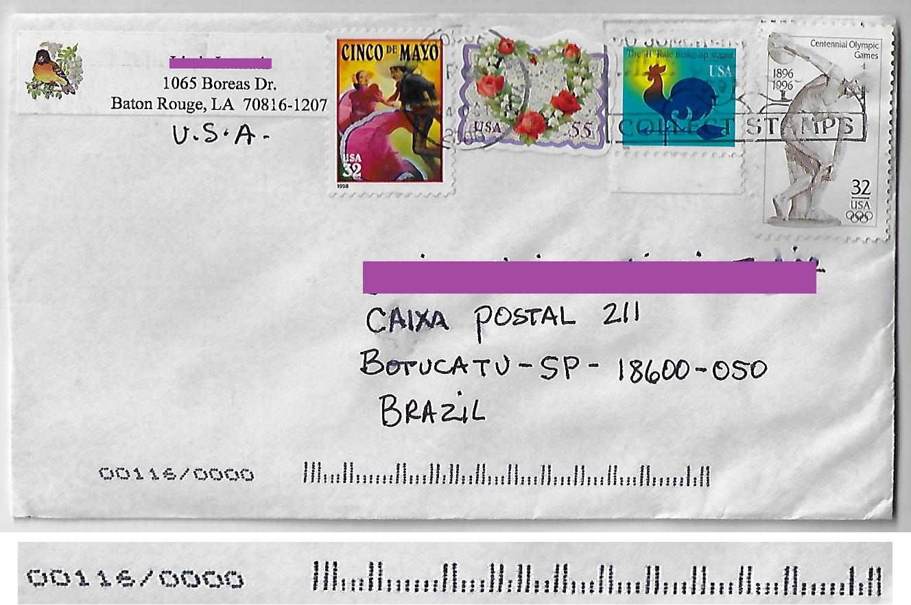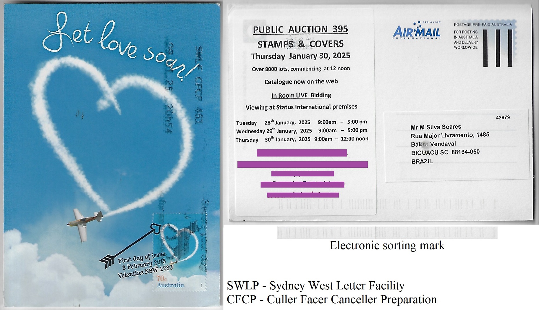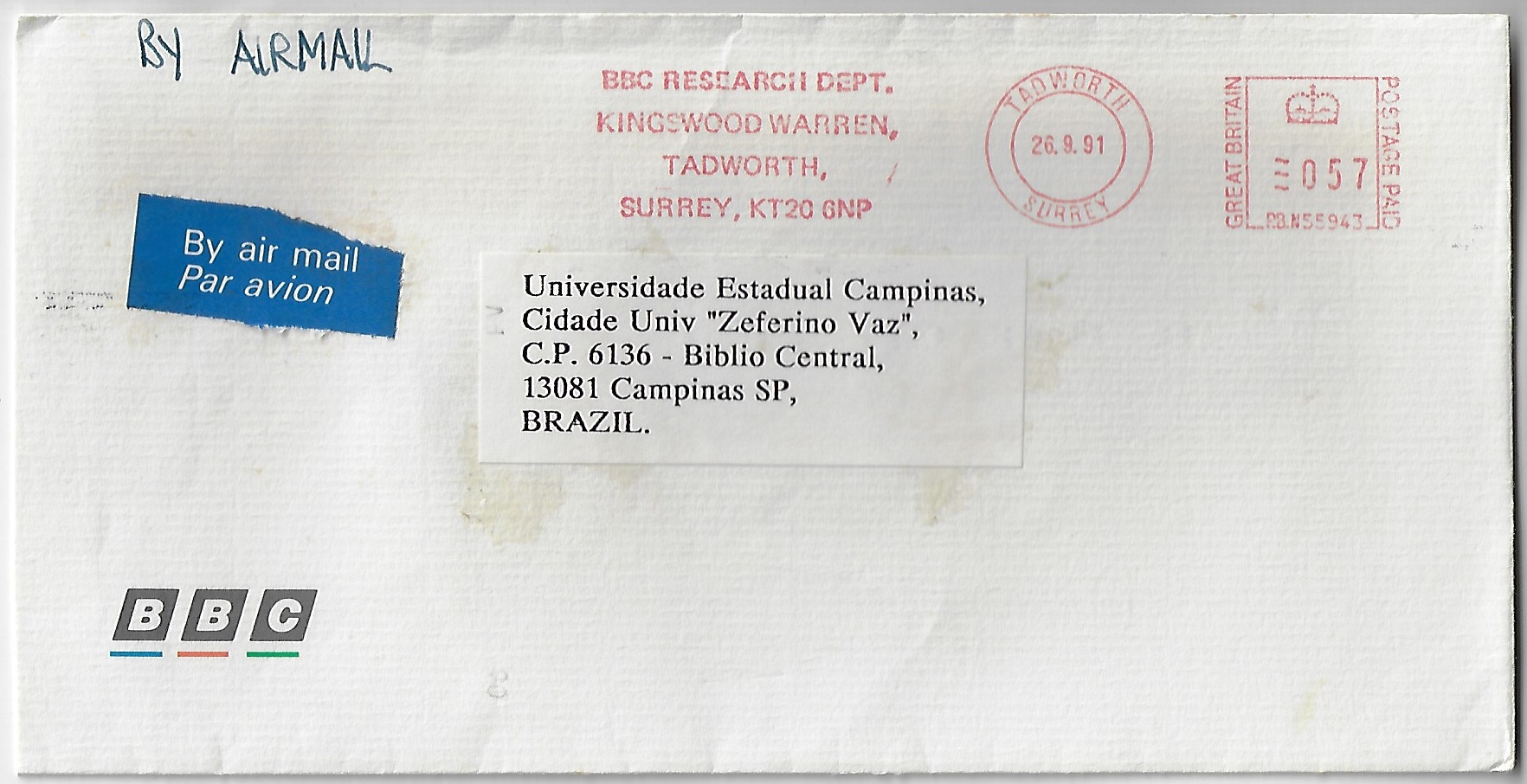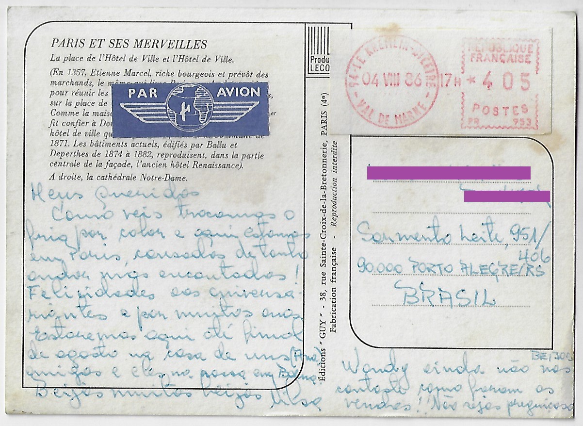 | 79678 | África do Sul, 1979, envelope aéreo enviado de Eppingust (13/7) para São Paulo, porteado com franquia mecânica Roneo Neopost "205/2205" com slogan Barclays National Bank Ltd | 10,00 | Foto |