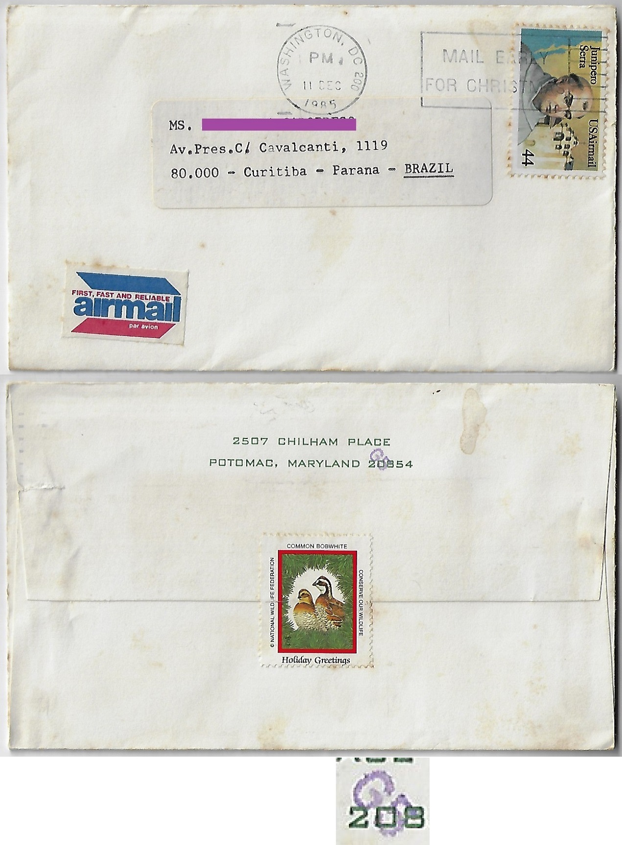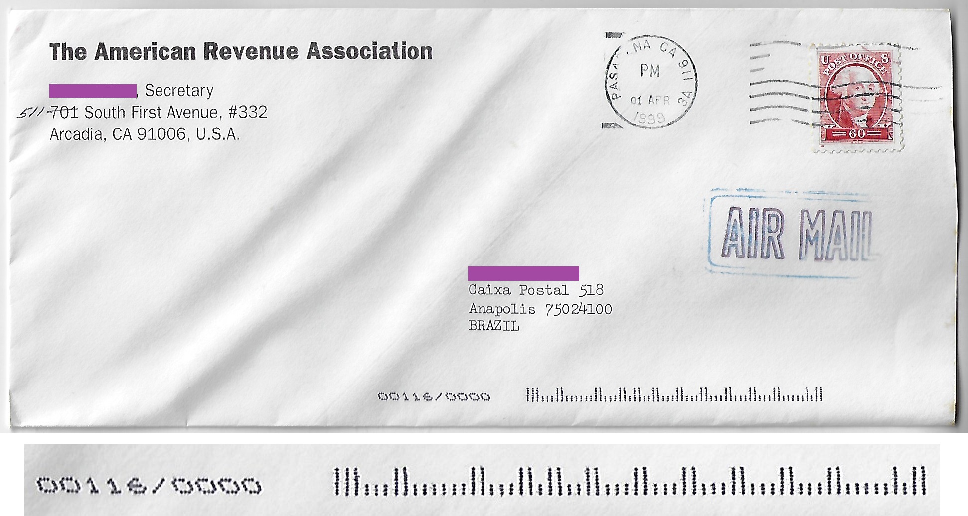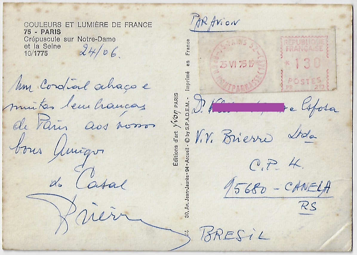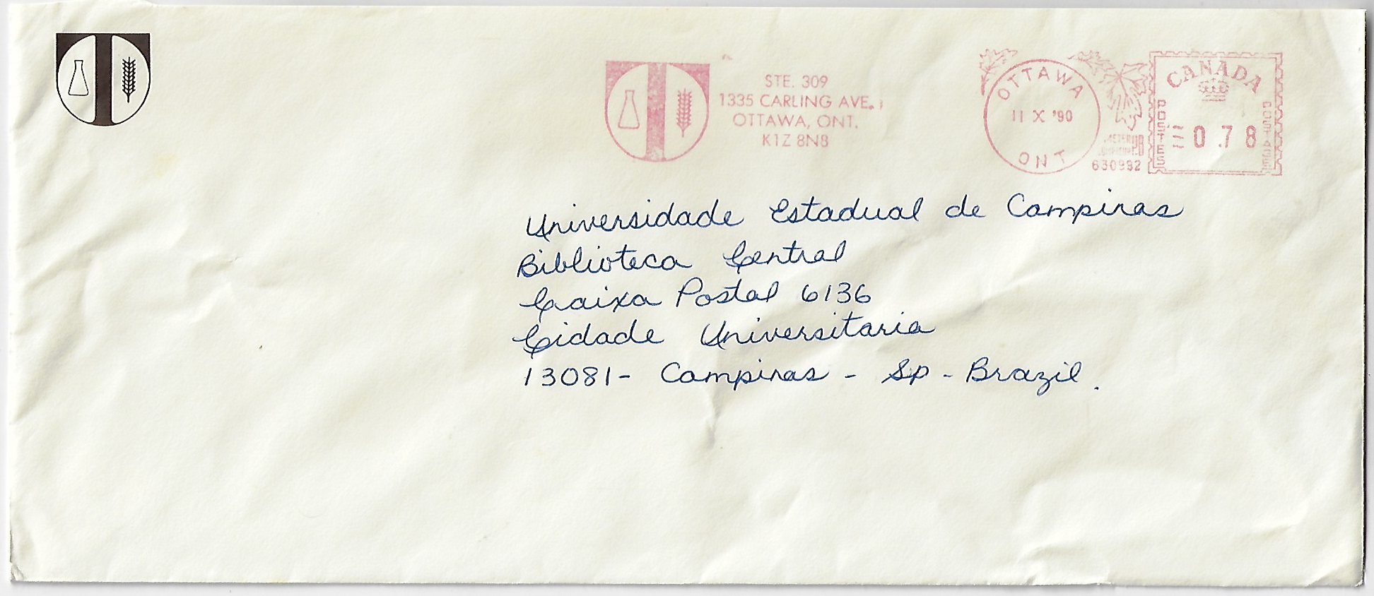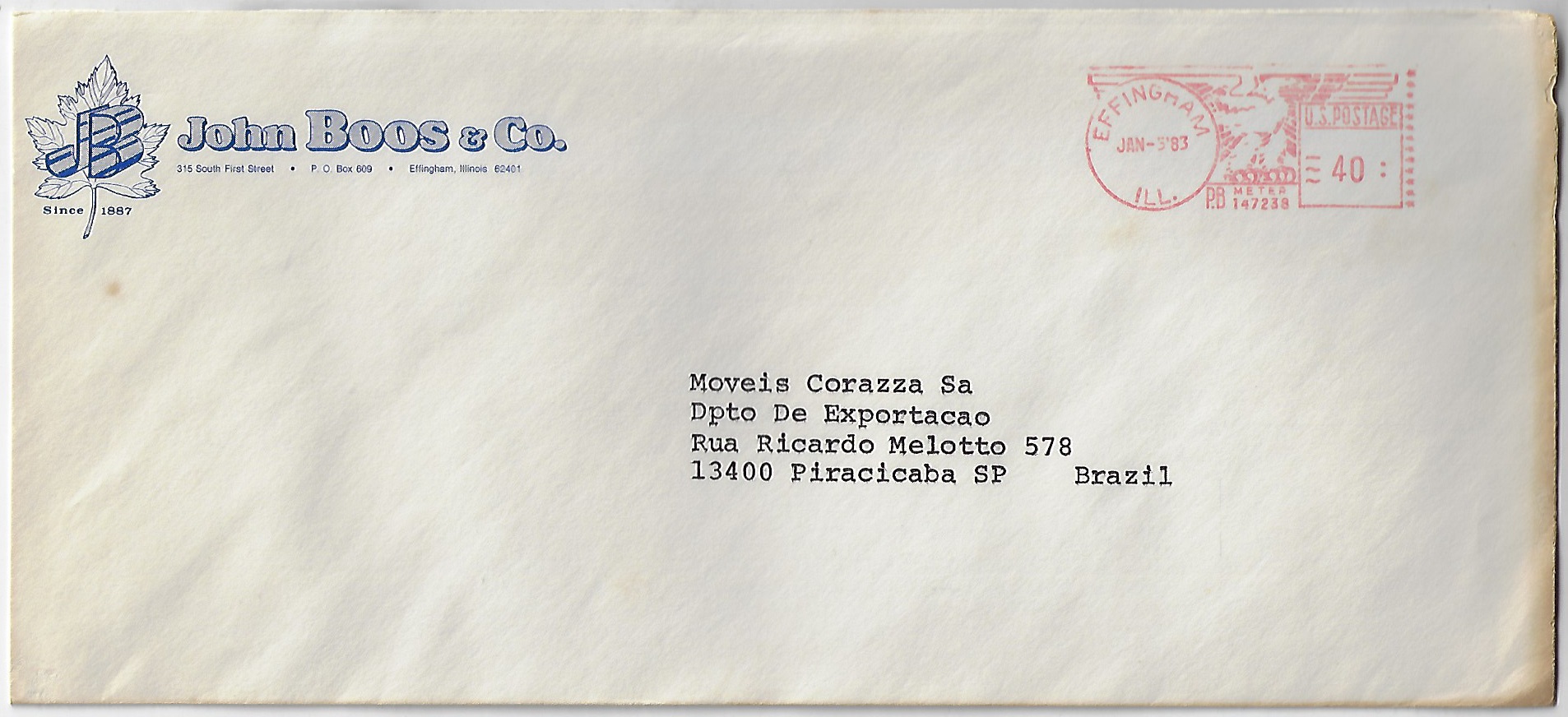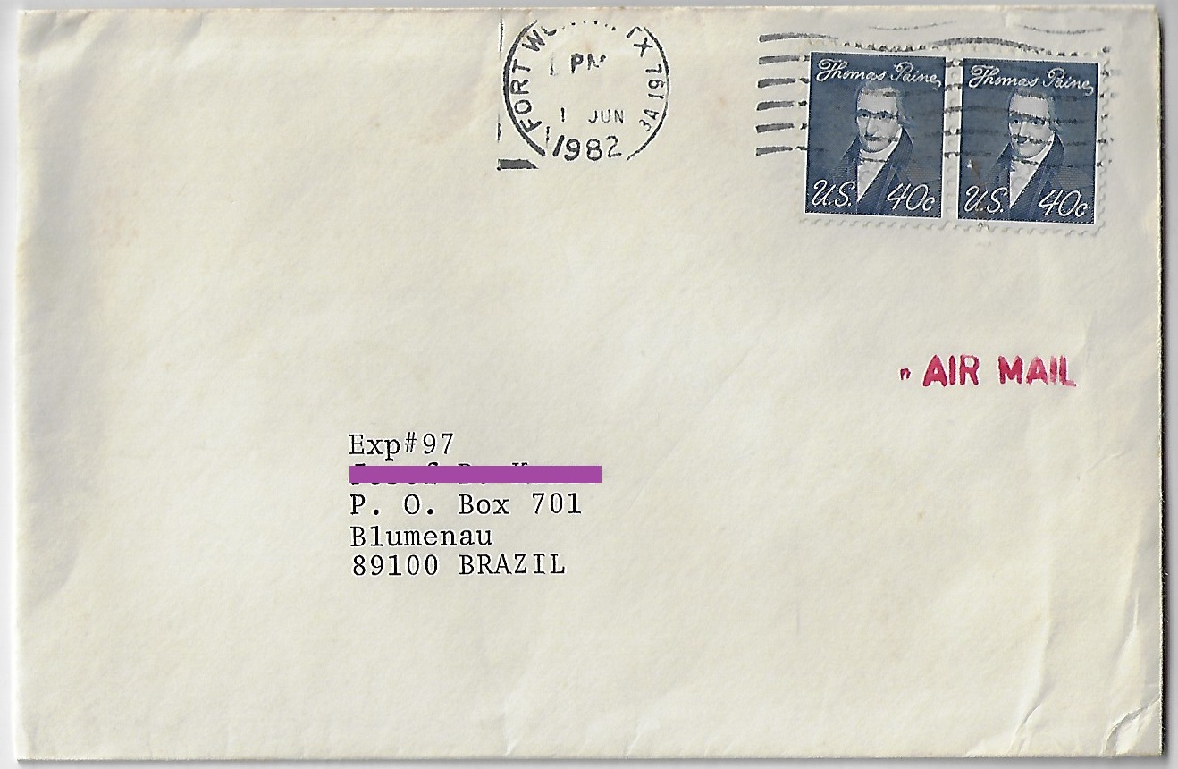 | 79678 | África do Sul, 1979, envelope aéreo enviado de Eppingust (13/7) para São Paulo, porteado com franquia mecânica Roneo Neopost "205/2205" com slogan Barclays National Bank Ltd | 10,00 | Foto |