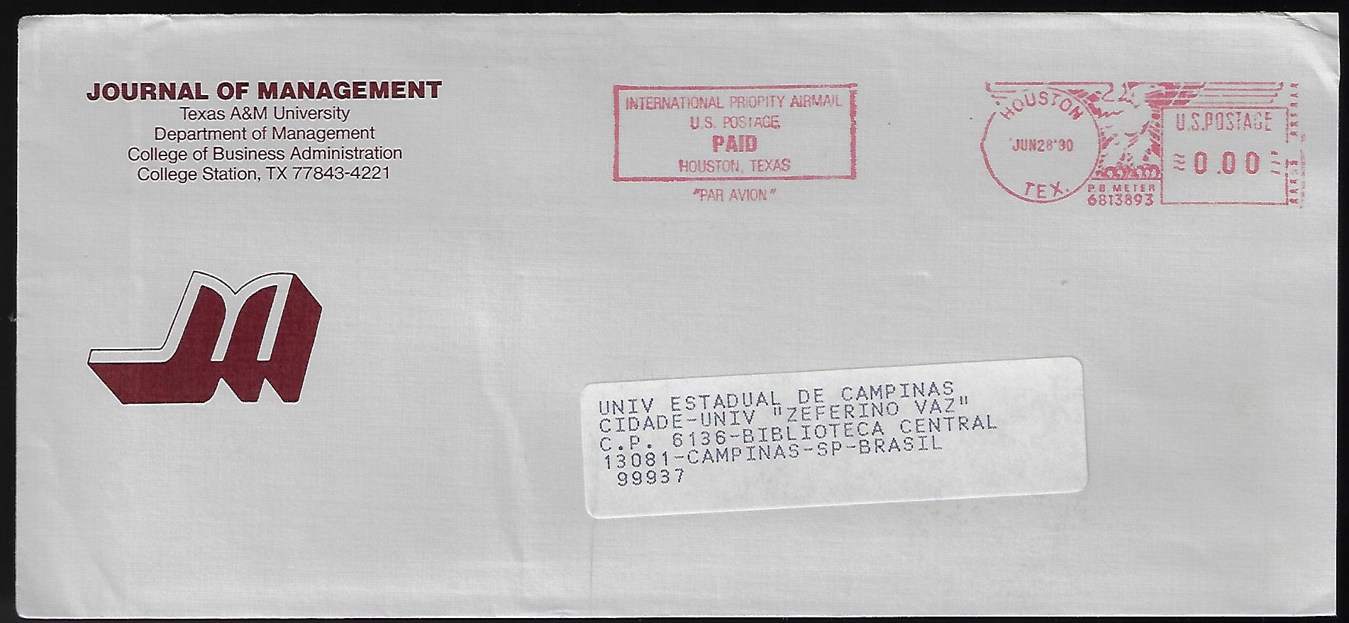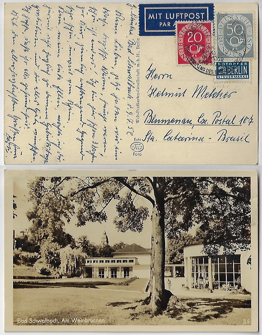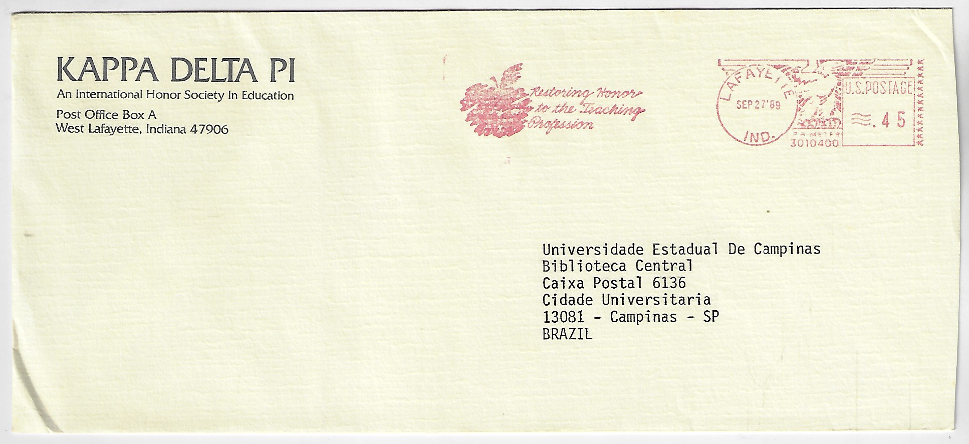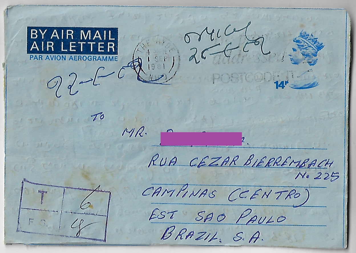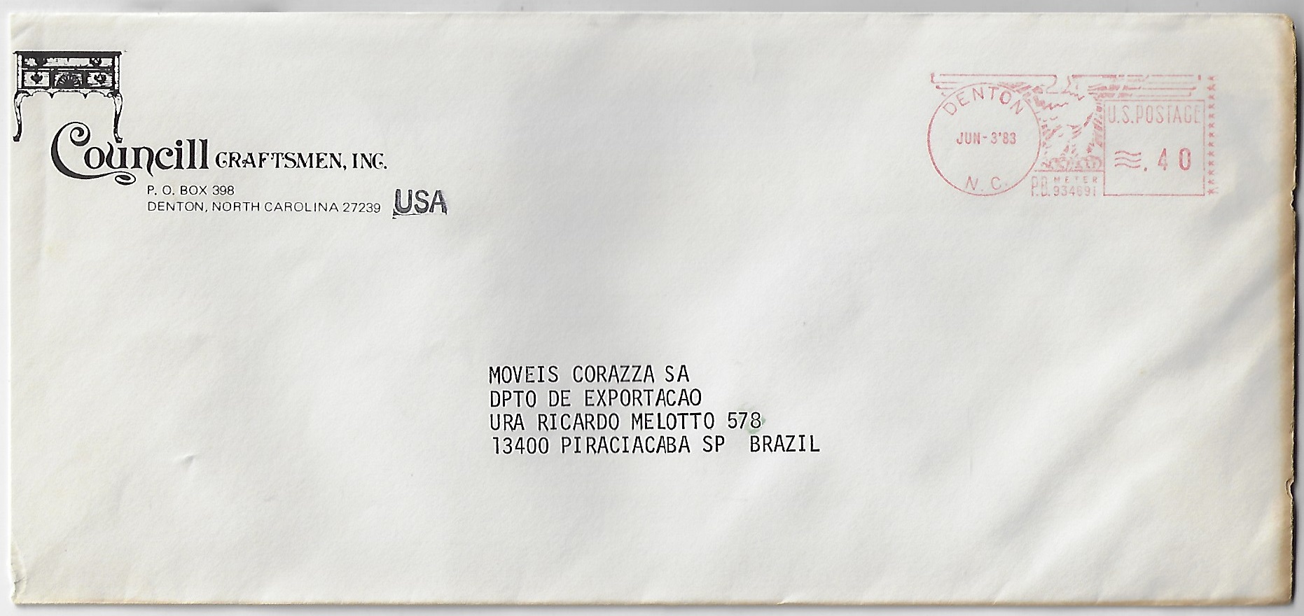 | 79678 | África do Sul, 1979, envelope aéreo enviado de Eppingust (13/7) para São Paulo, porteado com franquia mecânica Roneo Neopost "205/2205" com slogan Barclays National Bank Ltd | 10,00 | Foto |