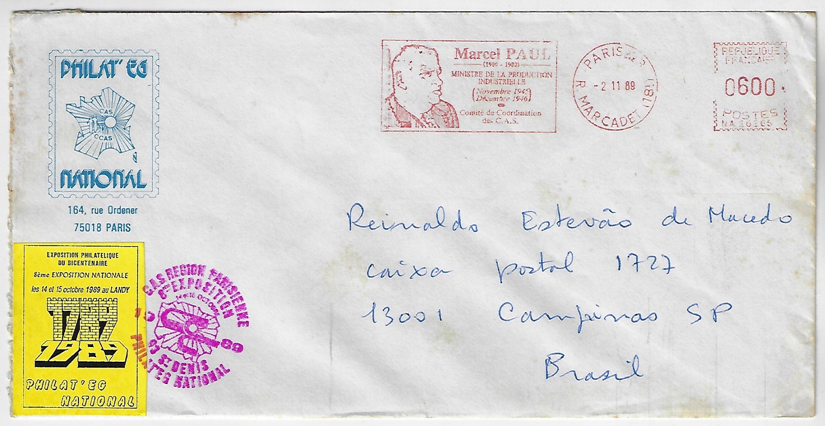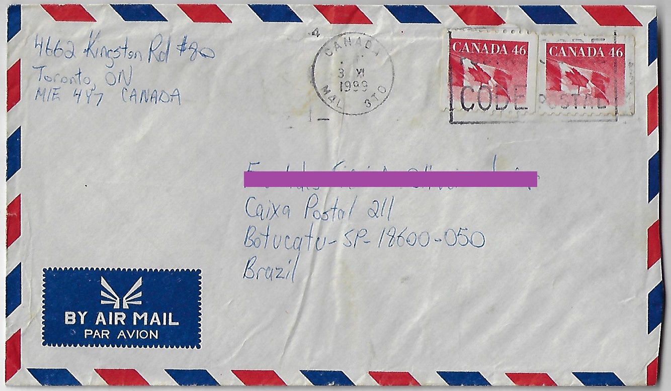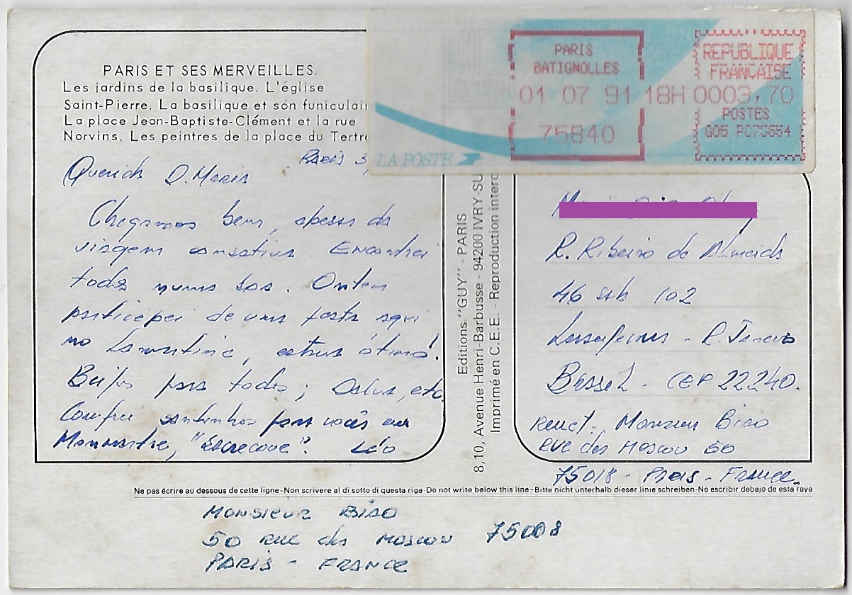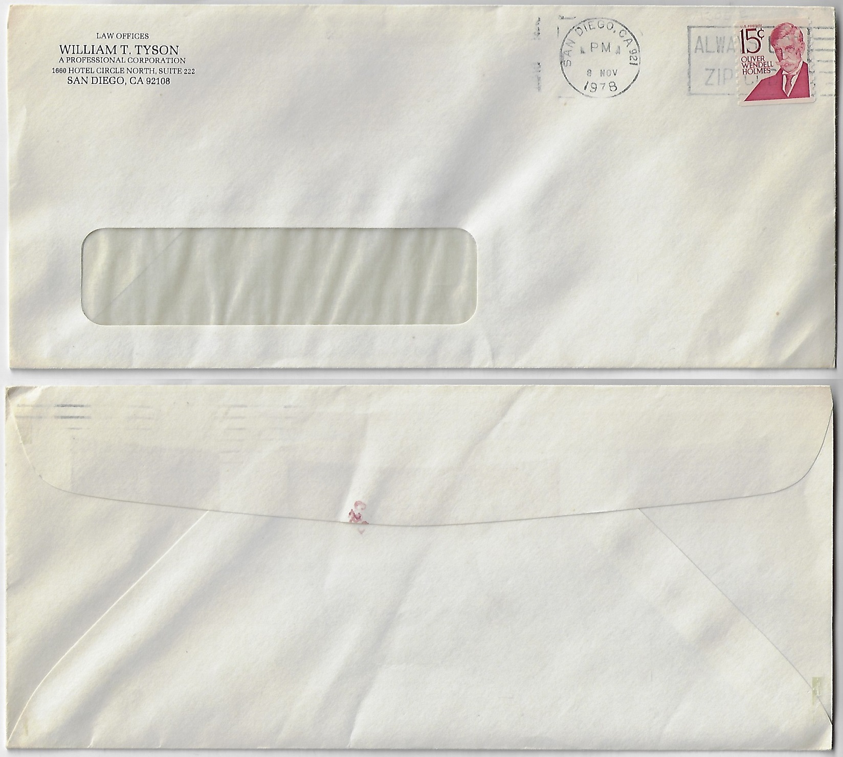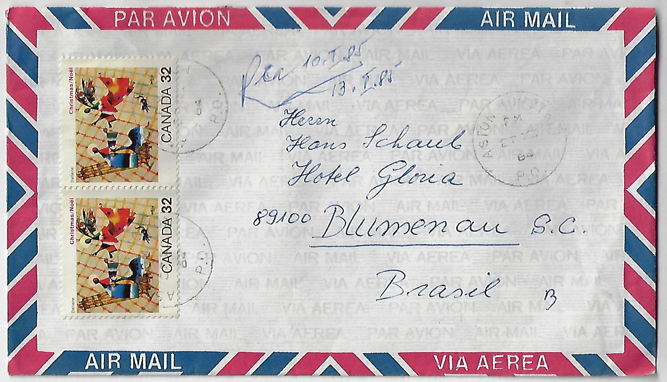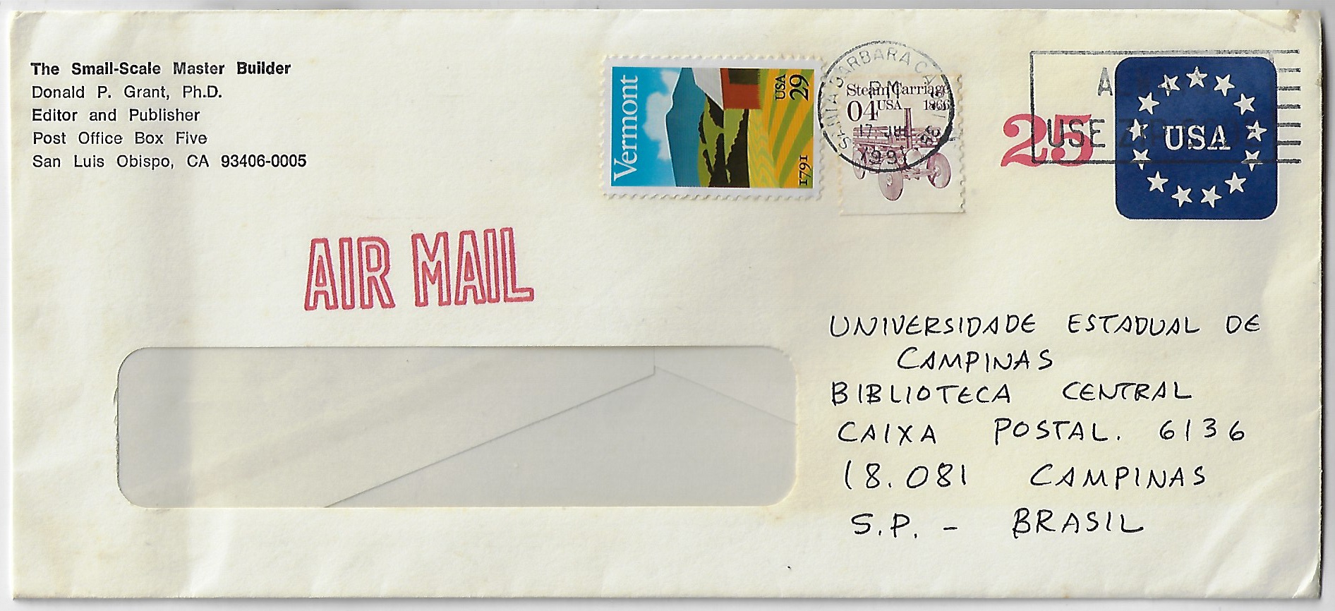 | 79678 | África do Sul, 1979, envelope aéreo enviado de Eppingust (13/7) para São Paulo, porteado com franquia mecânica Roneo Neopost "205/2205" com slogan Barclays National Bank Ltd | 10,00 | Foto |