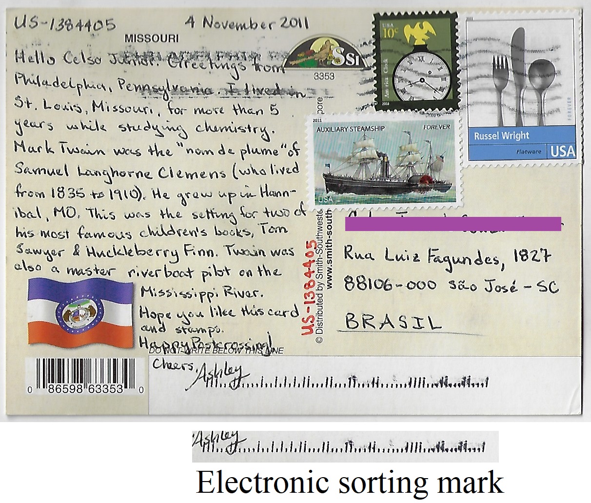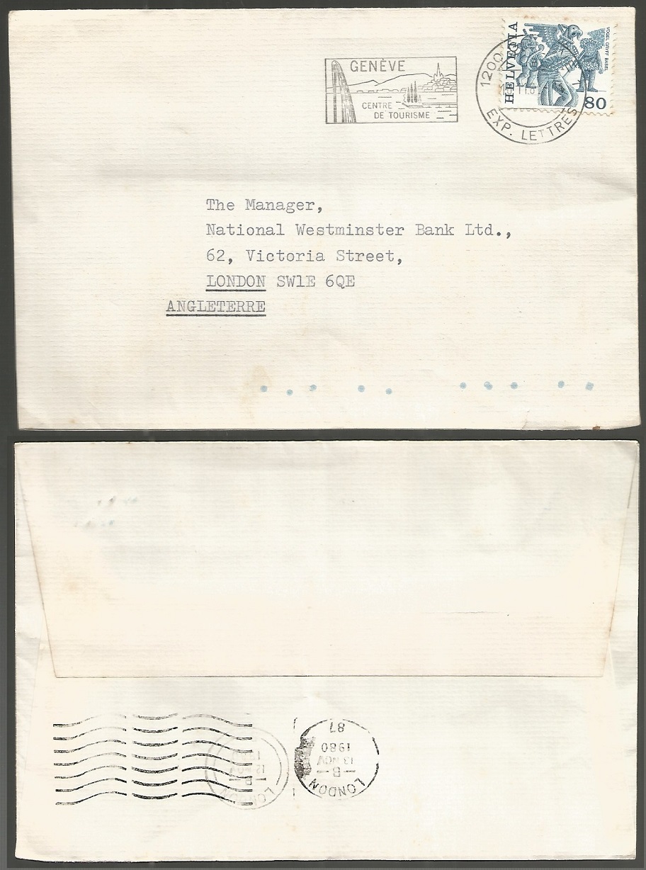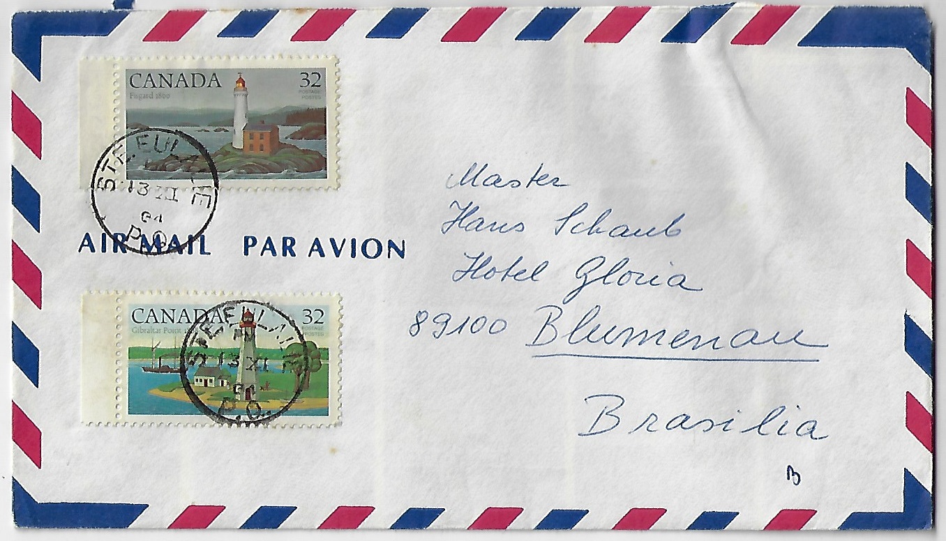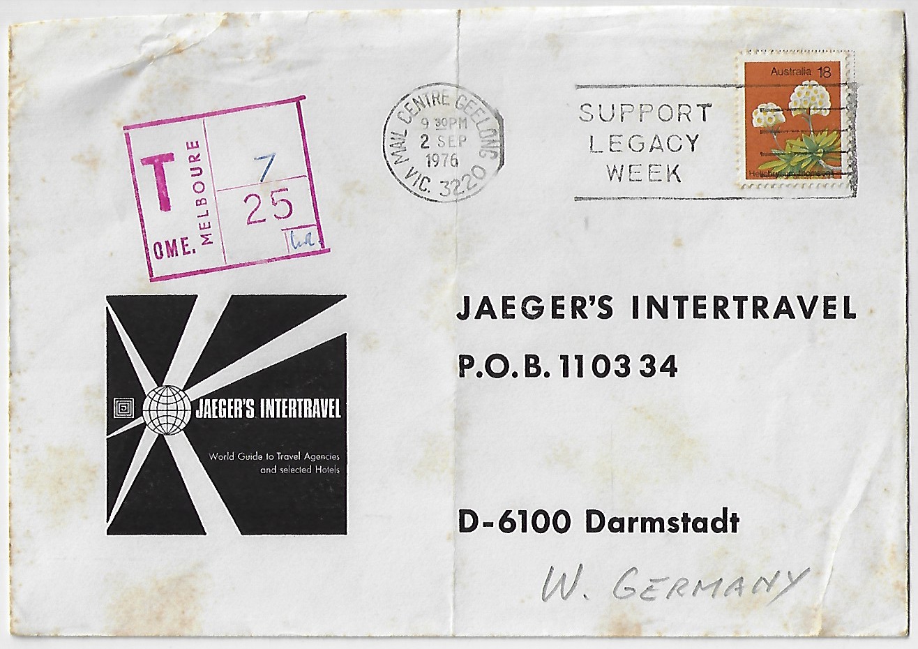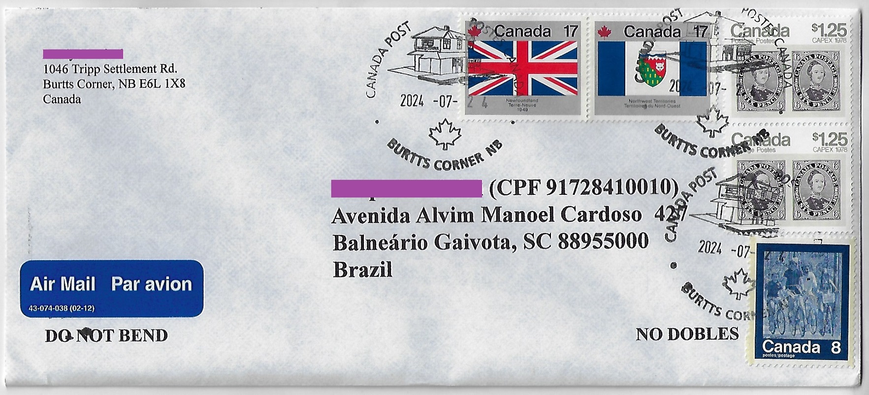 | 79678 | África do Sul, 1979, envelope aéreo enviado de Eppingust (13/7) para São Paulo, porteado com franquia mecânica Roneo Neopost "205/2205" com slogan Barclays National Bank Ltd | 10,00 | Foto |