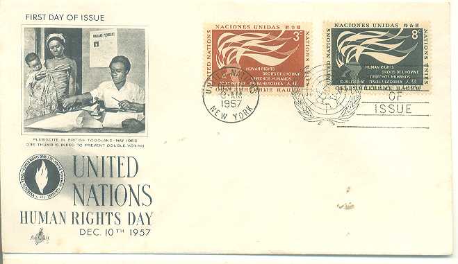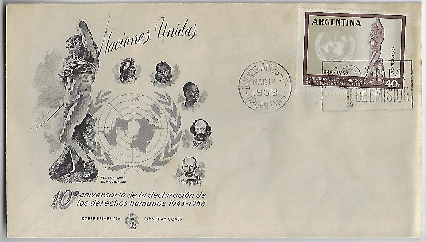 | 60706 | Argentina, 1959, FDC envelope de 1º dia de circulação alusivo ao 10º aniversário da Declaração dos Direitos Humanos, Nações Unidas | 10,00 | Foto |