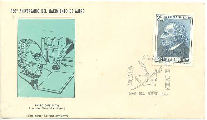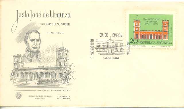 | 48437 | Argentina, 1970, envelope com carimbo de 1º dia alusivo a Justo José de Urquiza | 3,00 | Foto |