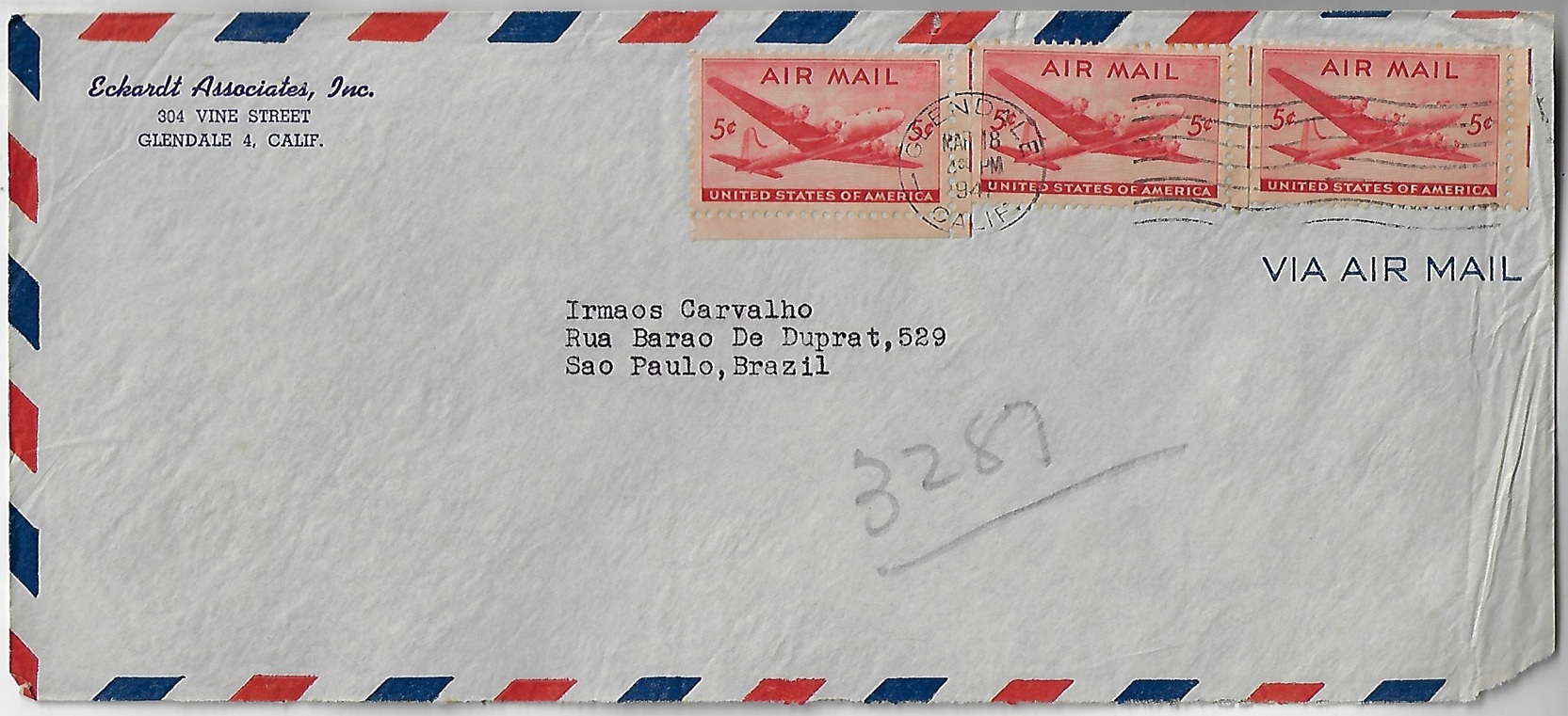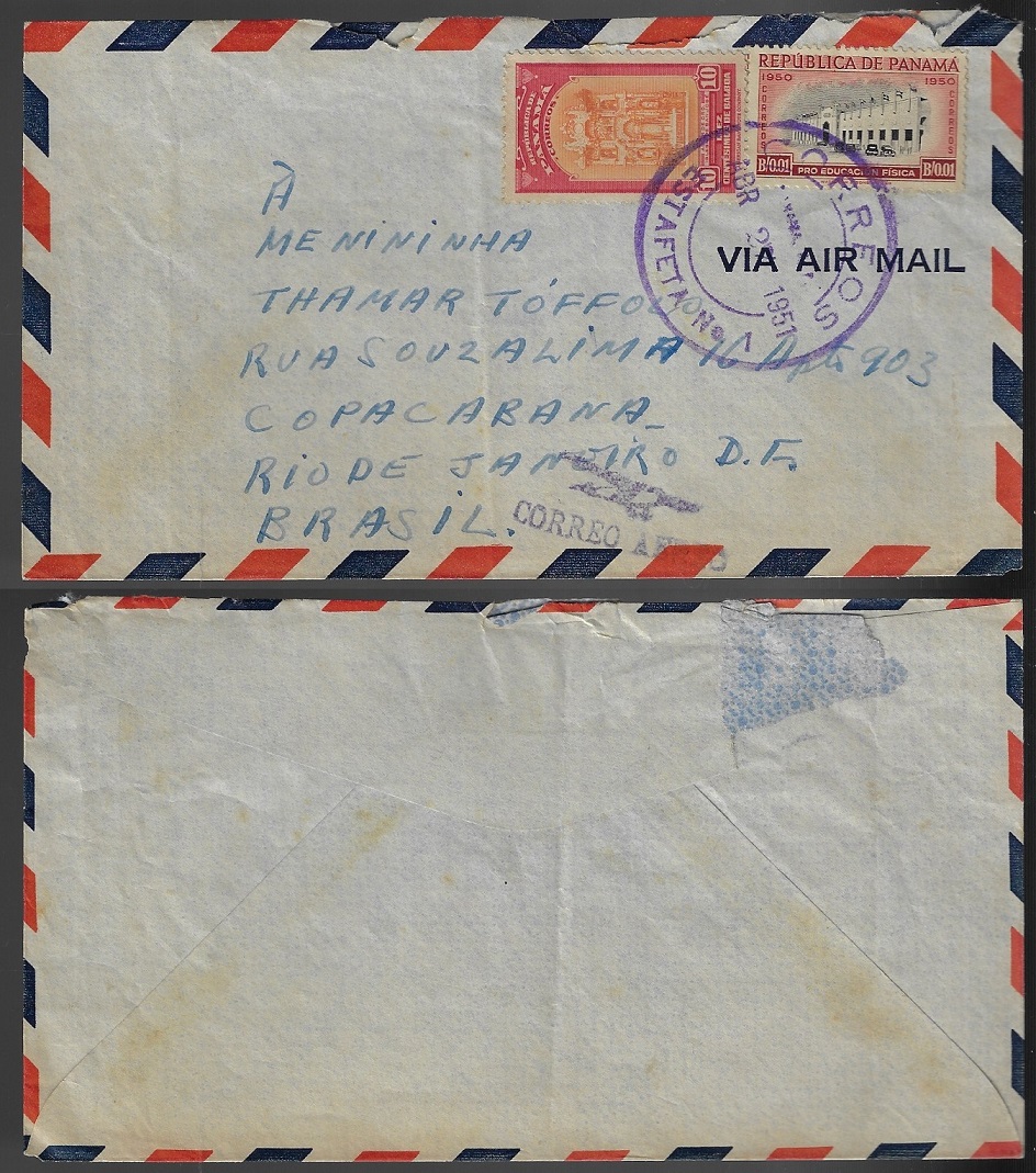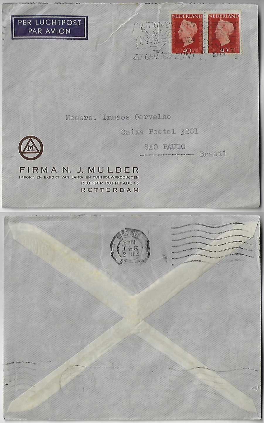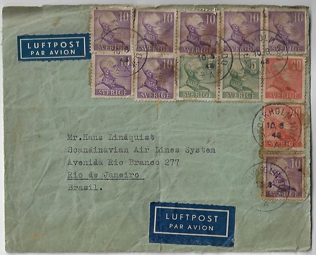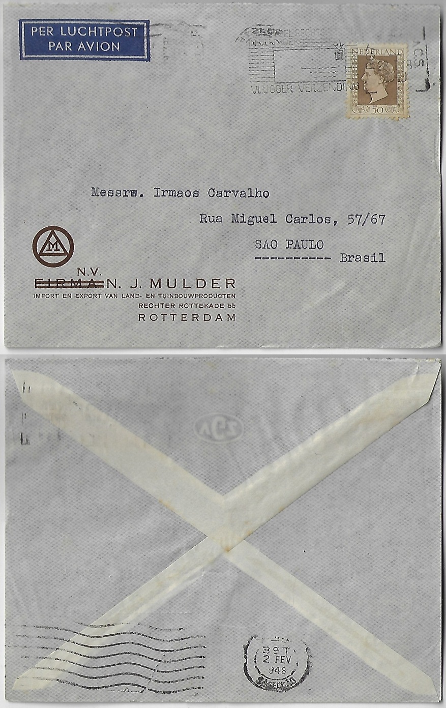 | 81071 | Argentina, 1950, envelope aéreo de Buenos Aires (25/3)para Florianópolis (28/3), porteado com 3 selos | 10,00 | Foto |