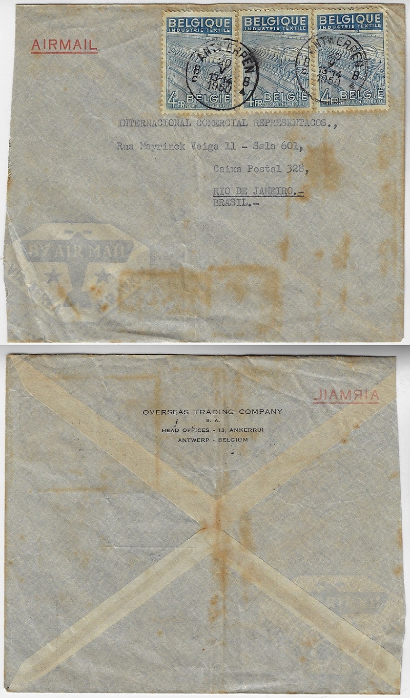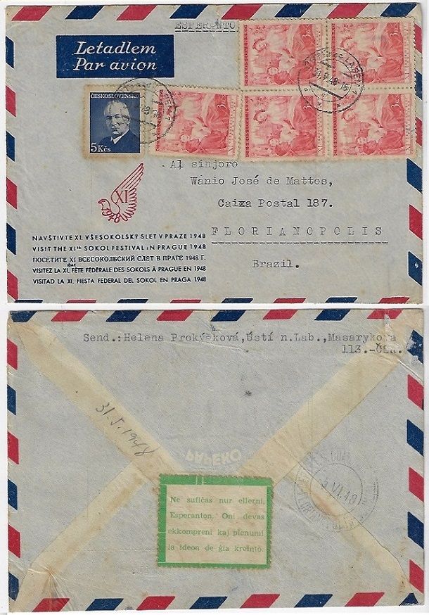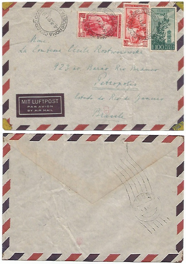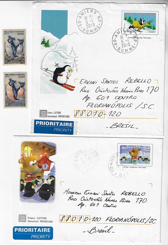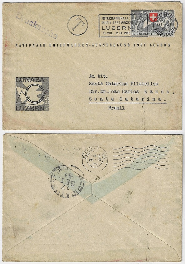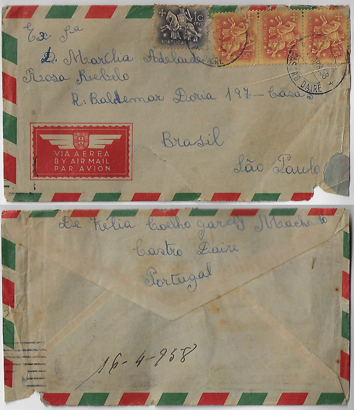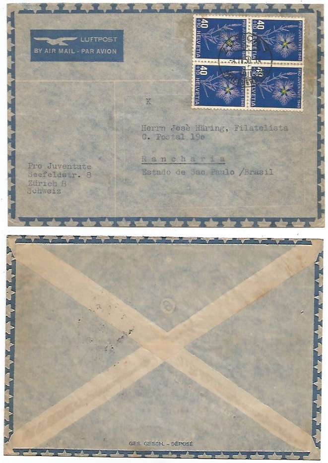 | 81071 | Argentina, 1950, envelope aéreo de Buenos Aires (25/3)para Florianópolis (28/3), porteado com 3 selos | 10,00 | Foto |