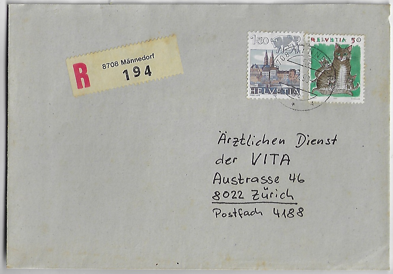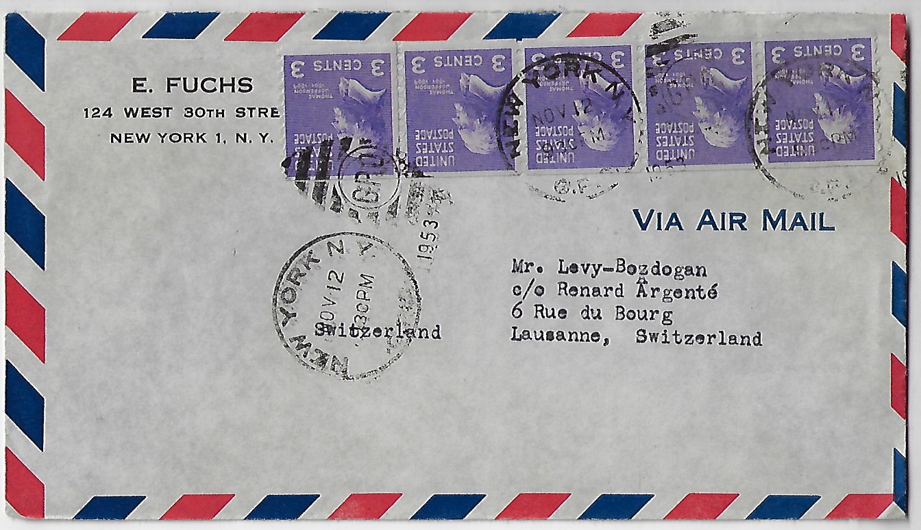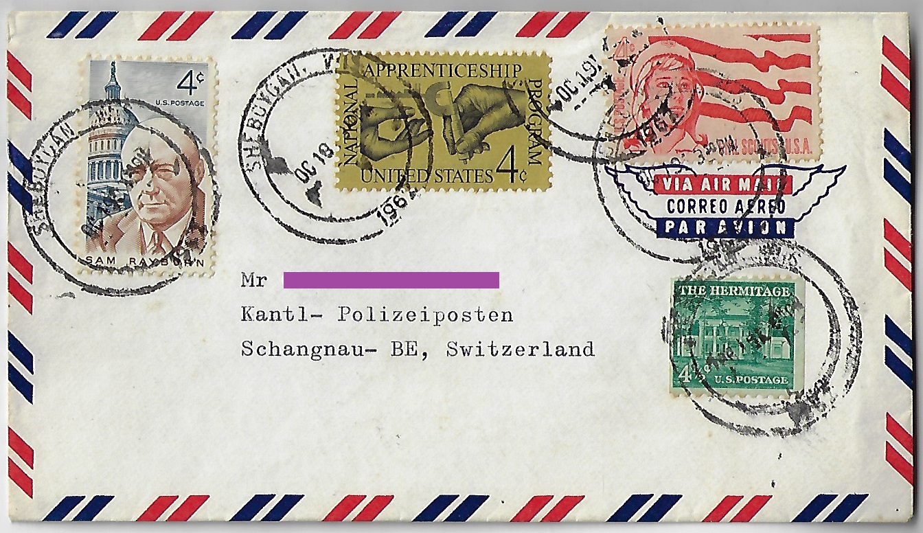 | 84661 | Zaire, 1984, envelope aéreo enviado de Kinshasa para Thoune / Suíça, porteado com selos Conferência de Chefes de Estado da França e da África e Escultura "Le Militant" | 10,00 | Foto |