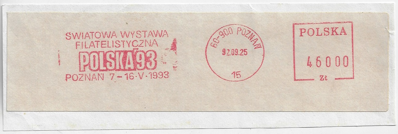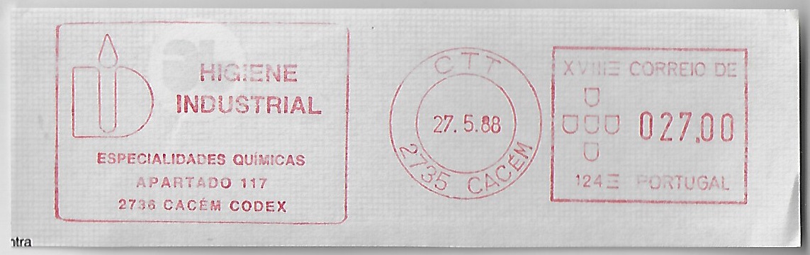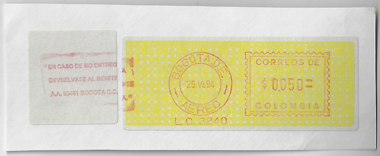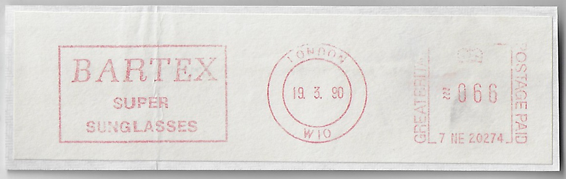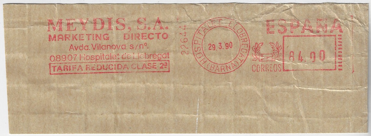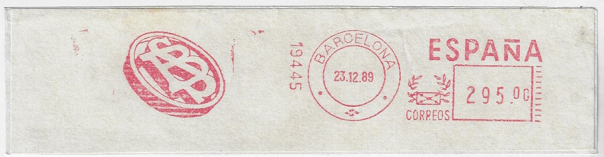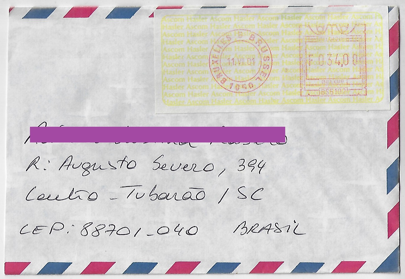 | 79903 | África do Sul, 1990, fragmento de envelope porteado com franquia mecânica Hasler sobre etiqueta, de Johannesburg | 10,00 | Foto |