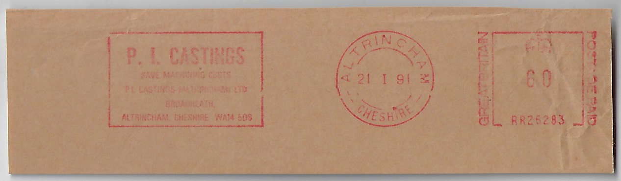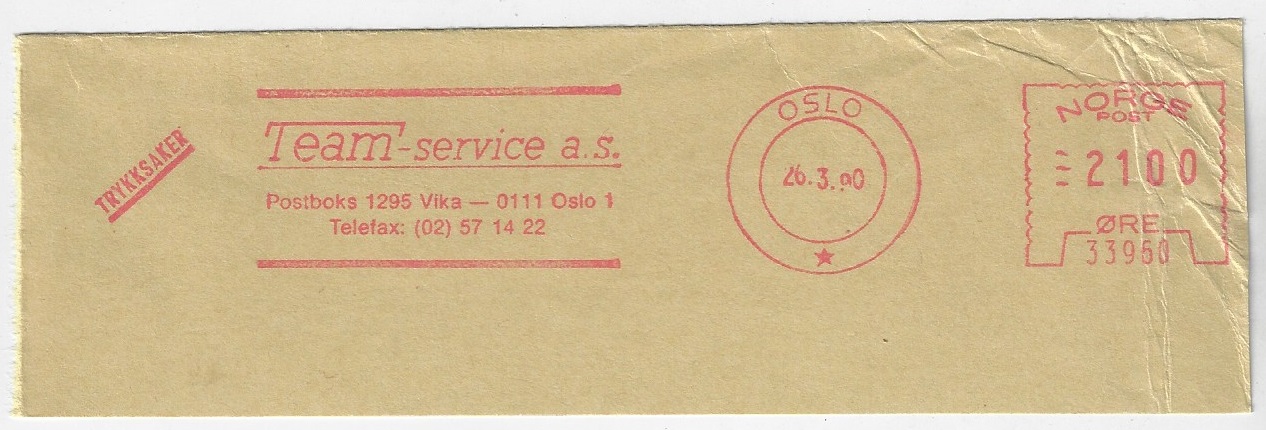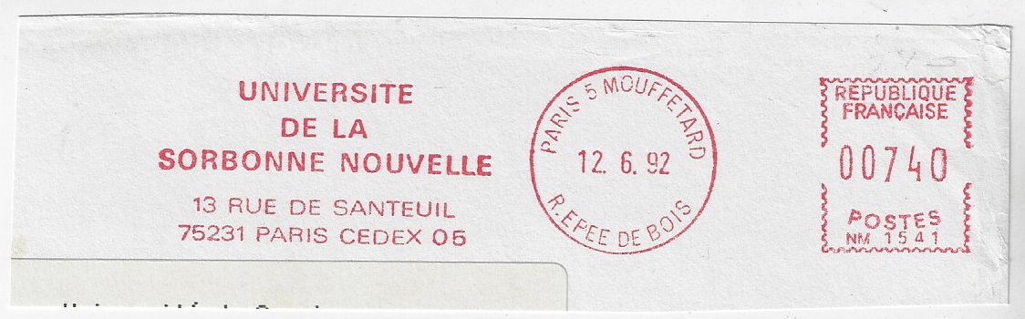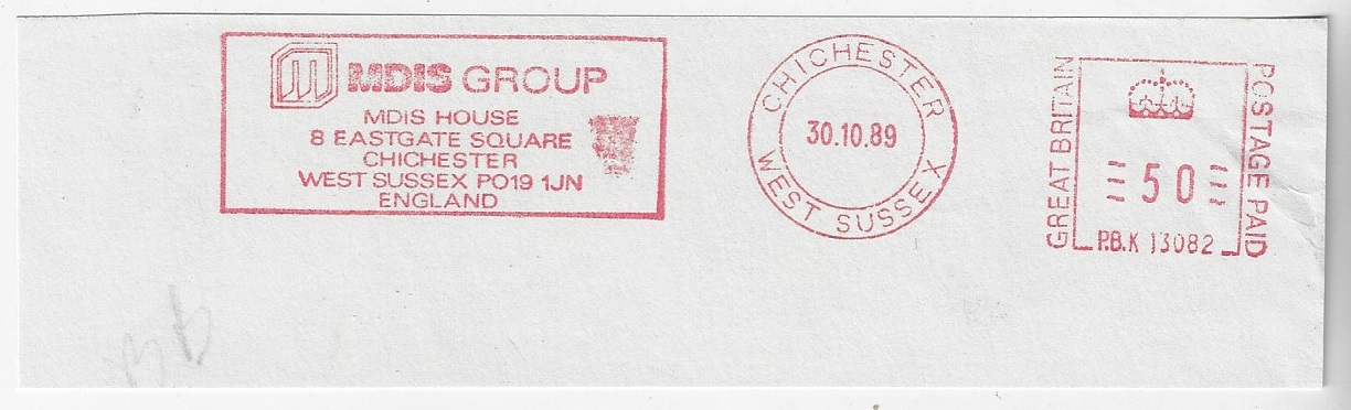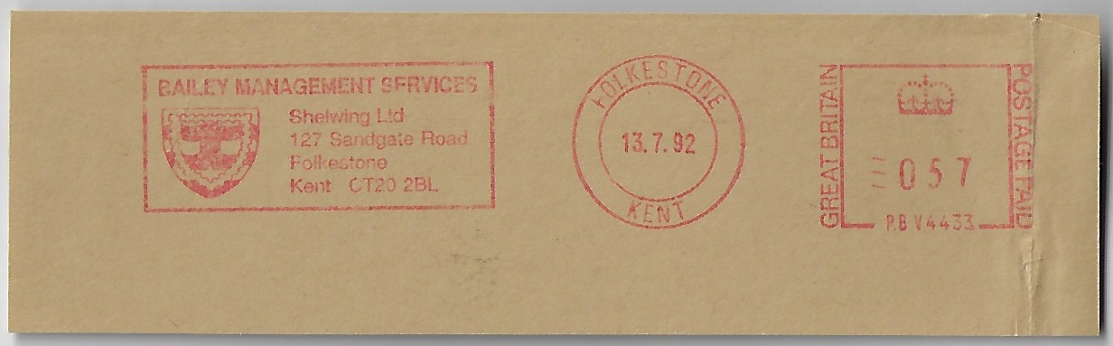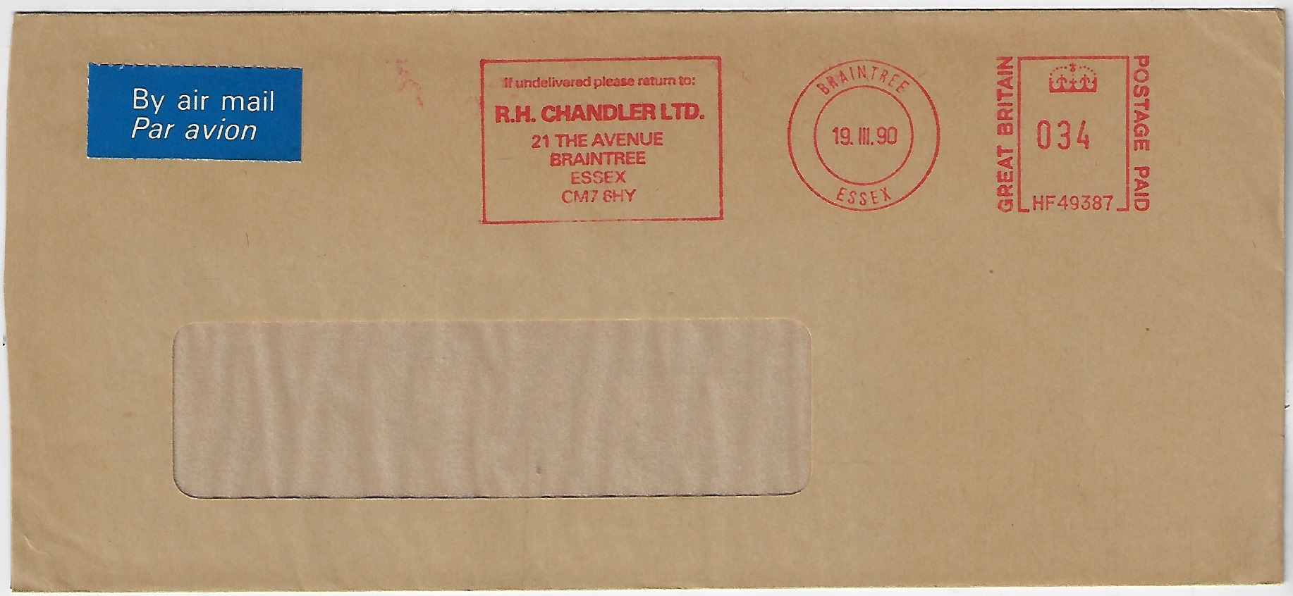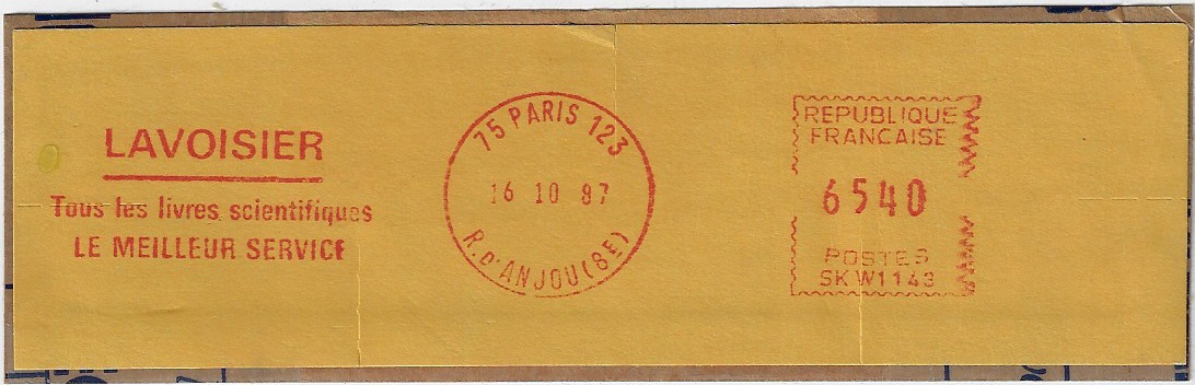 | 79903 | África do Sul, 1990, fragmento de envelope porteado com franquia mecânica Hasler sobre etiqueta, de Johannesburg | 10,00 | Foto |