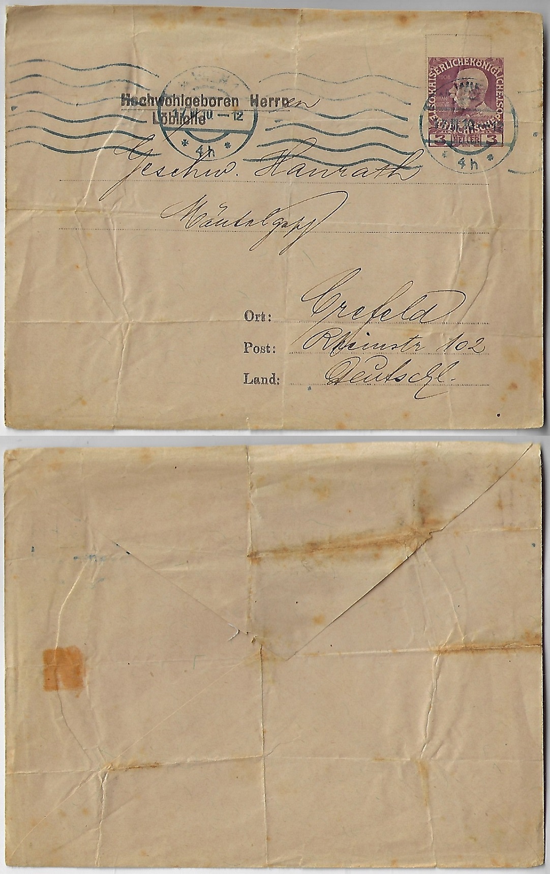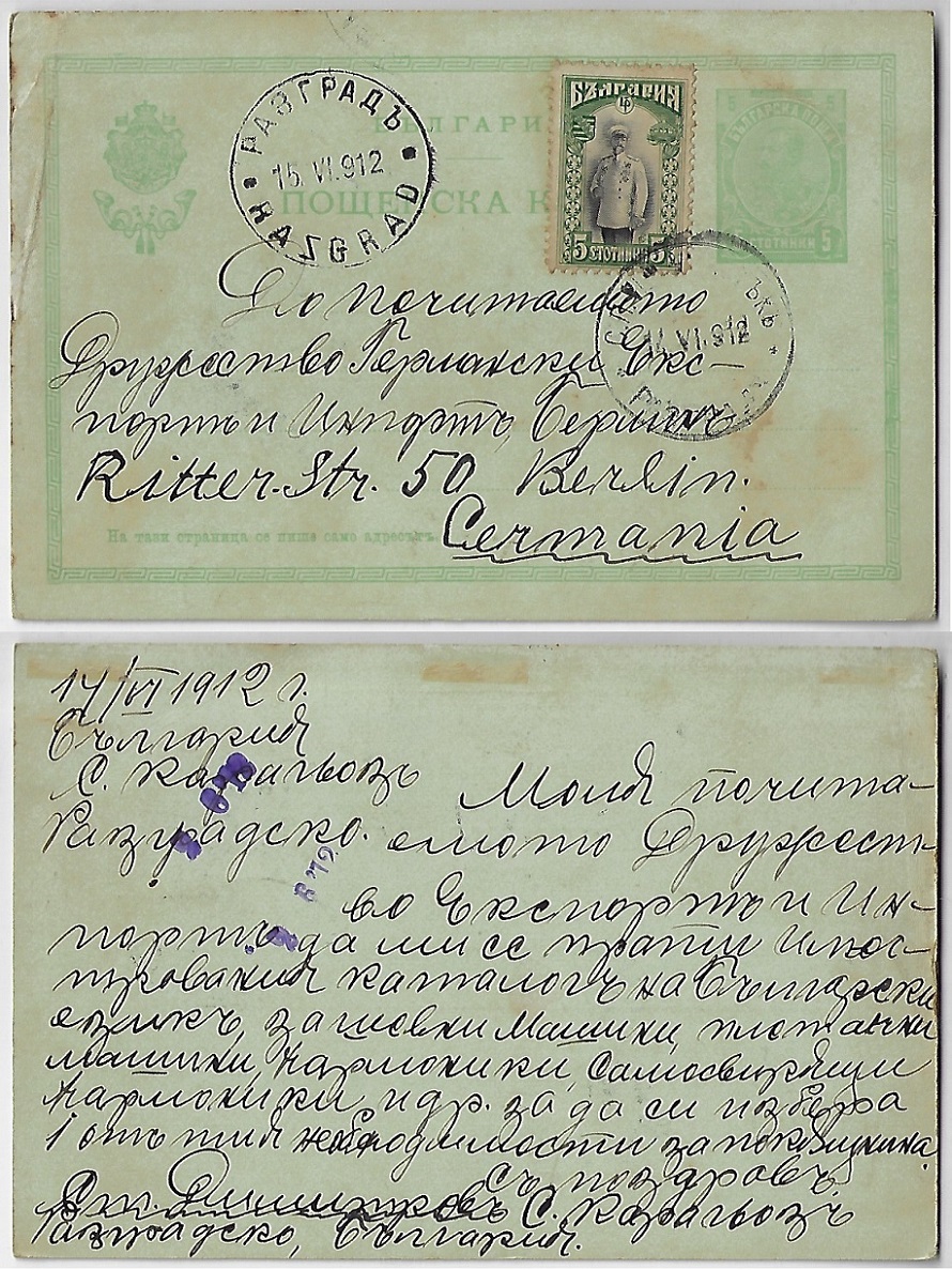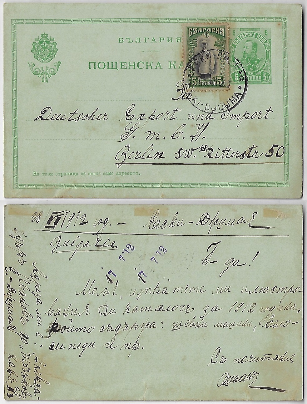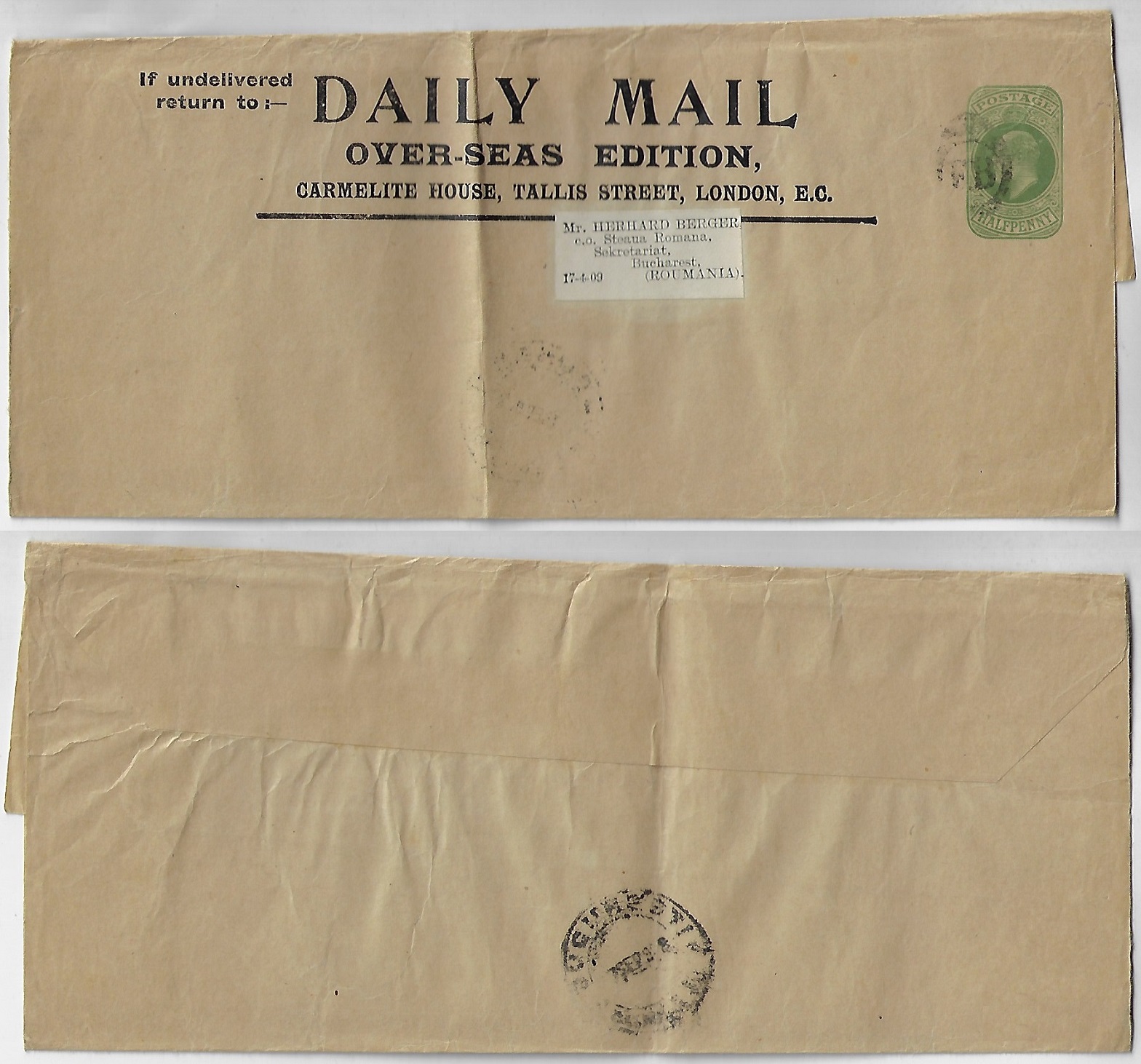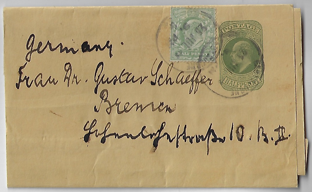| 80459 | Argentina, 1920s, inteiro postal tipo cinta para jornais, selo ½ Centavo, enviado pela Sociedad Filatélica Alemana de Buenos Aires (11/3) para Santa Cruz / Brasil | 10,00 | Foto |