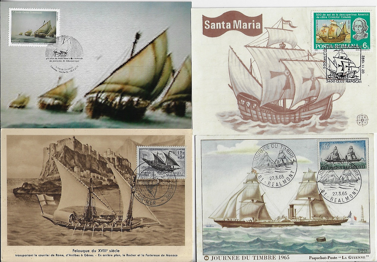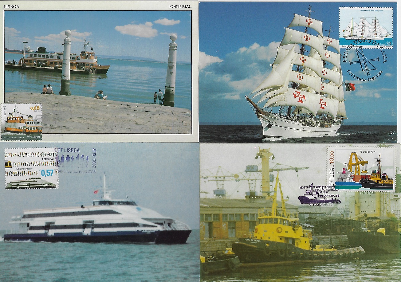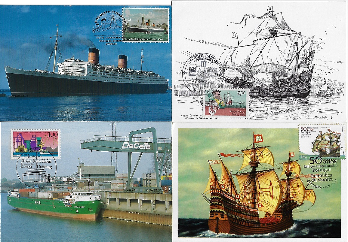 | 82082 | Alemanha Ocidental, França, Portugal e Grã-Bretanha, 1984/2013, 4 máximos postais alusivos a Navio, Barco, Transporte, Porto, Veleiro | 28,00 | Foto |