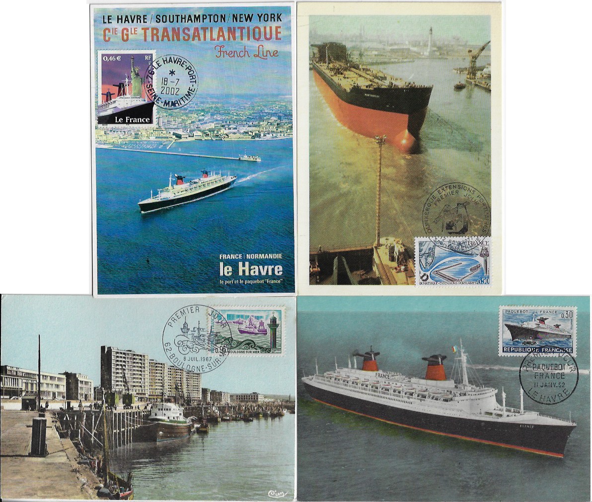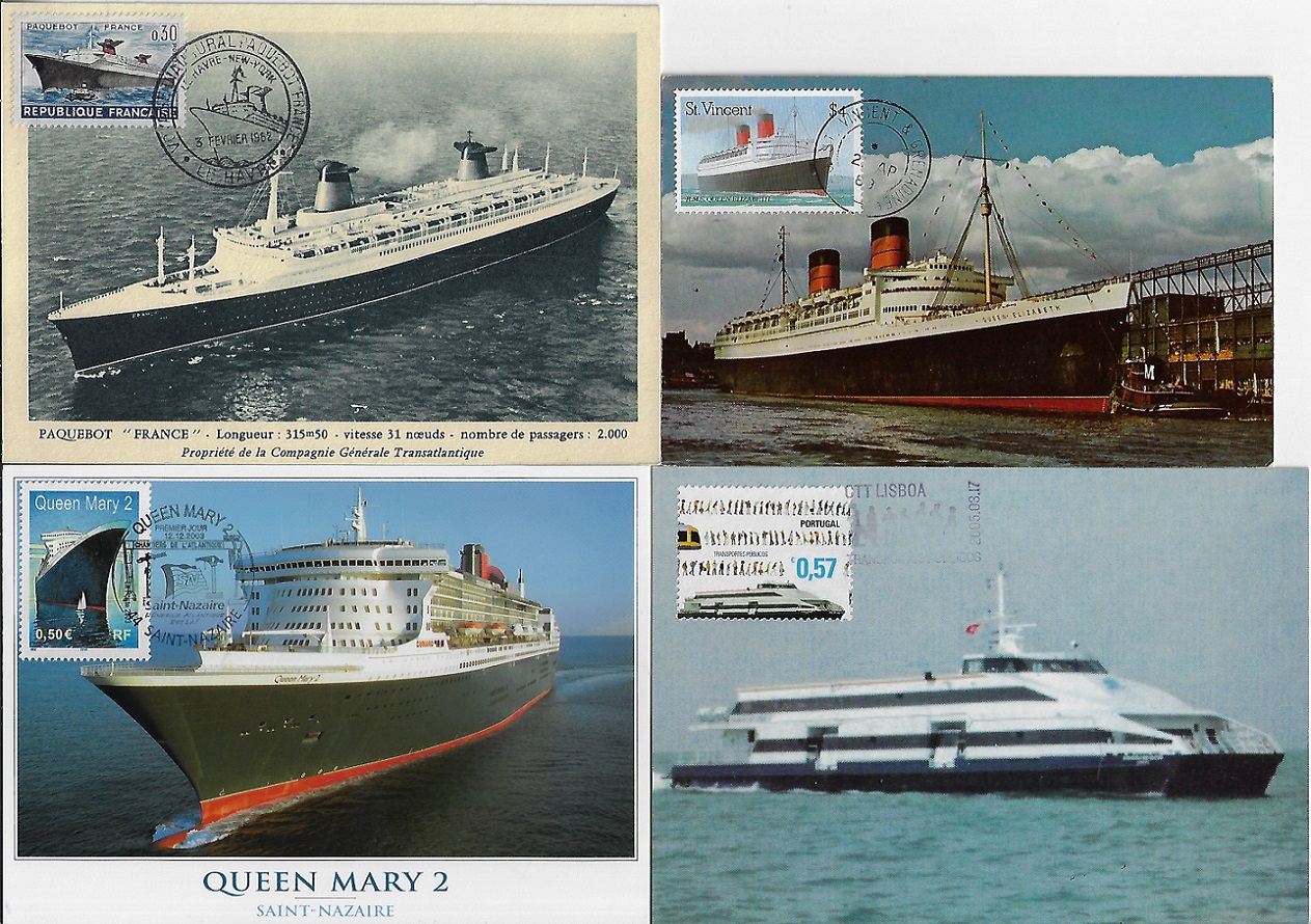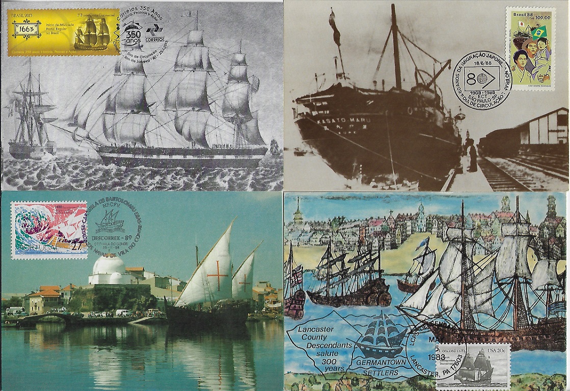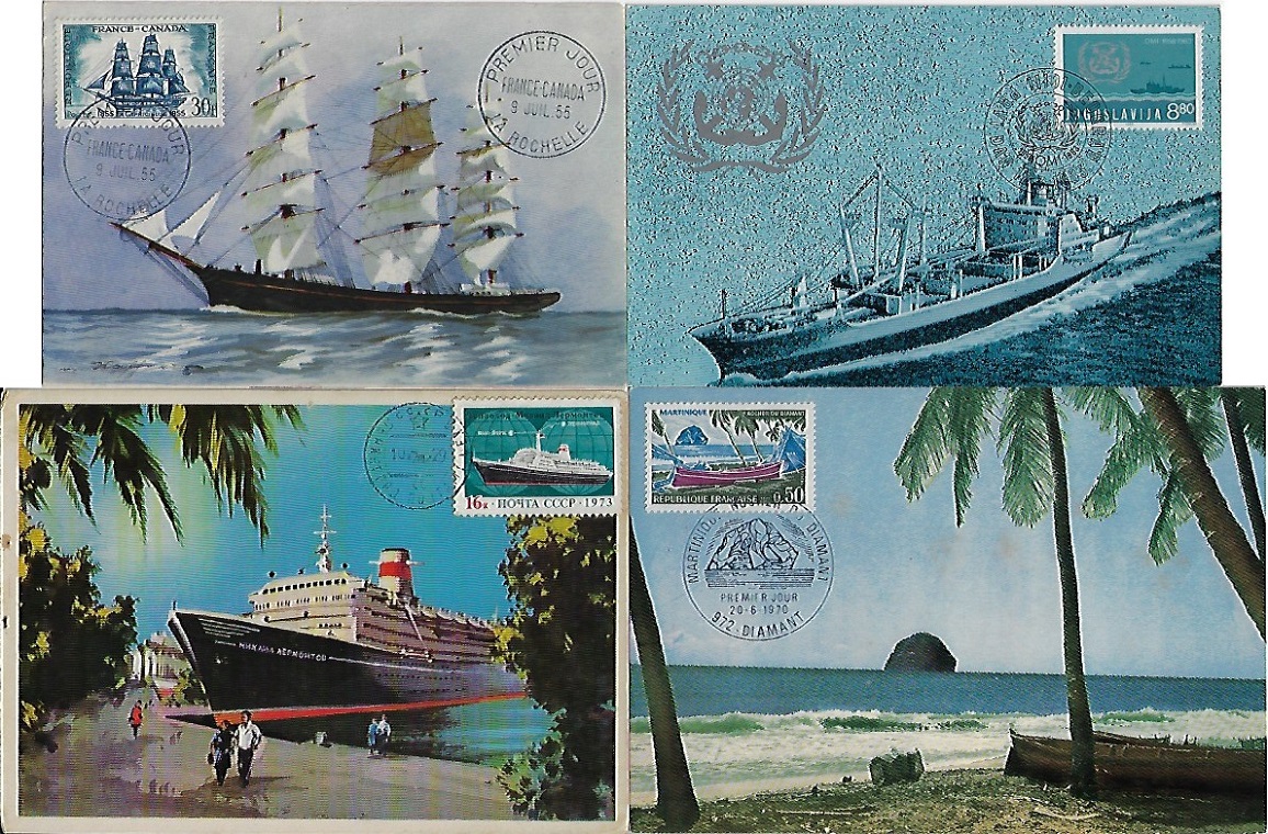 | 82082 | Alemanha Ocidental, França, Portugal e Grã-Bretanha, 1984/2013, 4 máximos postais alusivos a Navio, Barco, Transporte, Porto, Veleiro | 28,00 | Foto |