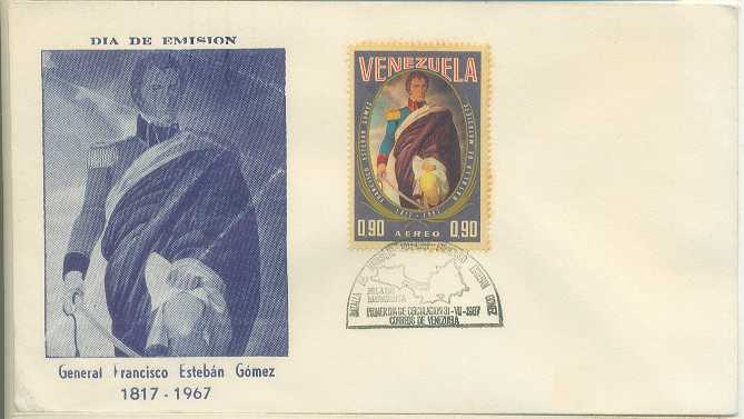 | 51920 | Venezuela, 1967, envelope com carimbo de 1º dia alusivo ao General Francisco Estebán Gómez | 3,00 | Foto |