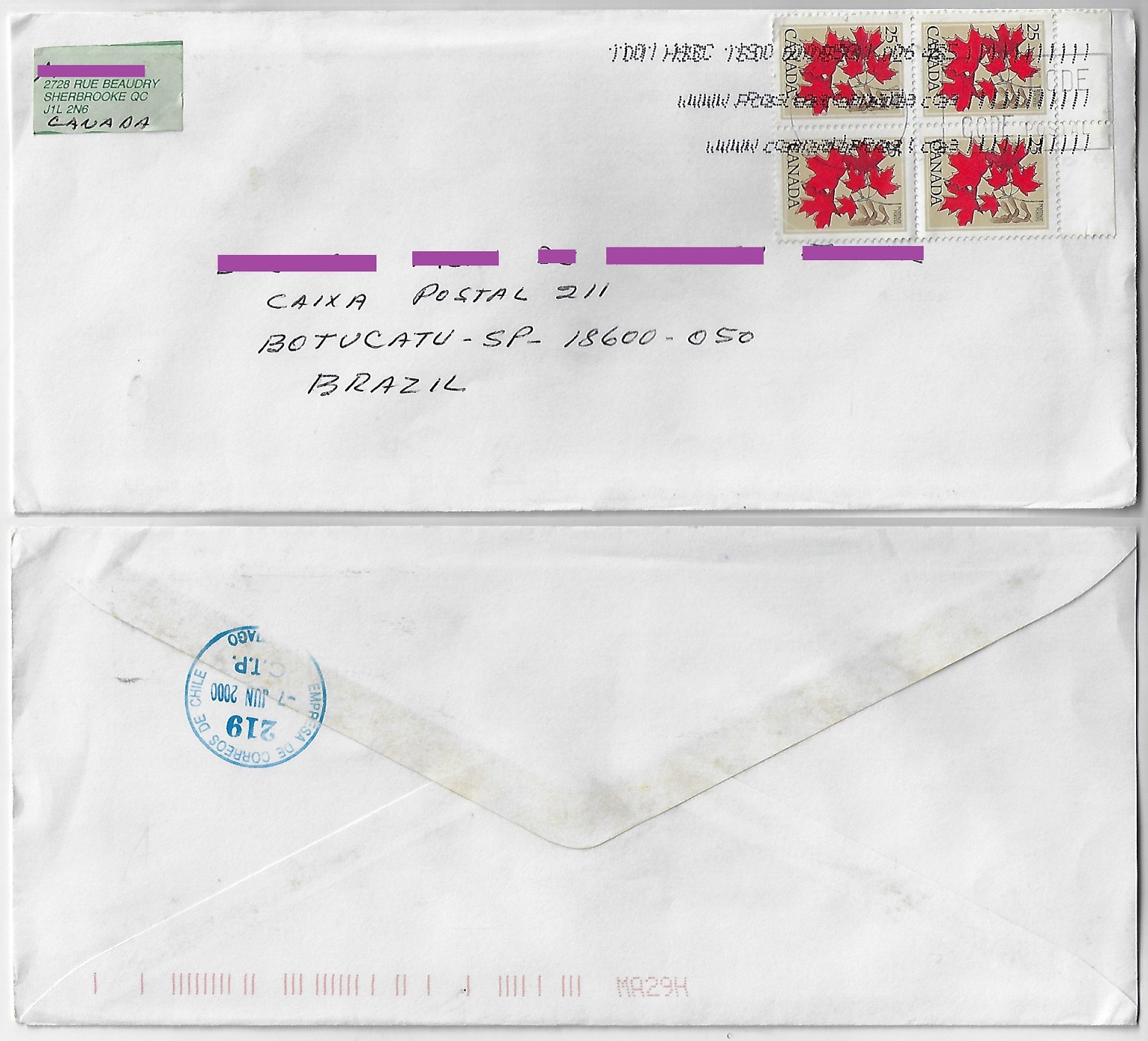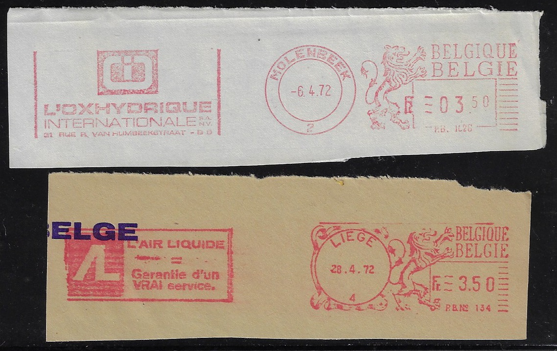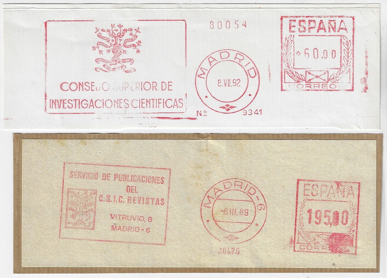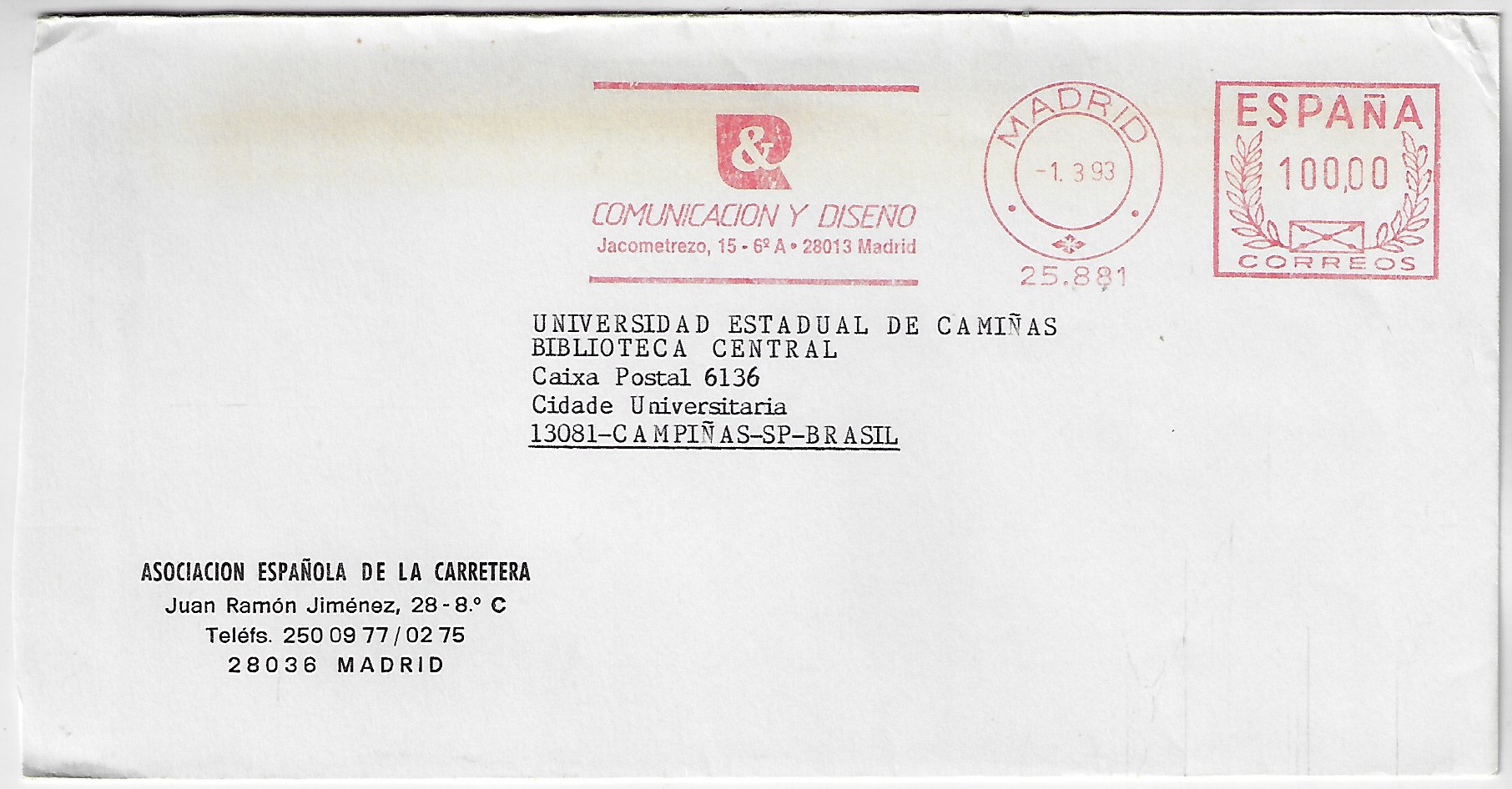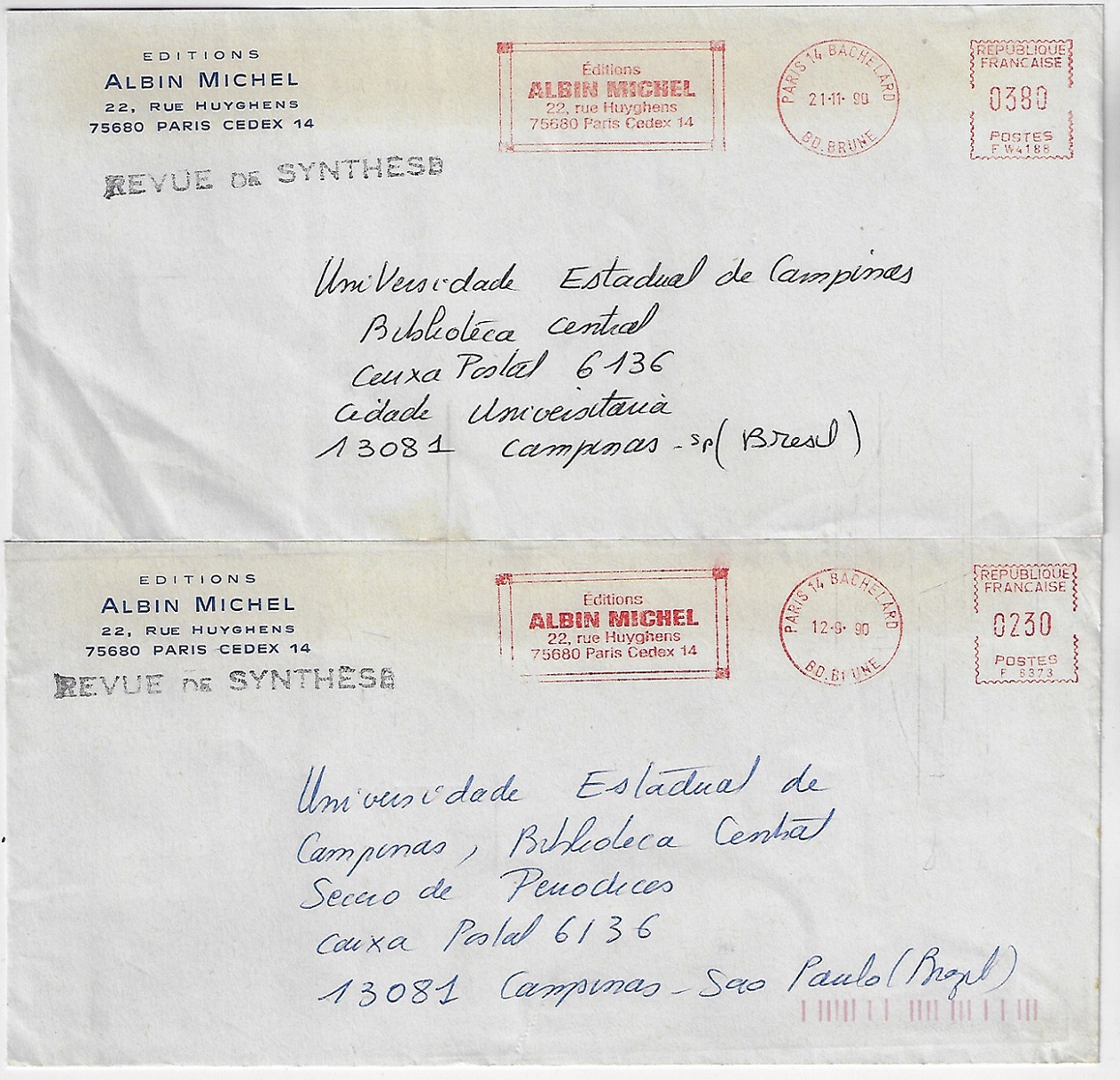| 66486 | África do Sul, Espanha, Itália e Brasil, 1990, 4 fragmentos de envelopes porteado com franquias mecânicas alusivas a 3M | 20,00 | Foto |
