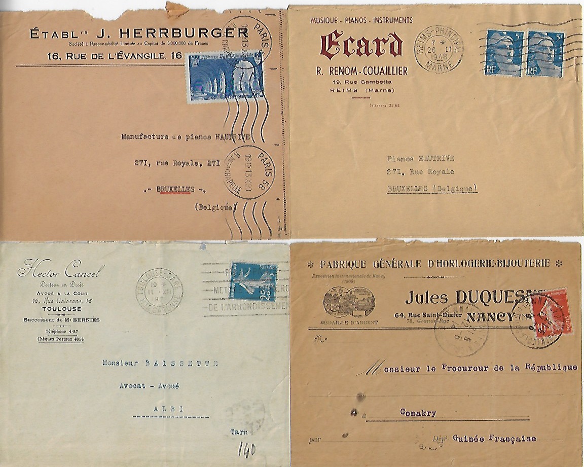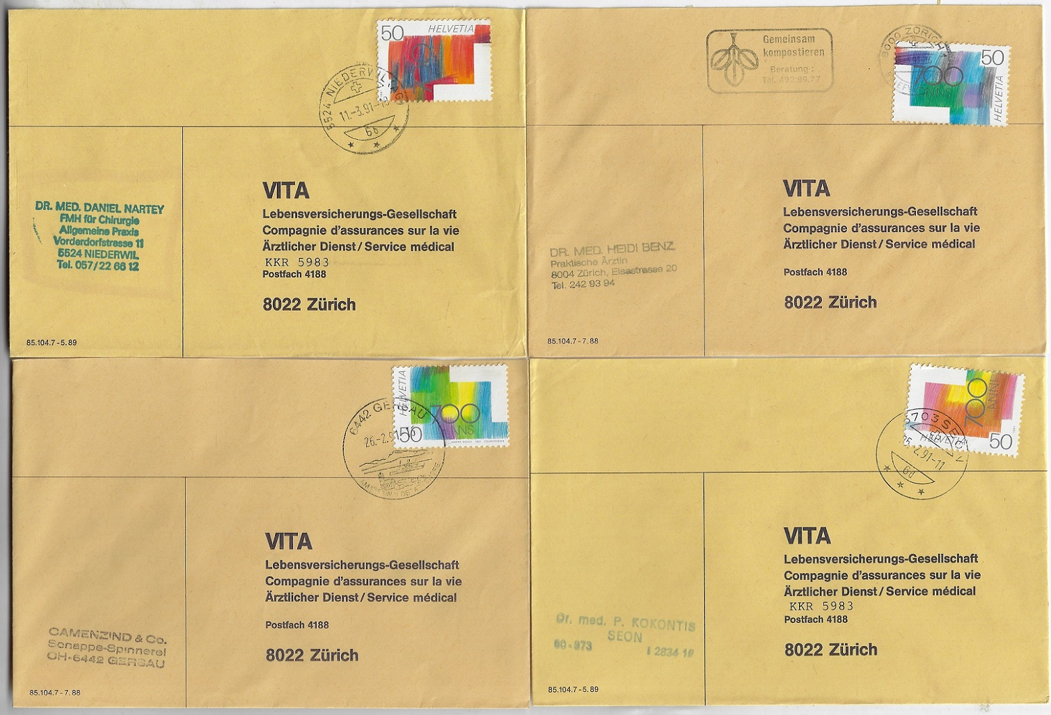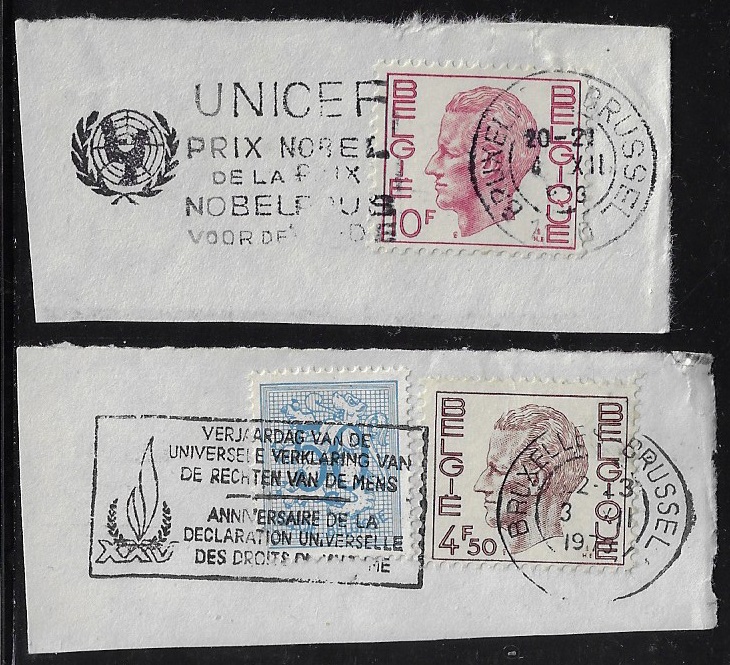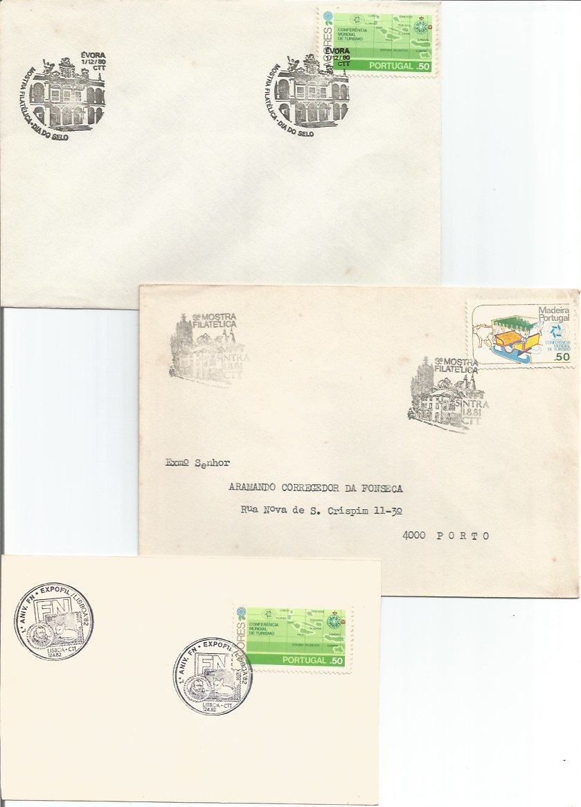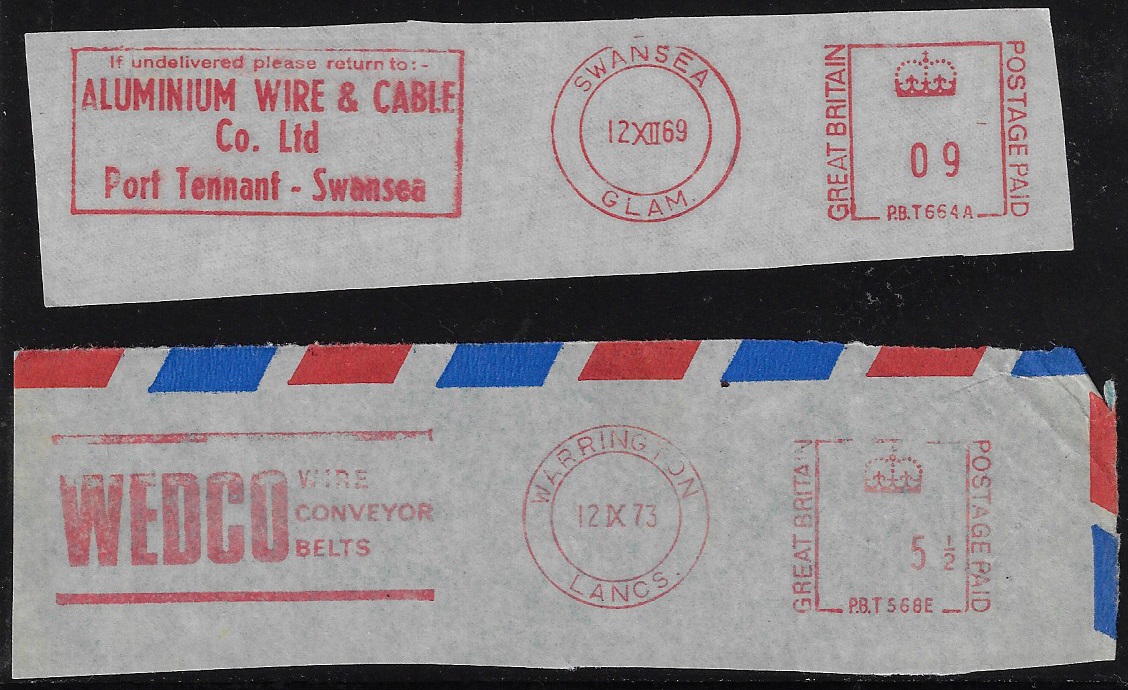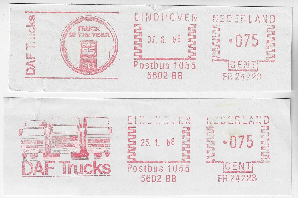 | 66486 | África do Sul, Espanha, Itália e Brasil, 1990, 4 fragmentos de envelopes porteado com franquias mecânicas alusivas a 3M | 20,00 | Foto |