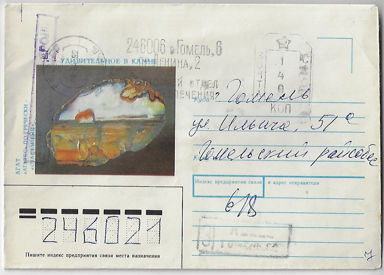 | 58945 | URSS, 1992, envelope registrado com foto de Ágata, pedra decorativa, mineral, Geologia, porteado com franquia mecânica Perm | 10,00 | Foto |