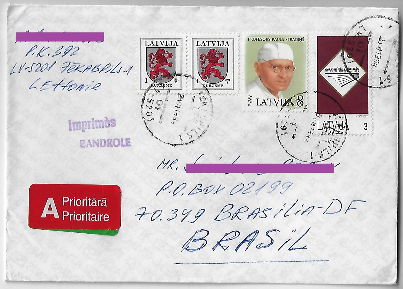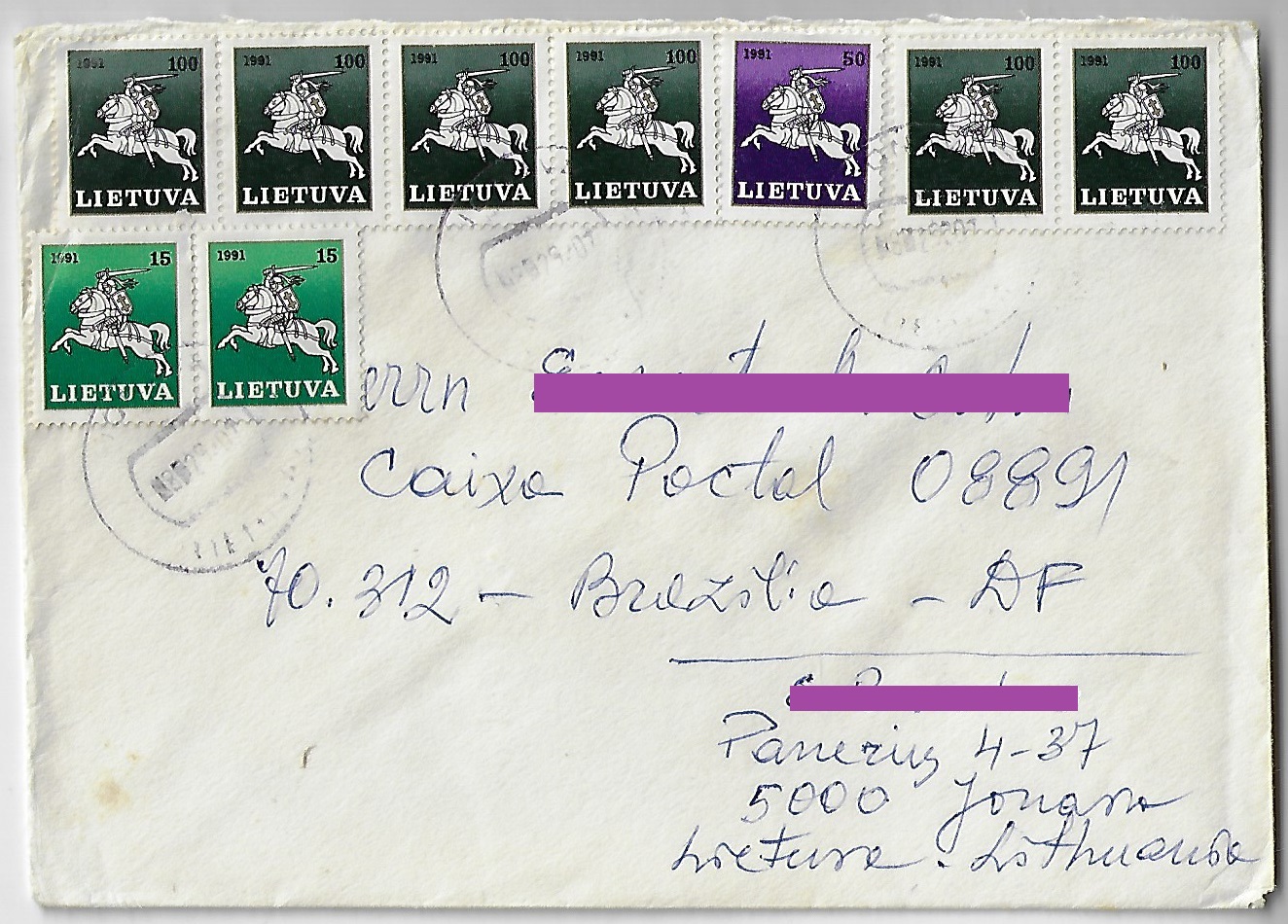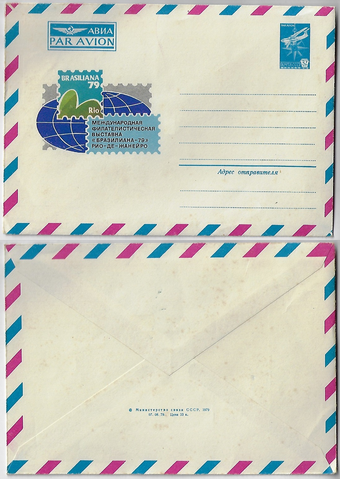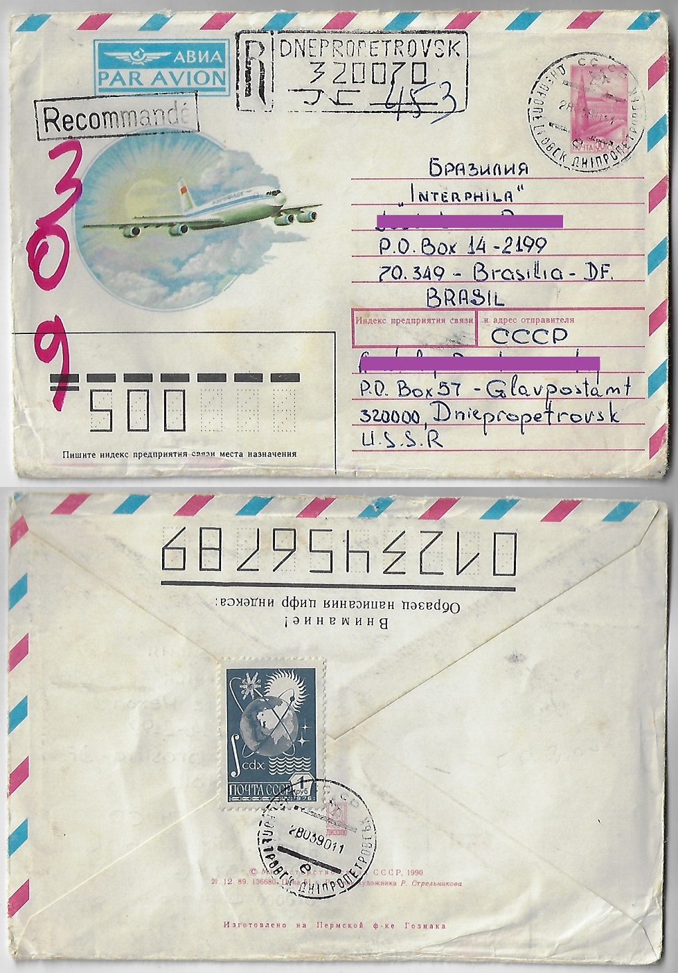 | 83575 | URSS, 1990, inteiro postal tipo envelope registrado enviado de Dnipropetrovsk (atualmente Ucrânia) para Brasília, selo adicional colado no verso, gravura de avião da Companhia de Aviação Aeroflot | 10,00 | Foto |